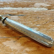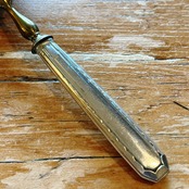 ホールマークの様な刻印が柄の部分にあり、もしかすると純銀かも知れませんが、潰れてしまっていて判読不可能です。