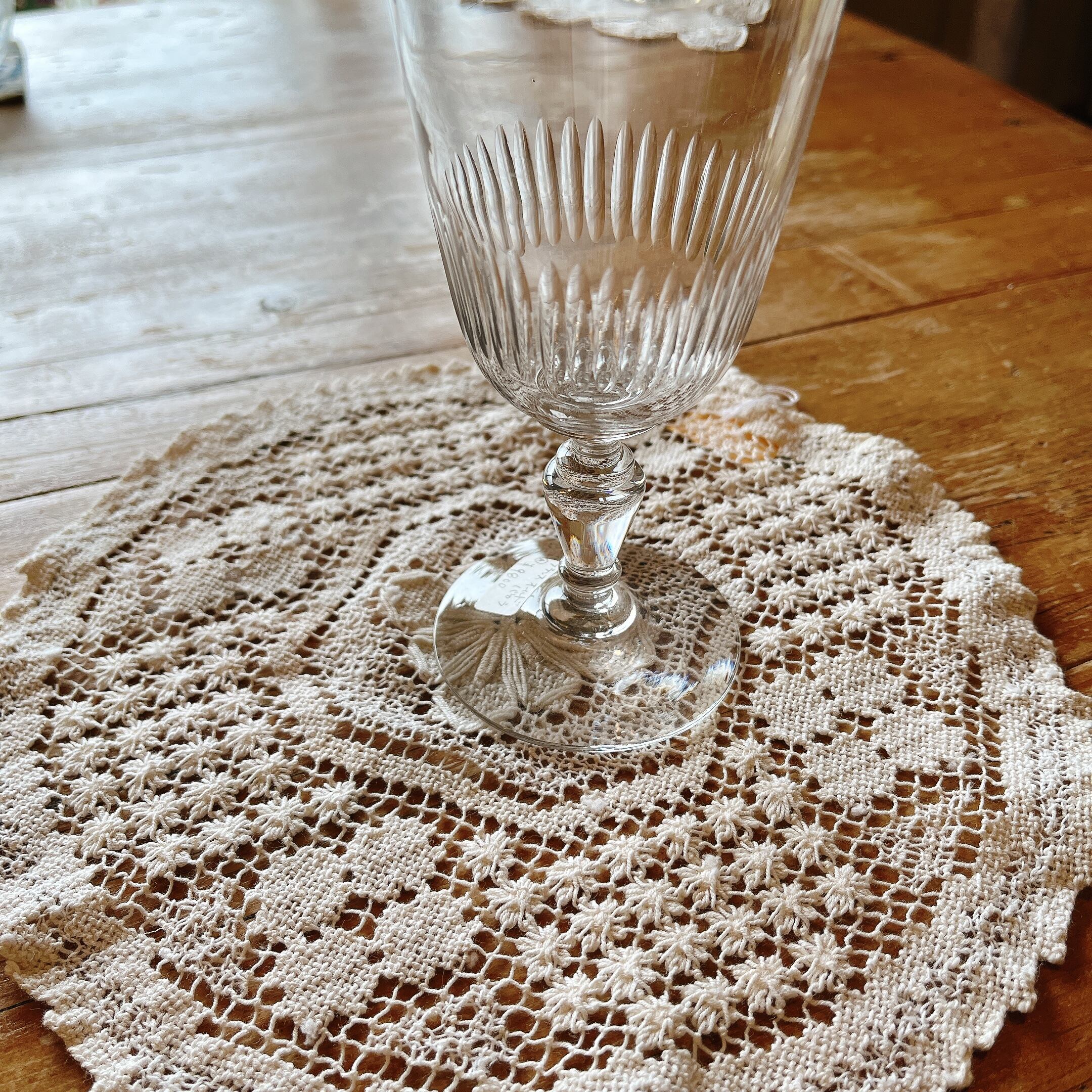 細かい模様が可愛い、手編みレースのドイリーです。