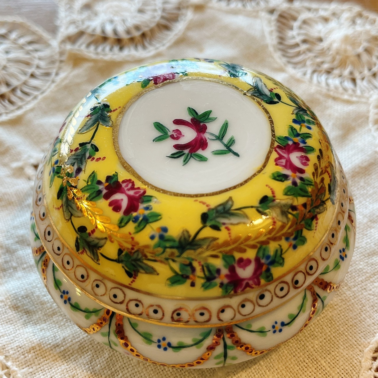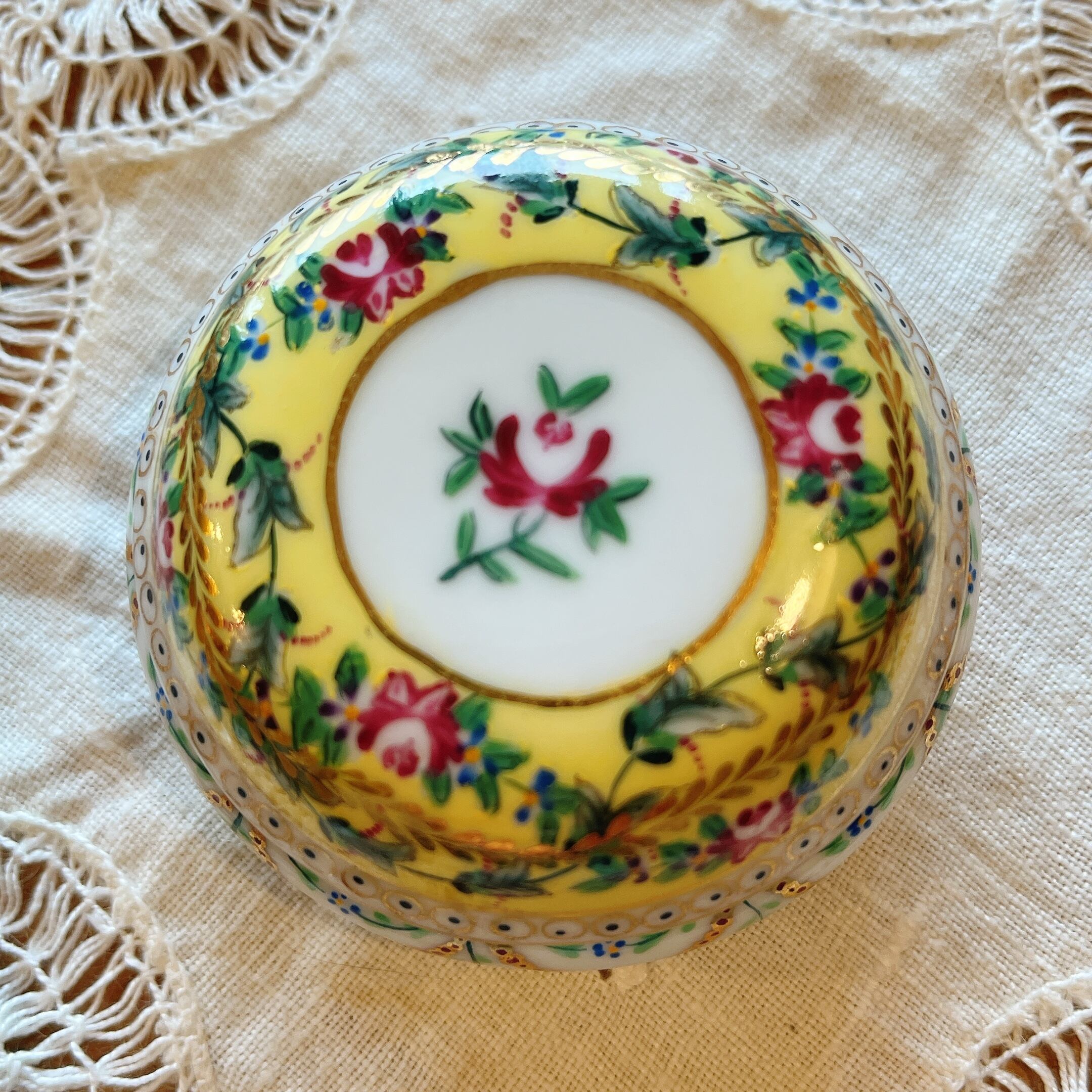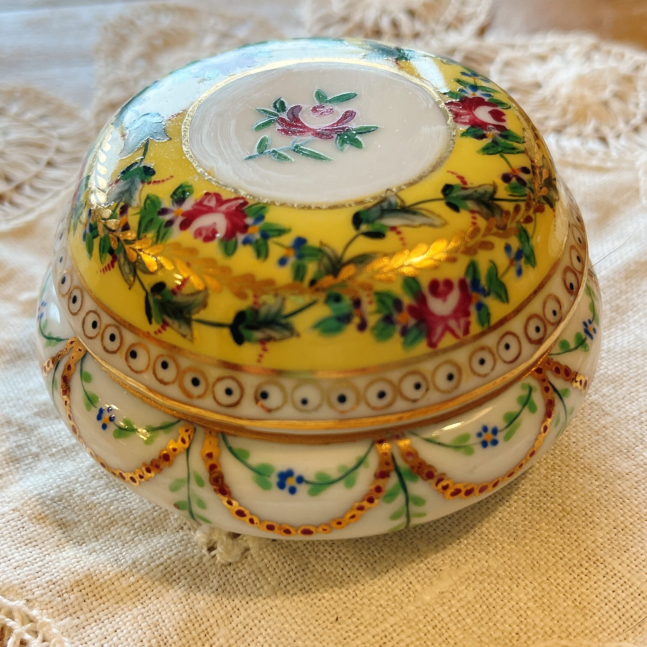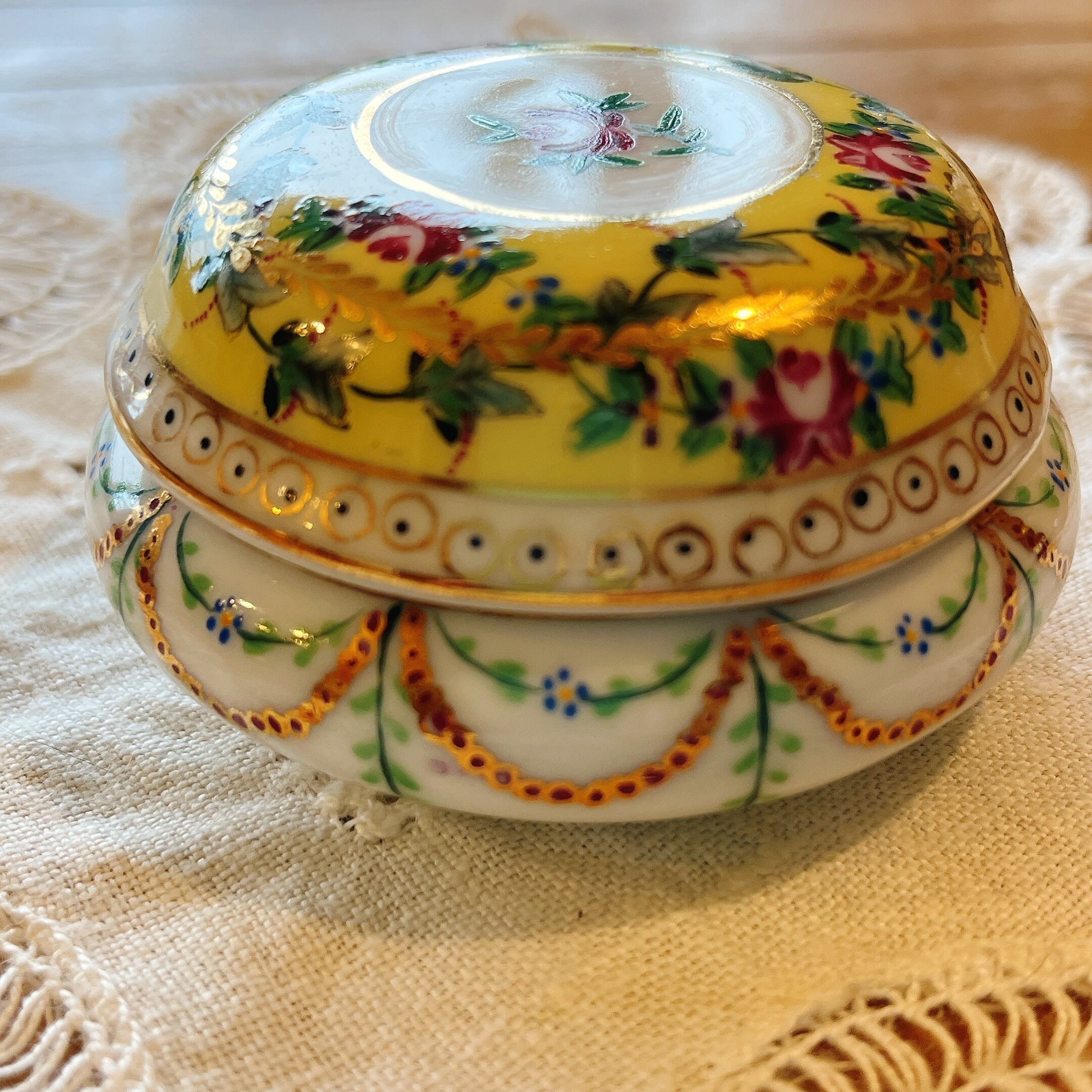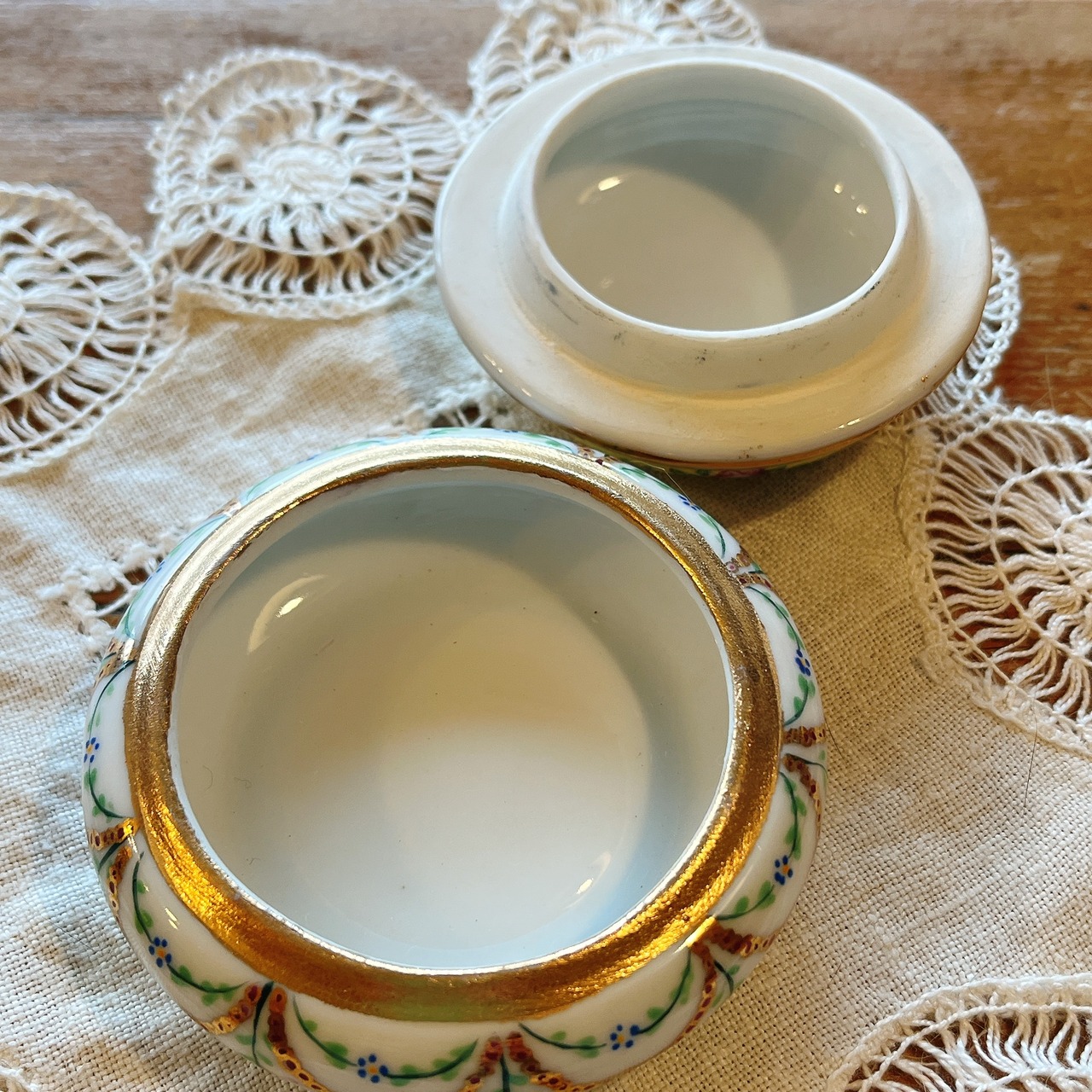 手描きの花柄と金彩が、とても可愛いトリンケットです。絵付けの繊細さに魅了されてしまいます。