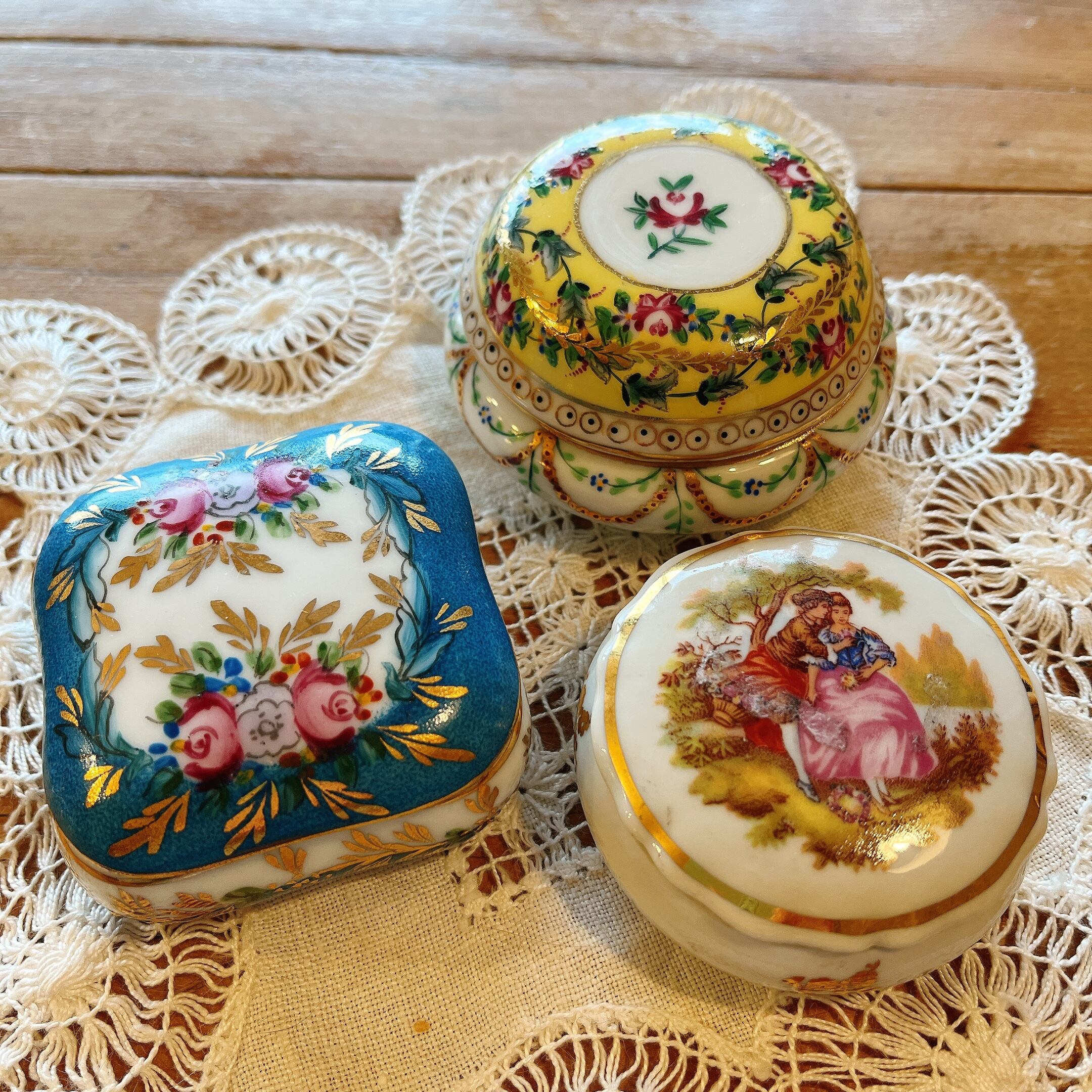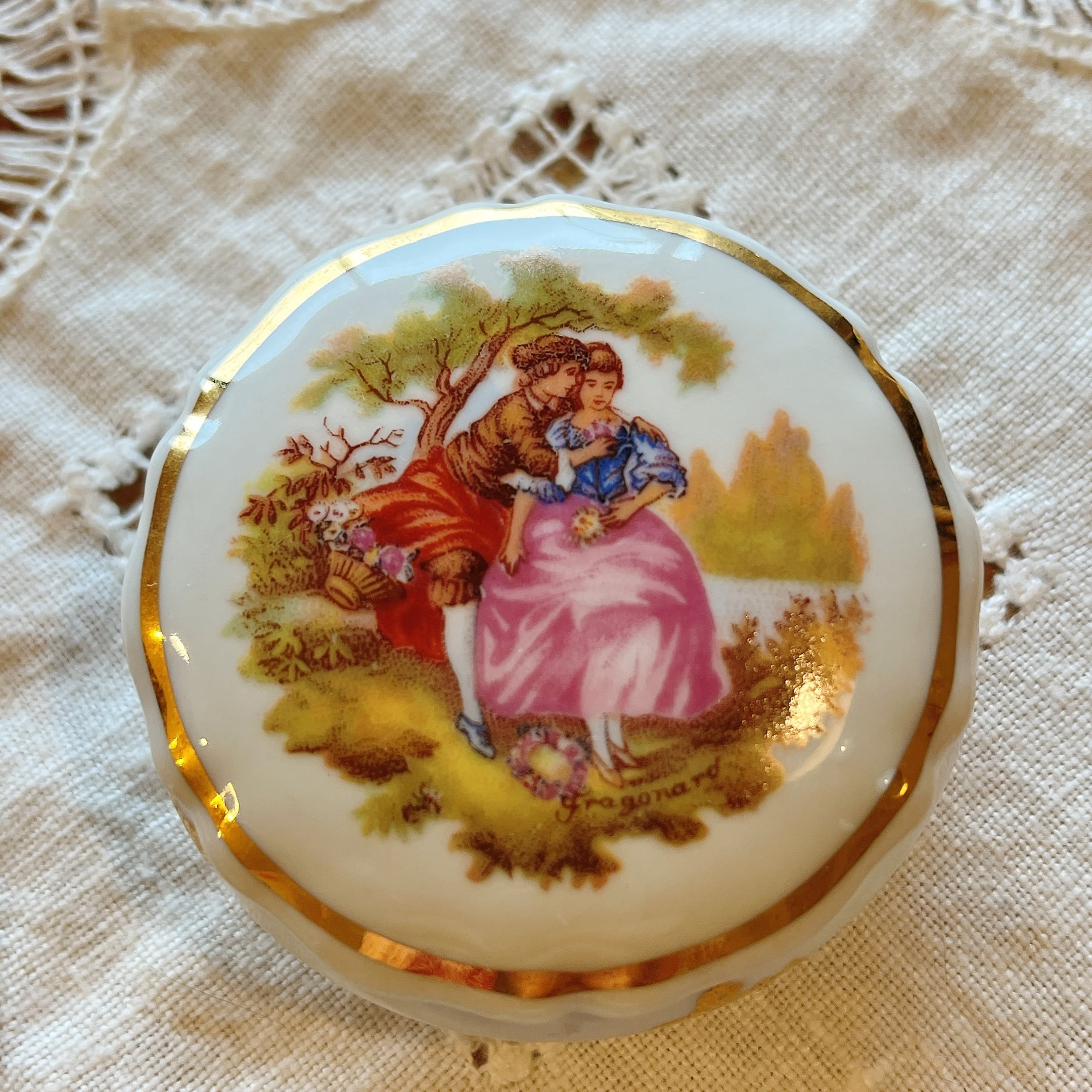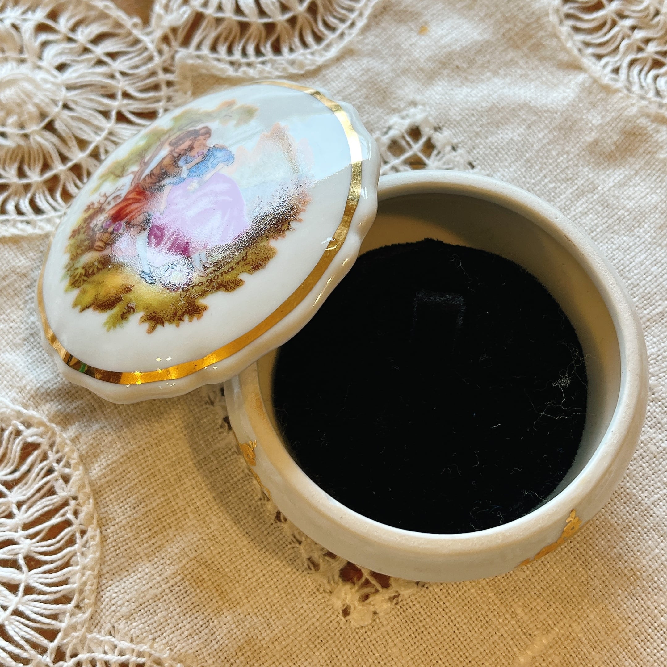 フランスの貴婦人と紳士と金彩が美しいジュエリーボックスです。