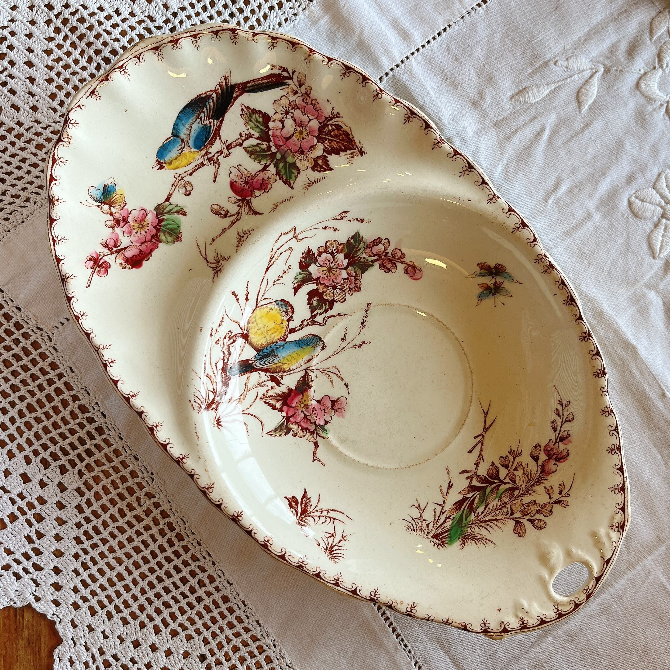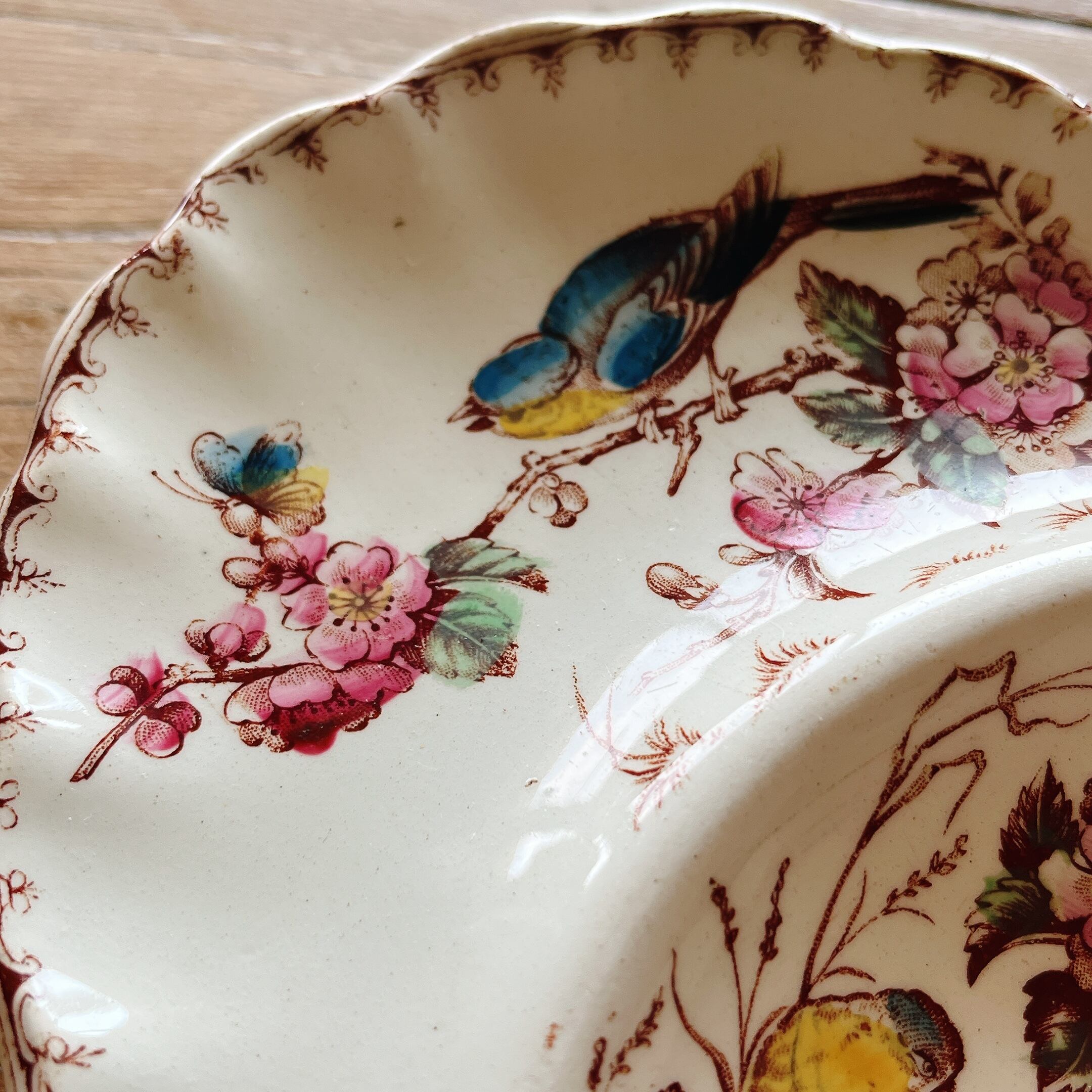 桜のような花枝と青い小鳥が、春の優しい雰囲気を感じさせてくれるポリクロームの可愛いプレートです。