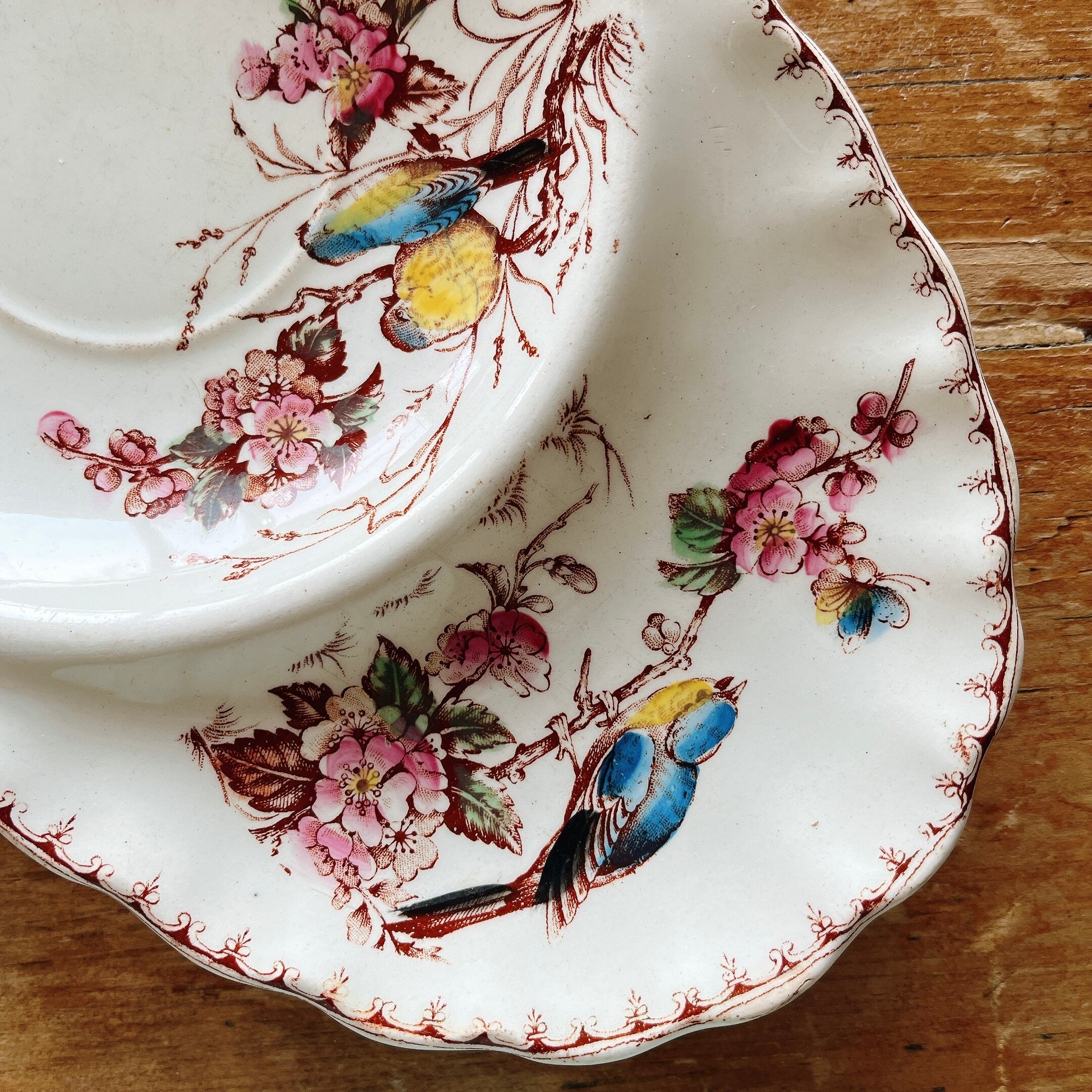 リュネビルK&G 春らしいピンクのお花と小鳥のソーサープレート
