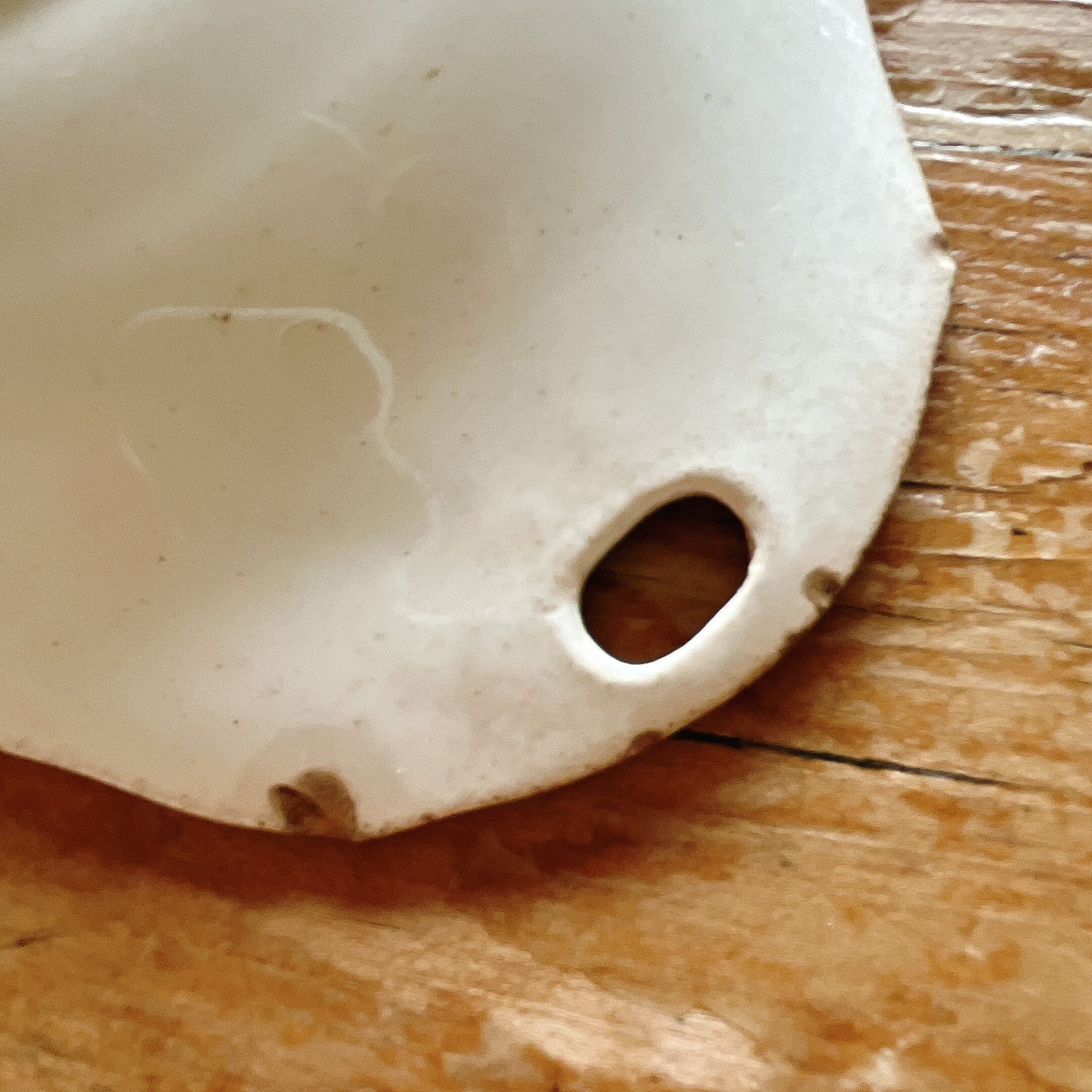 裏フチにチップが数カ所ありますが、表からは見えません。細かいシミがありますが、貫入、ヒビはありません。