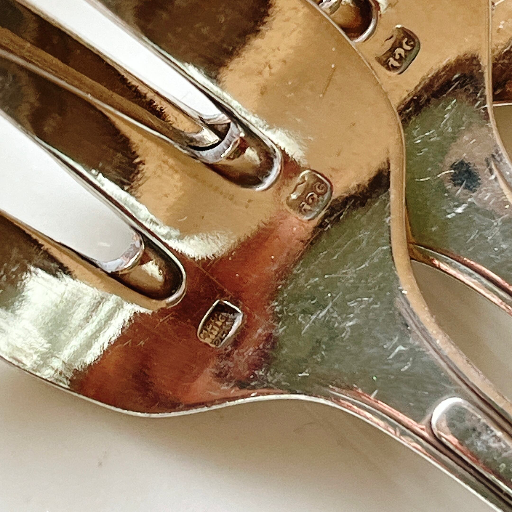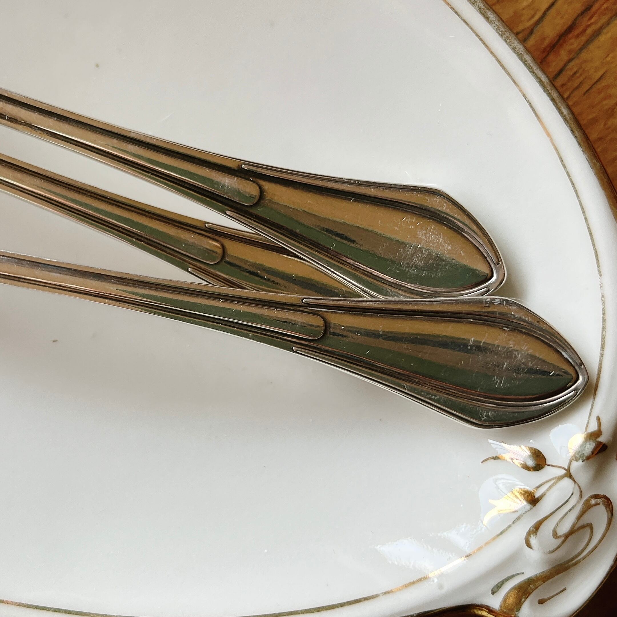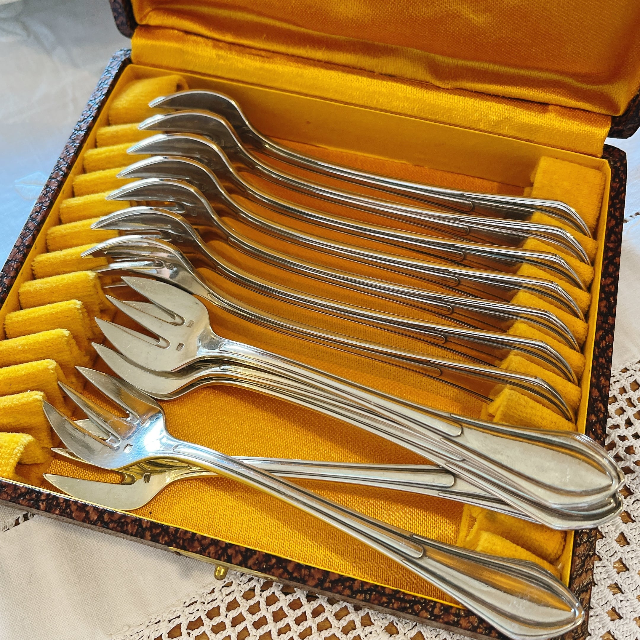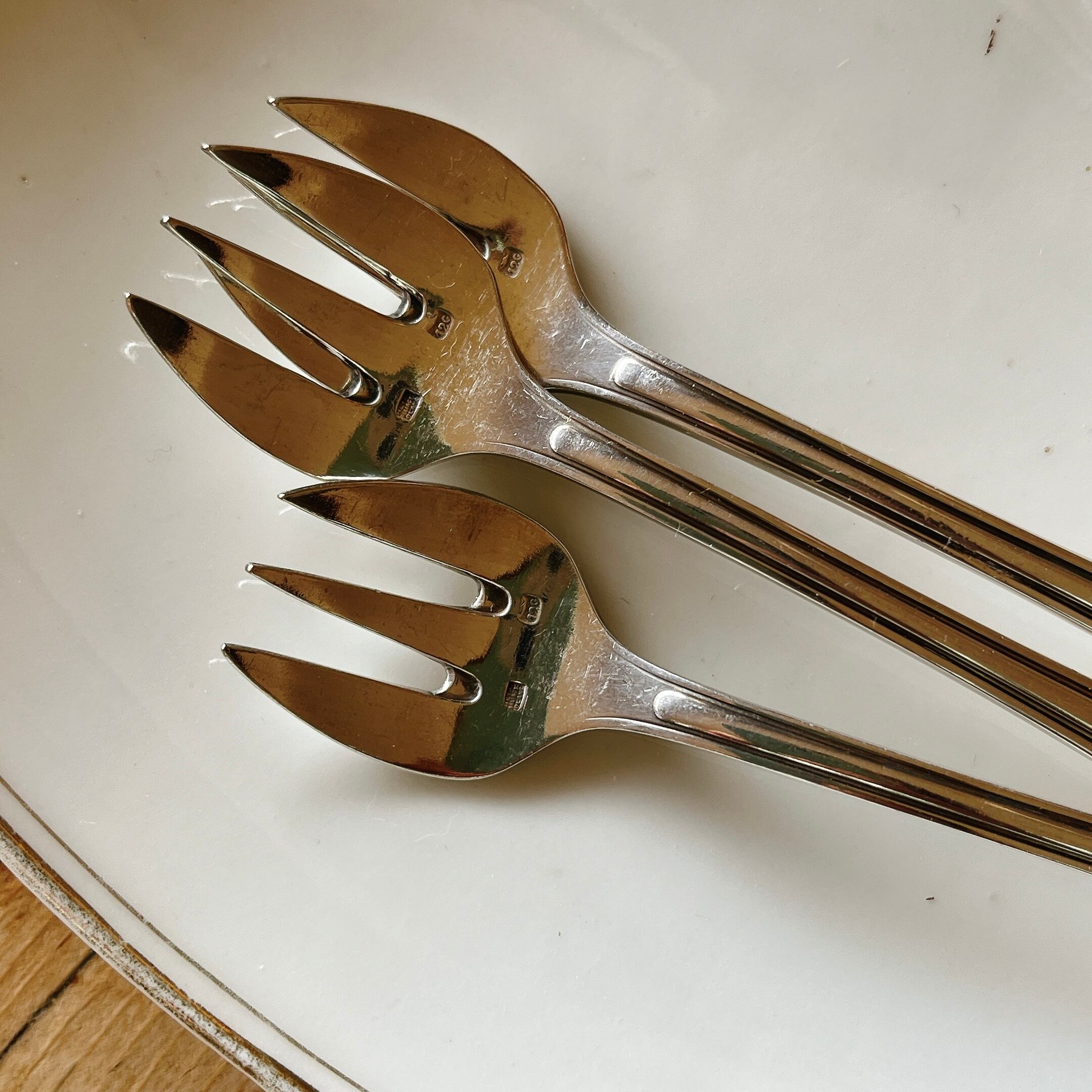 スッキリとしたデザインの、洗練されたシルバープレートのオイスターフォーク。