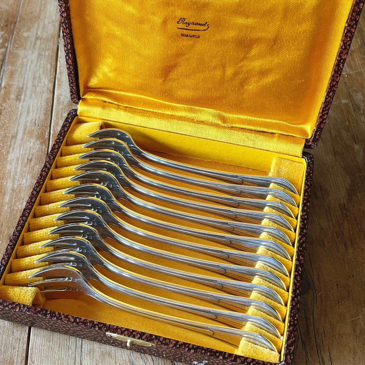 フランスSFAN刻印 美しいシルバープレートのオイスターフォーク