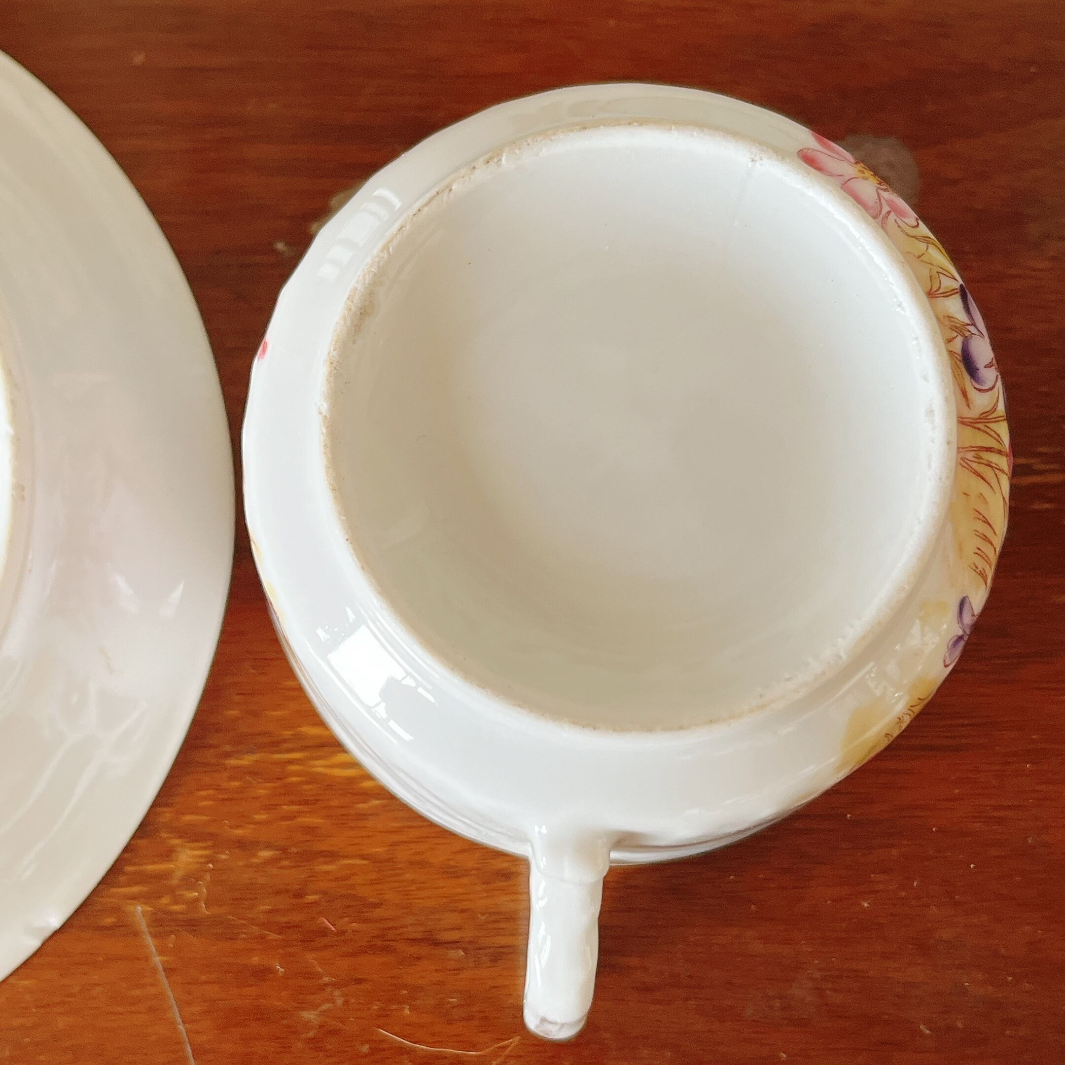 残念ながら、金彩の擦れとカップフチ、ソーサー裏側にチップがあります。