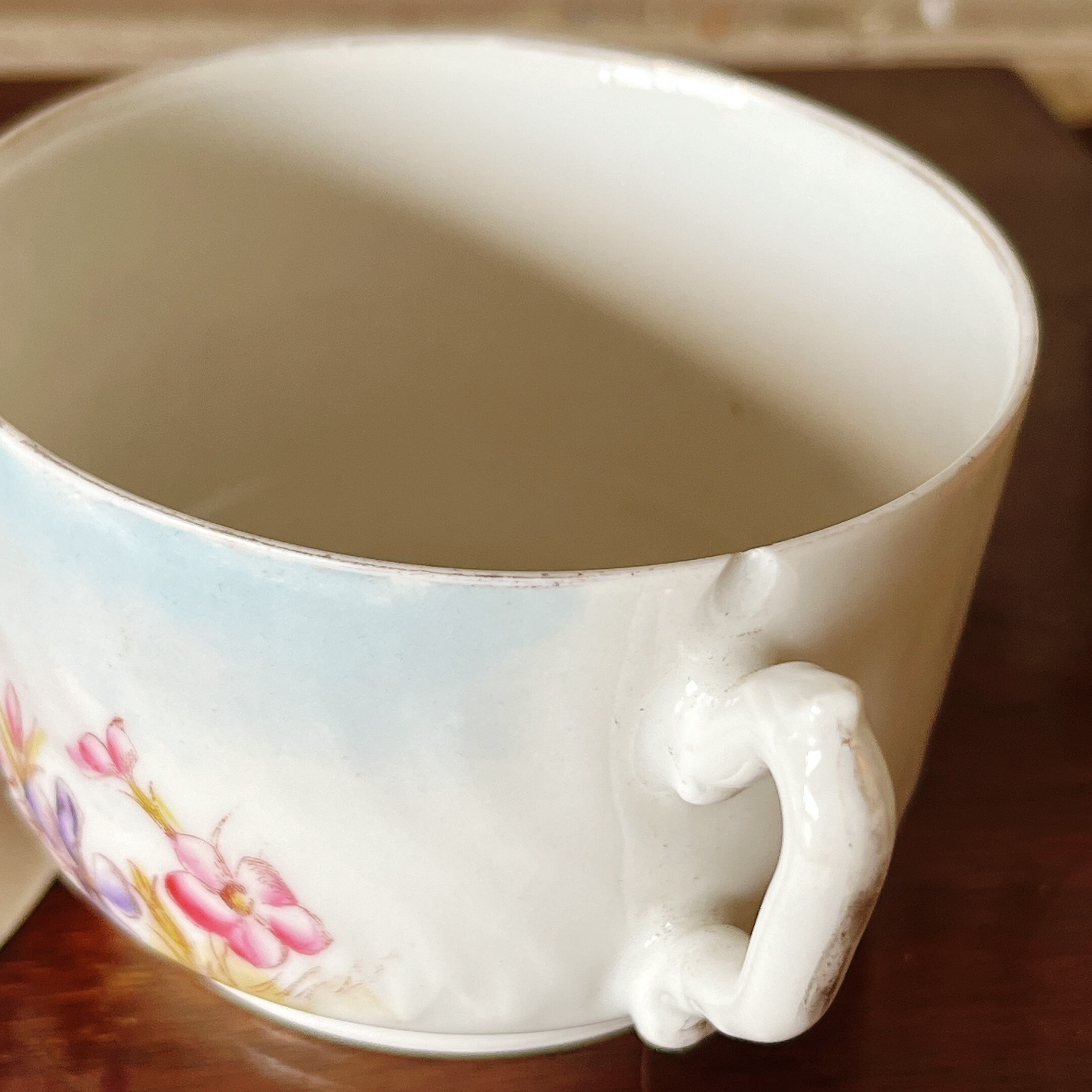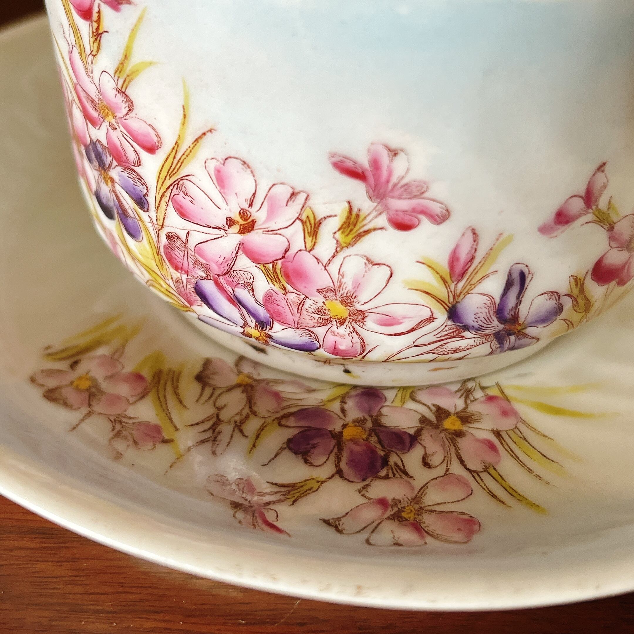 薄くて軽い磁器の、花柄が可愛いカップ&ソーサー。