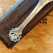 花柄や華やかな装飾は良く見かけますが、こんなアールデコのデザインのトングは、あまり見かけないのでレアだと思います。