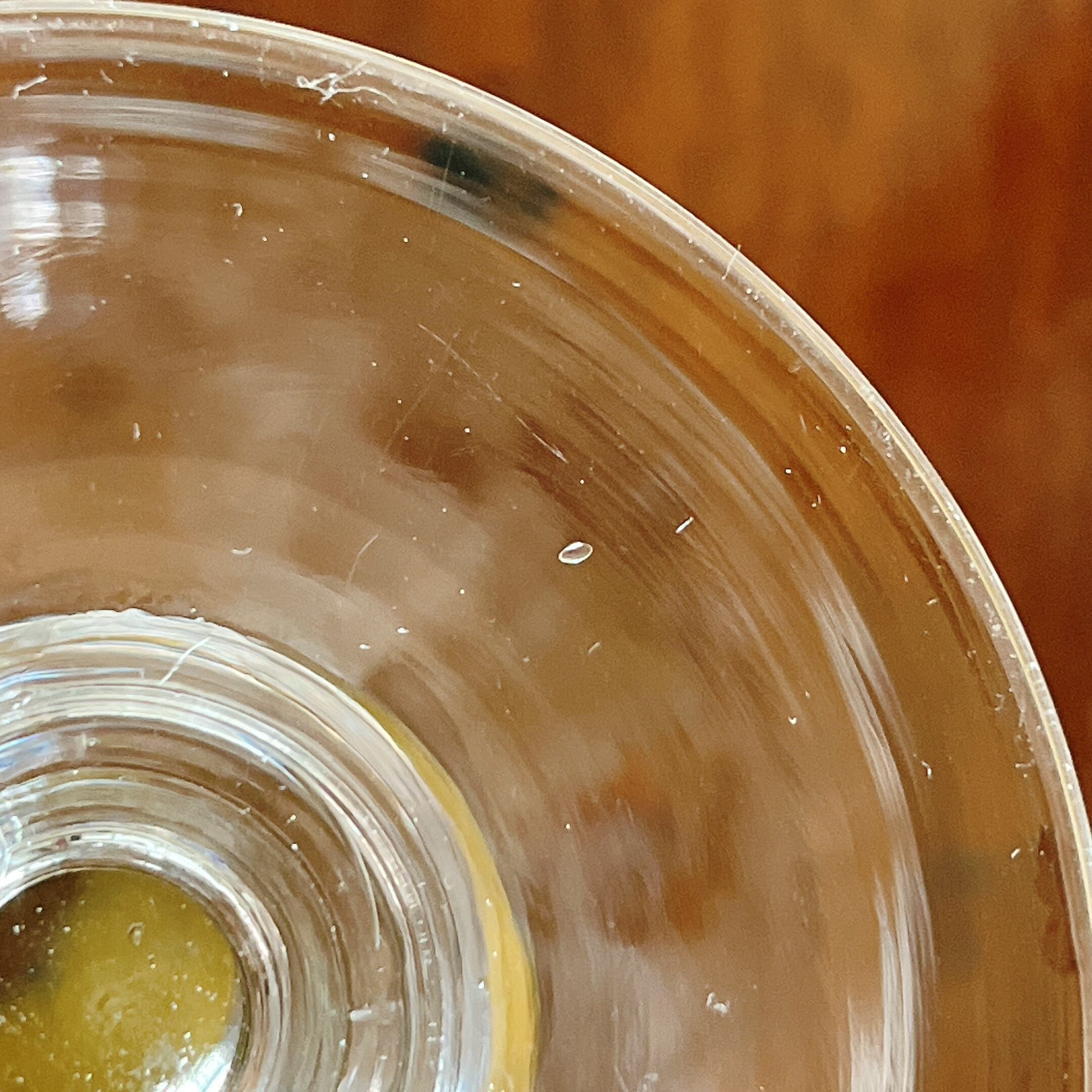 手作りの古いクリスタルガラスの証しで、気泡がありガラスの厚みも微妙に違っています。