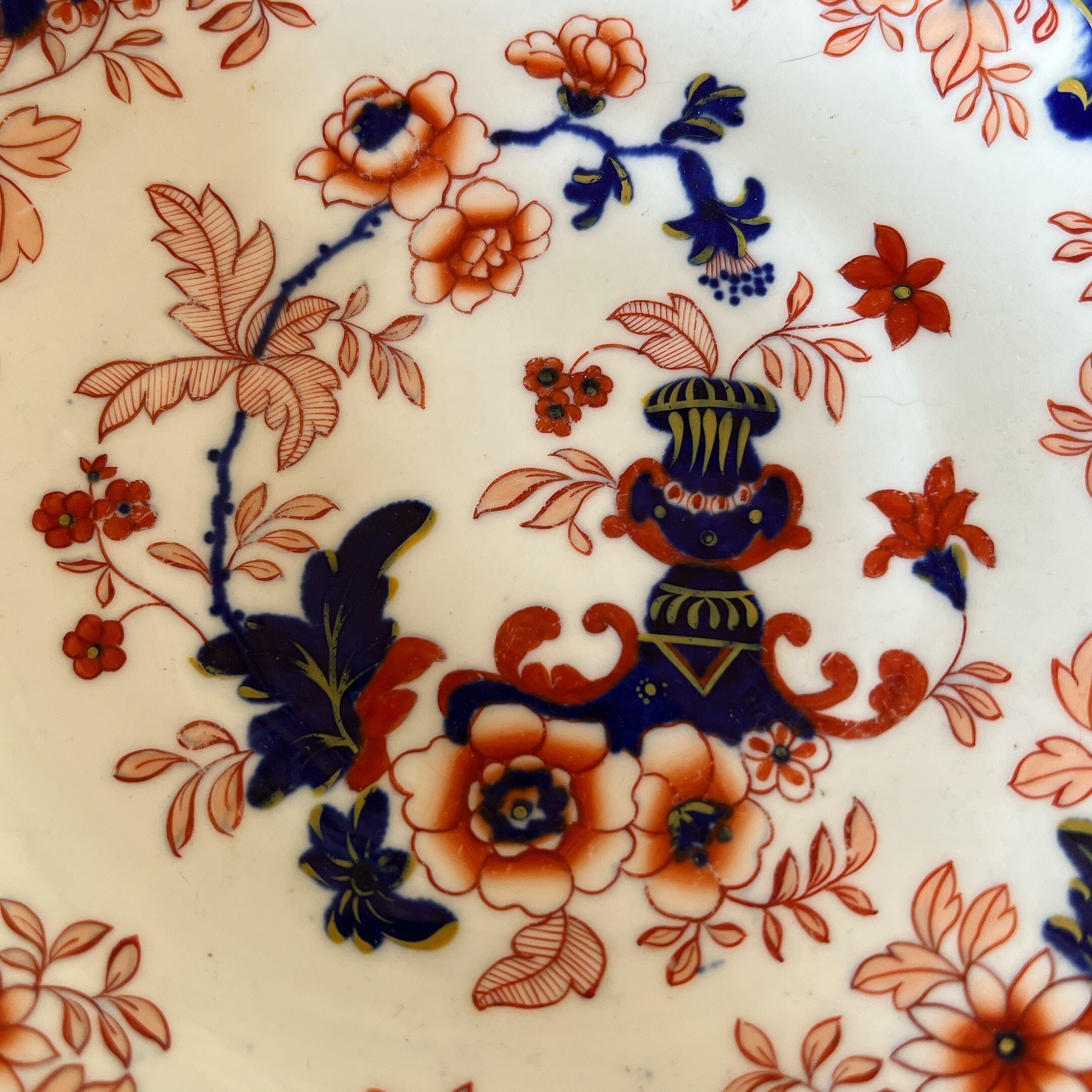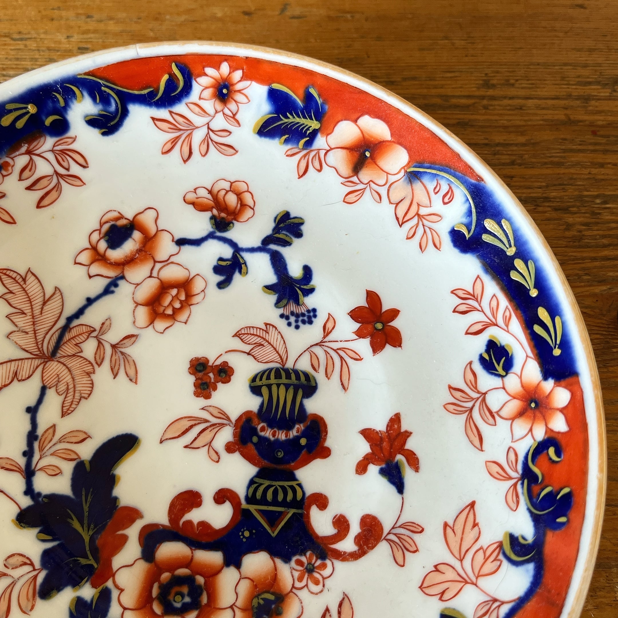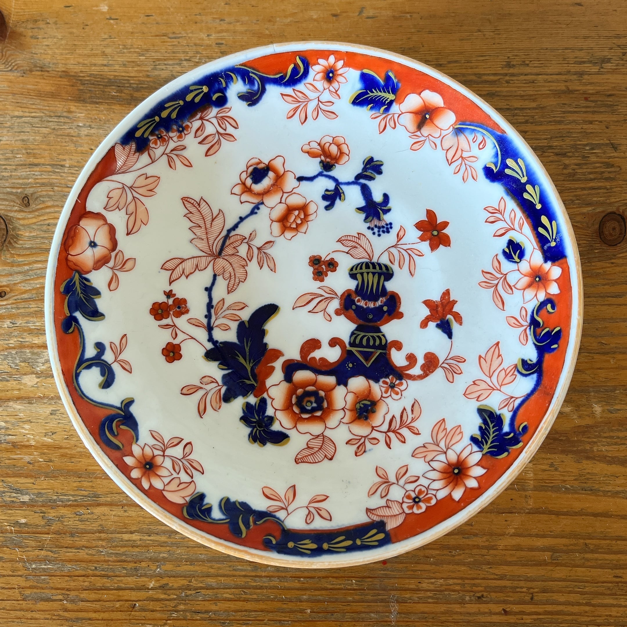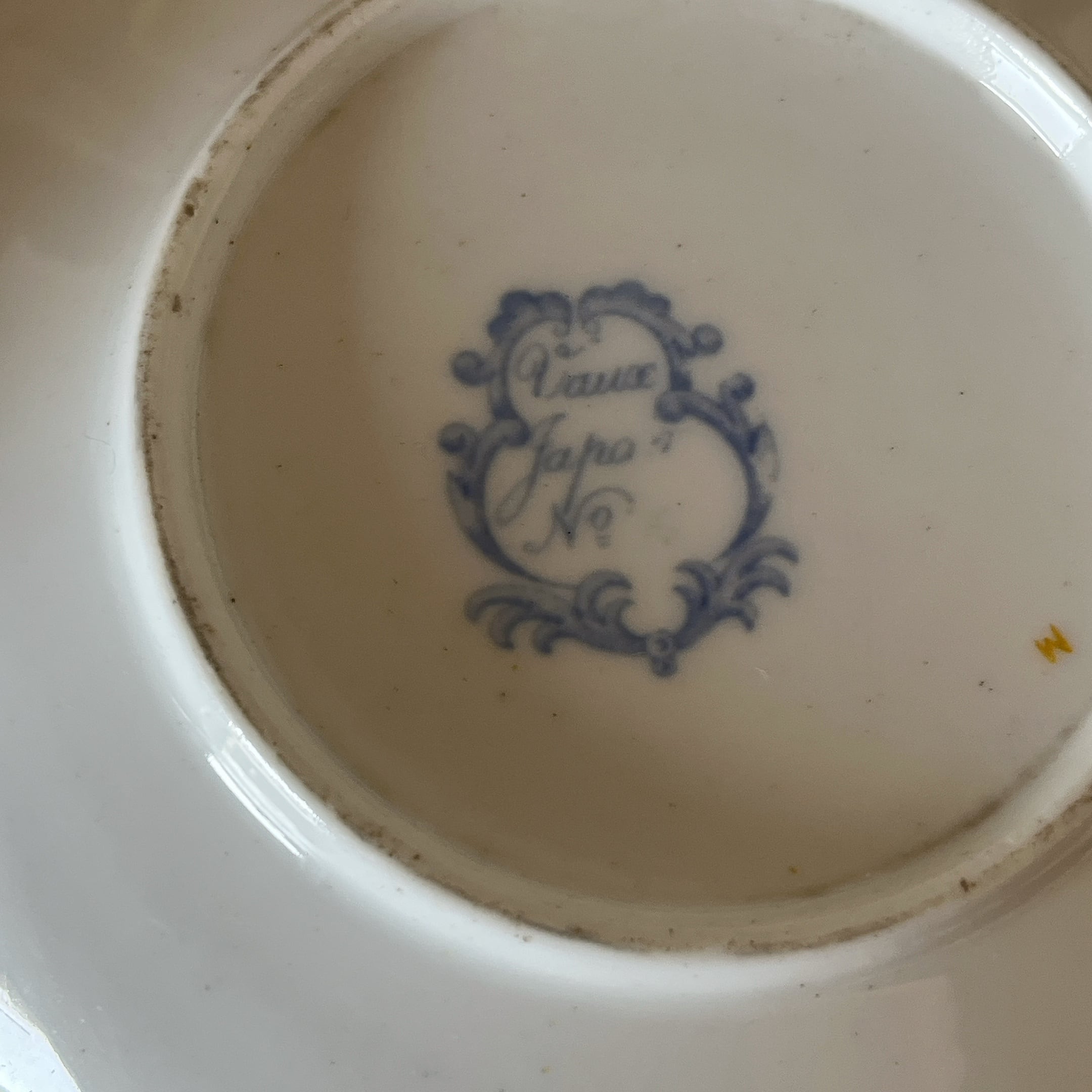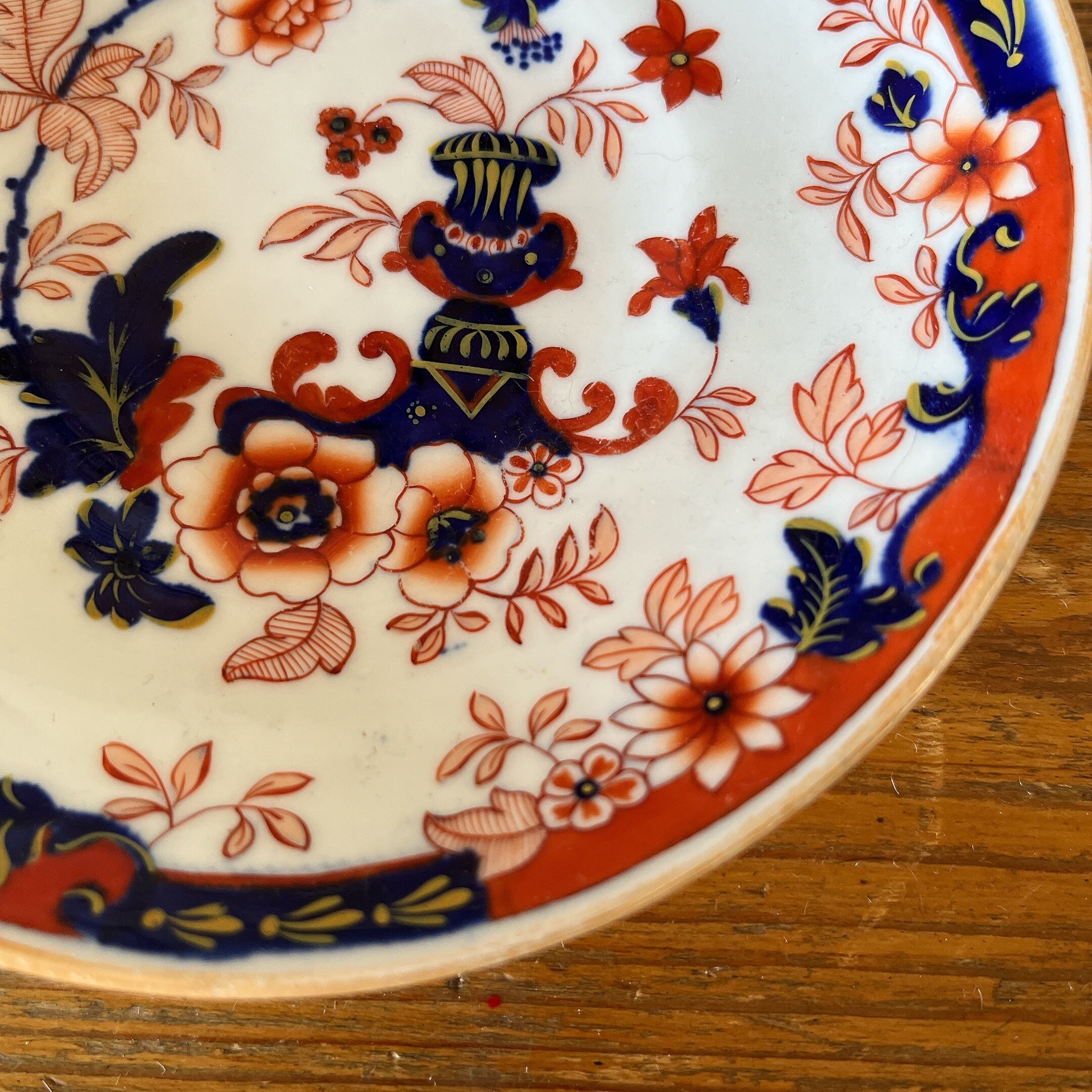JAPANの文字があるように、日本の伊万里焼きをモチーフに、赤、青、金の彩色の美しいカップ&ソーサーです。