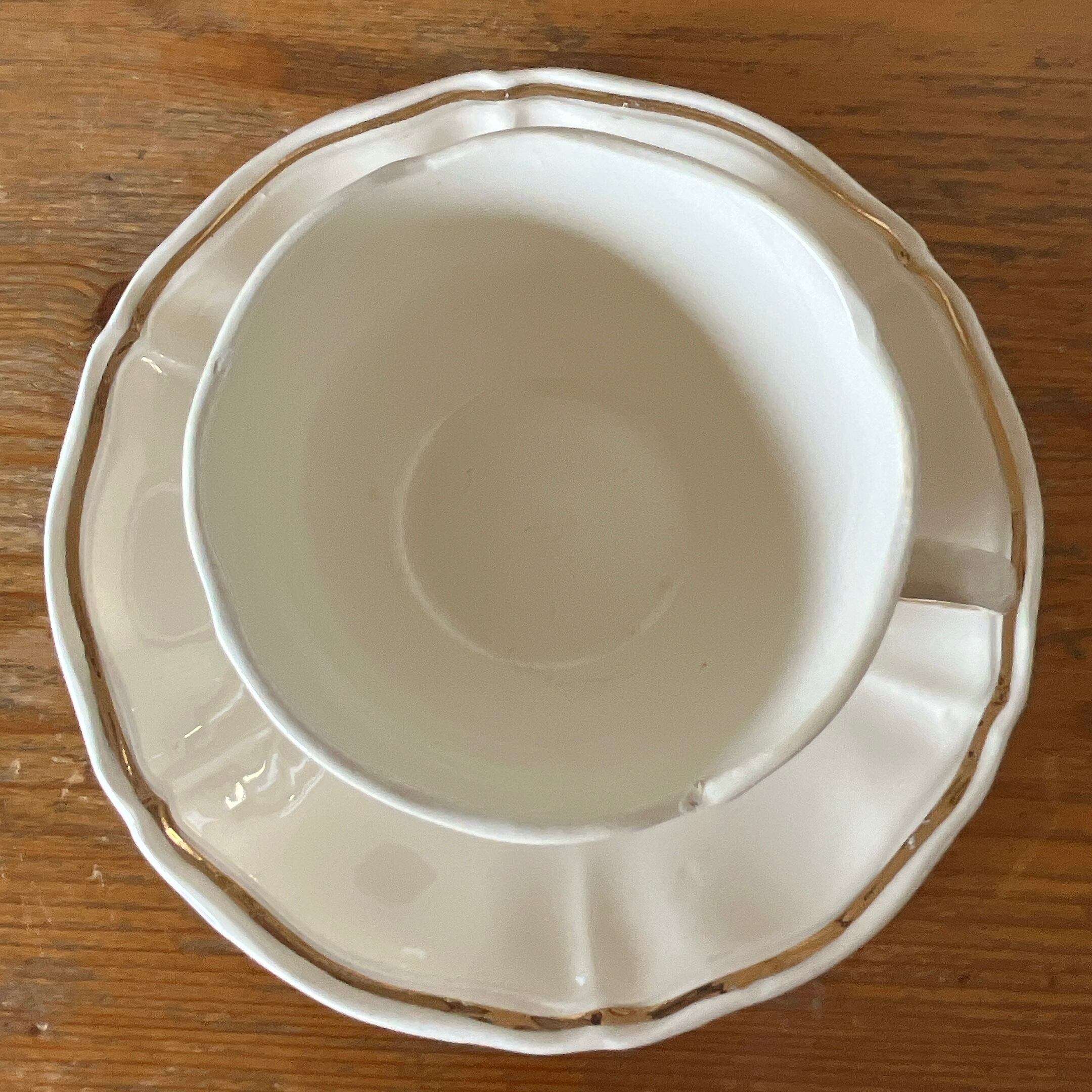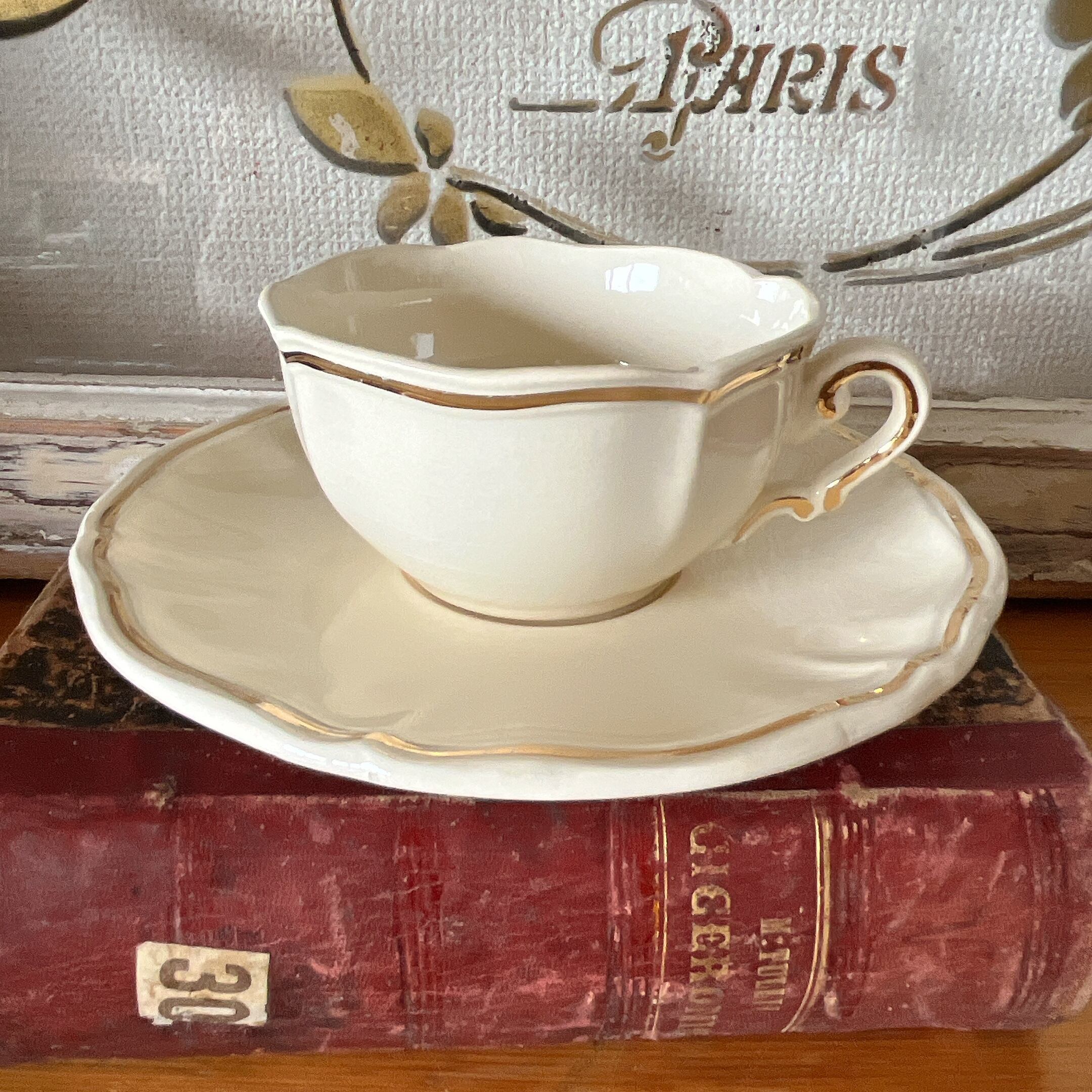 花リムのアイボリーに、シンプルな金のラインが入った可愛いカップ&ソーサーです。