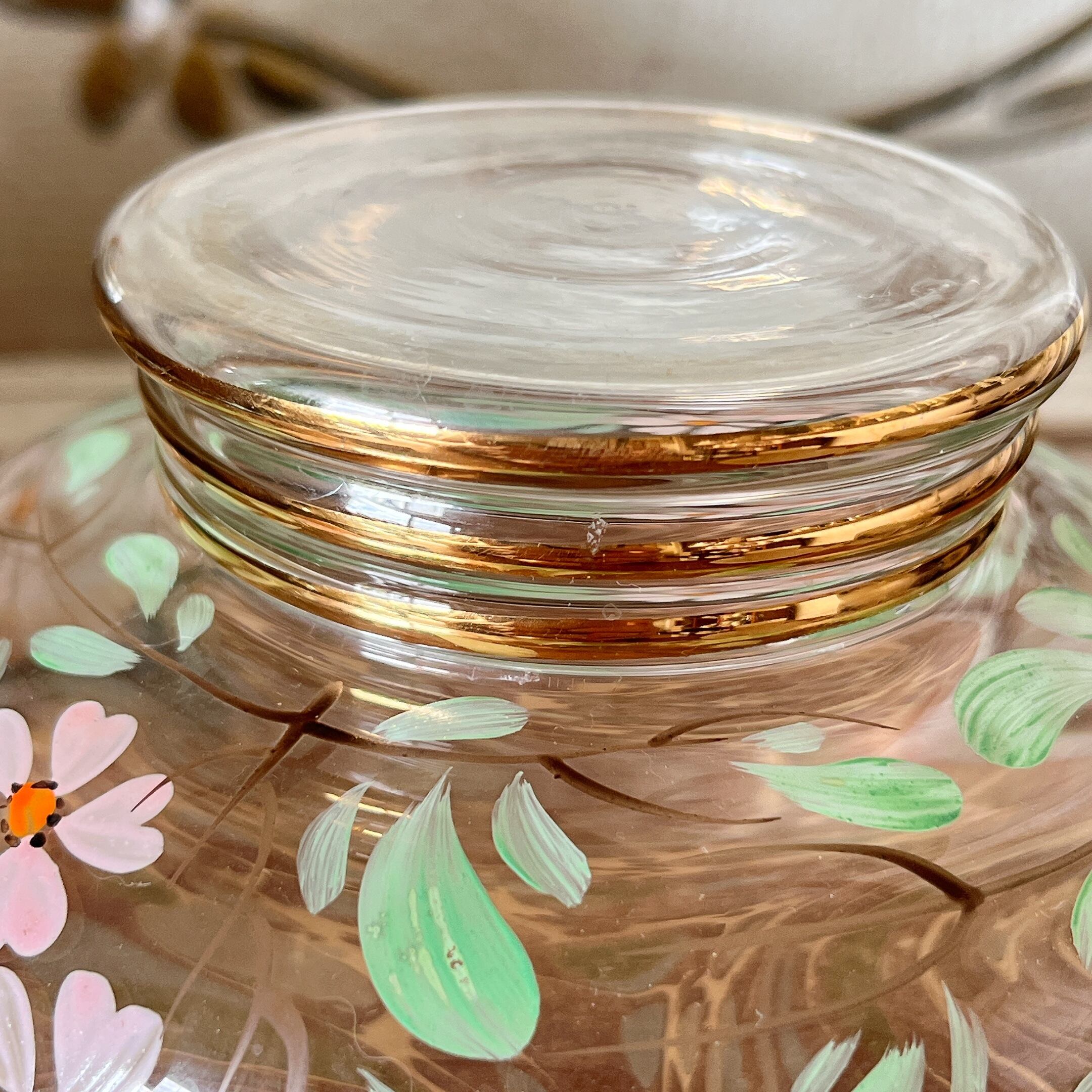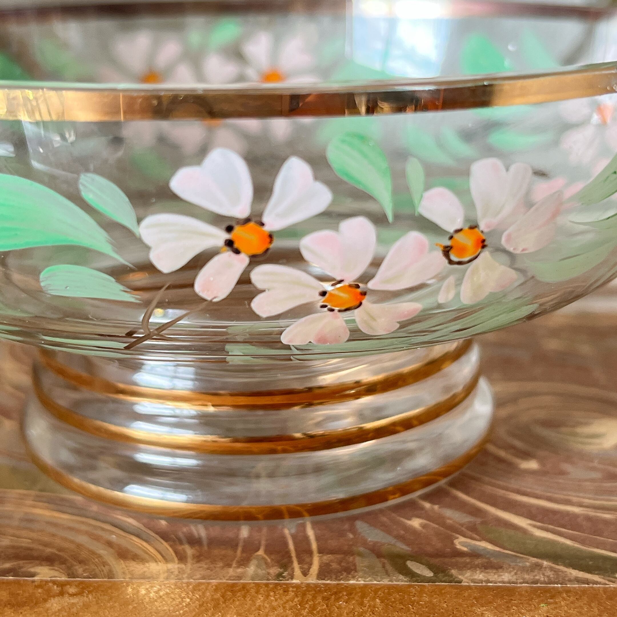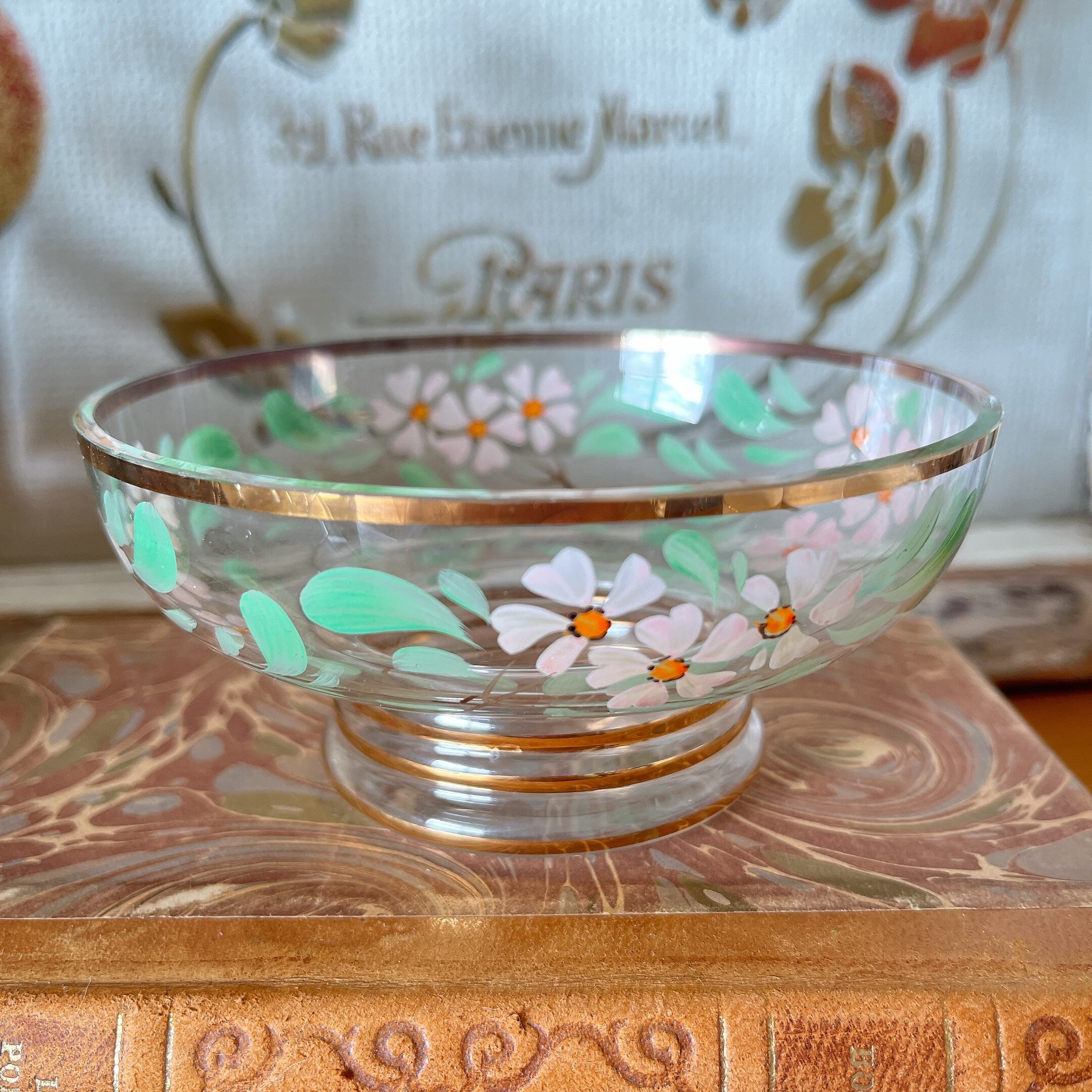 金彩もキレイに残っている可愛い花柄のガラスボウル。