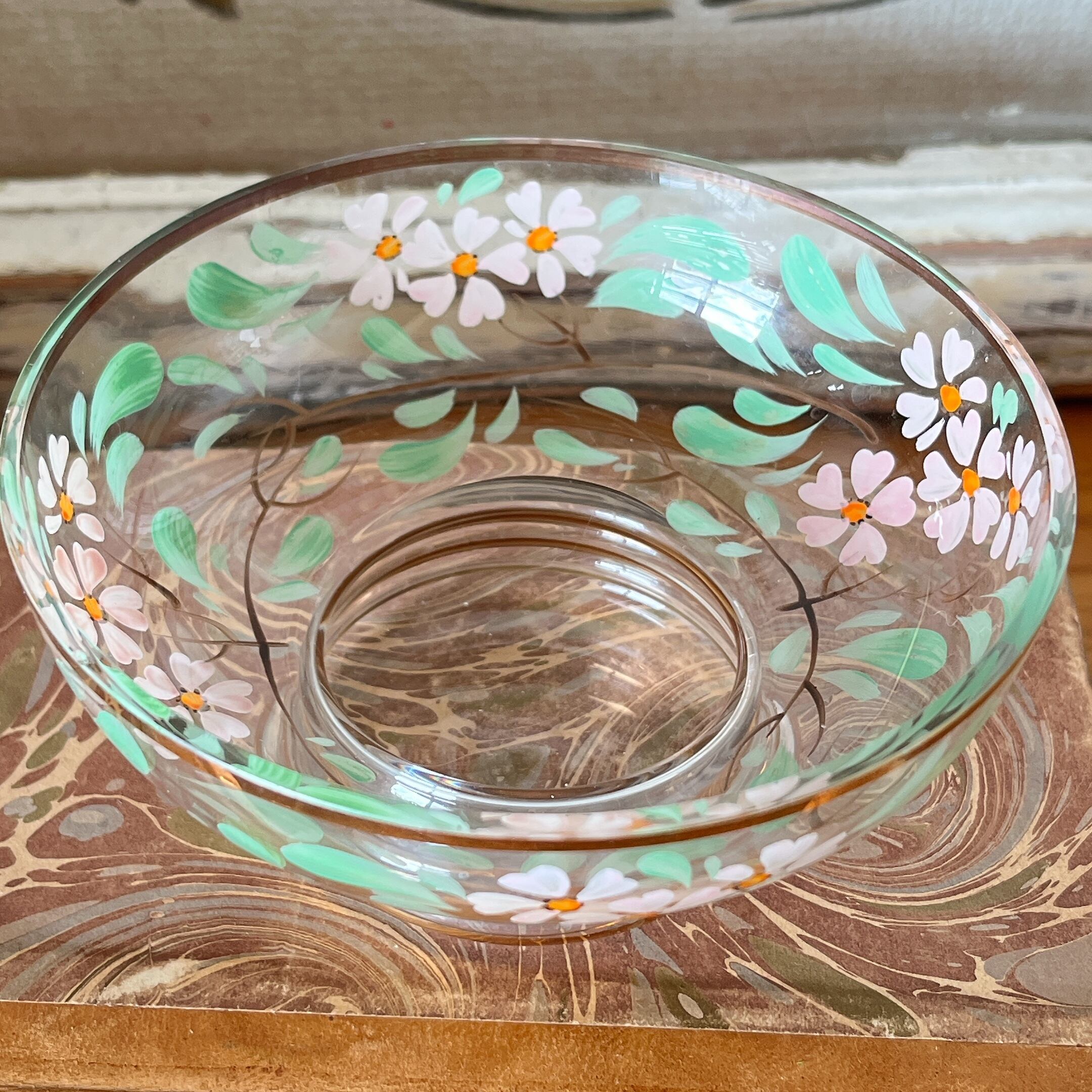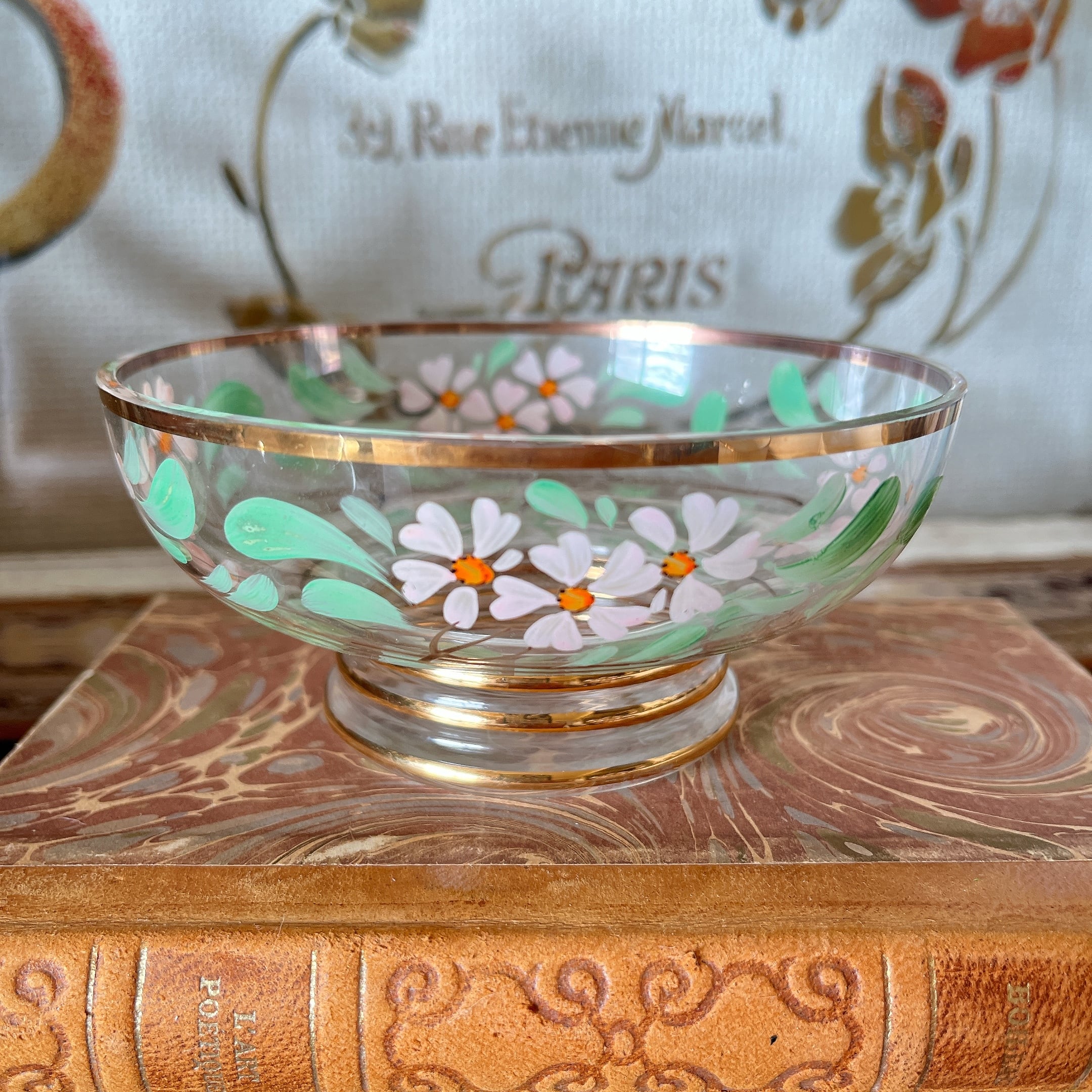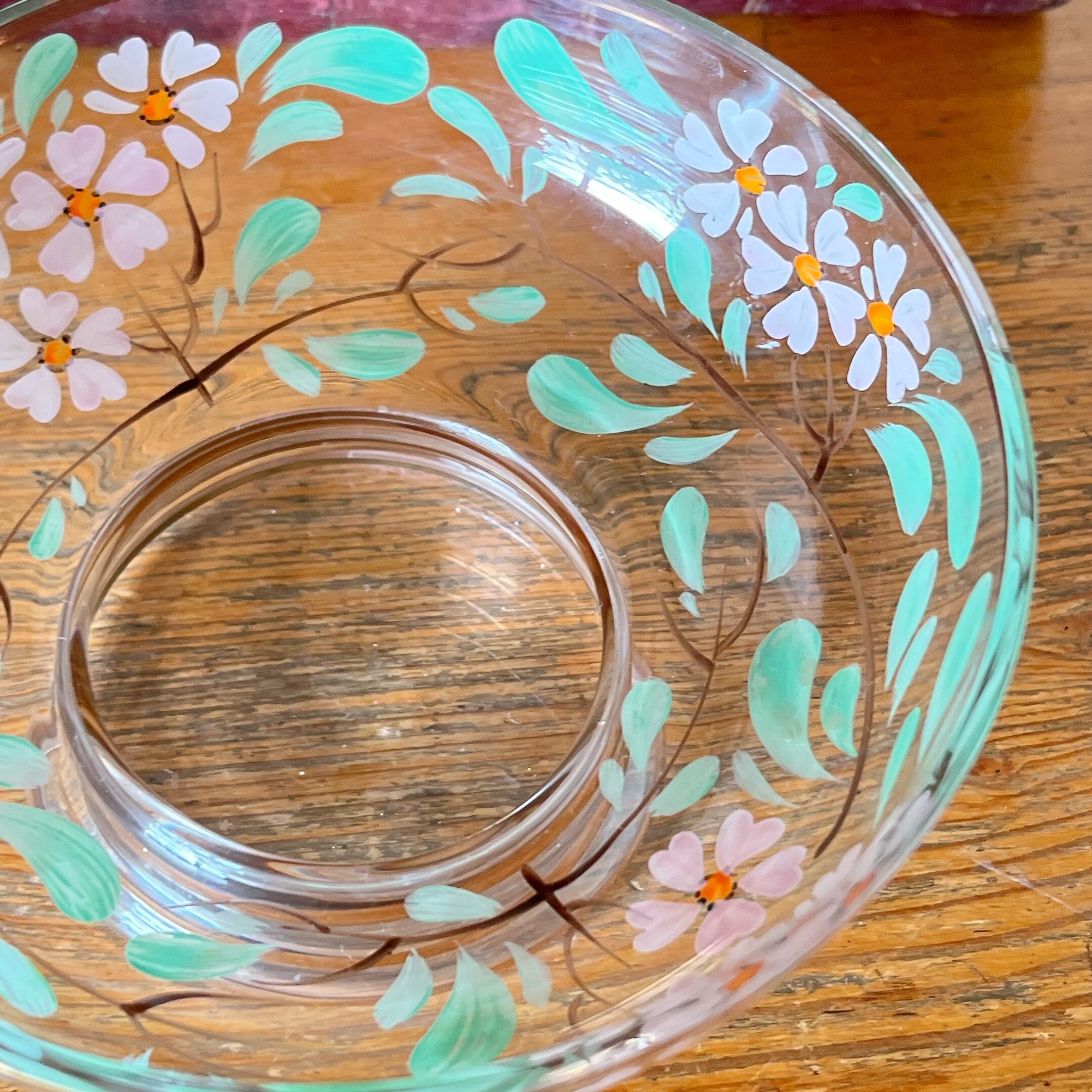 金彩もキレイに残っている可愛い花柄のガラスボウル。