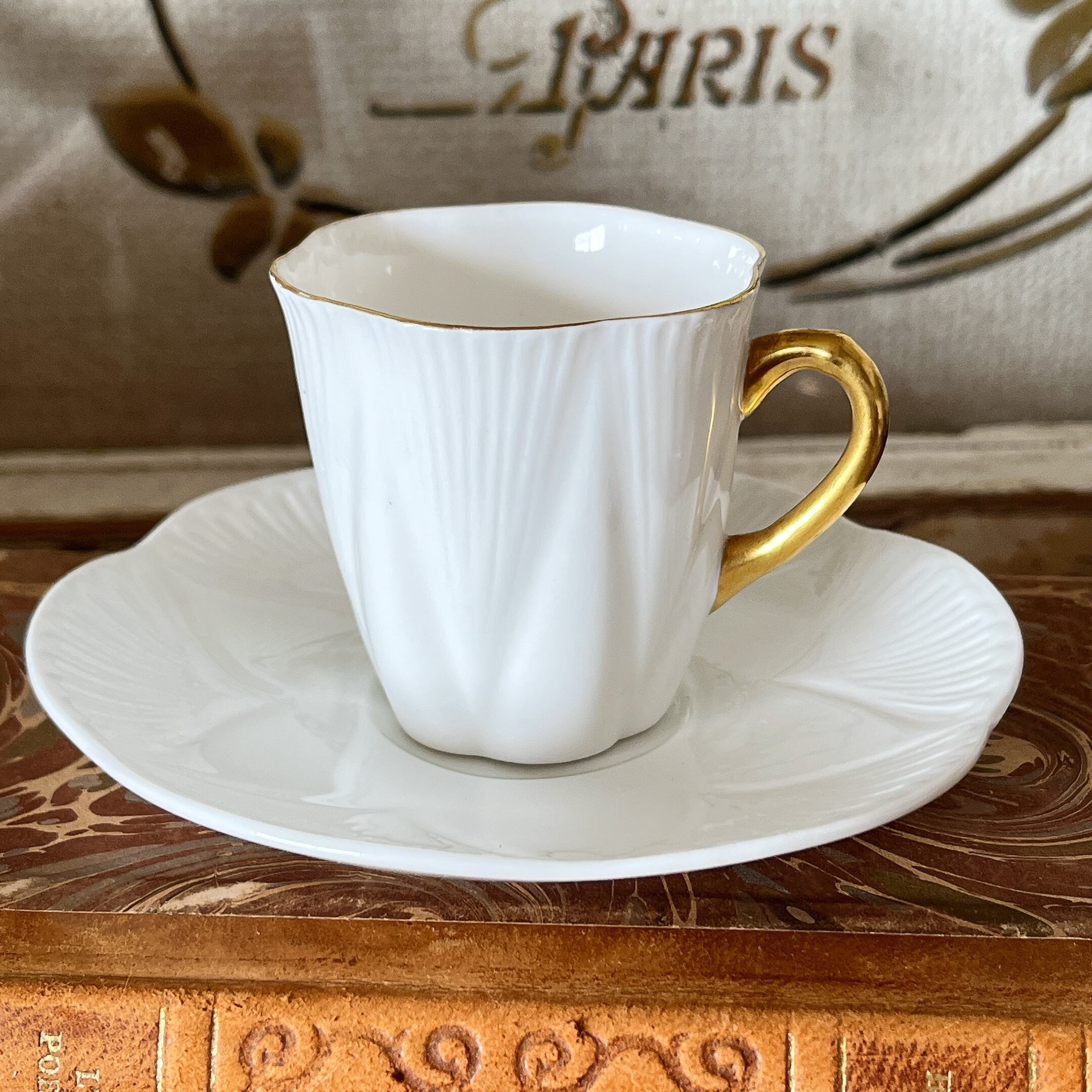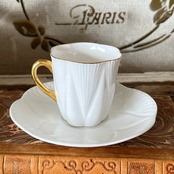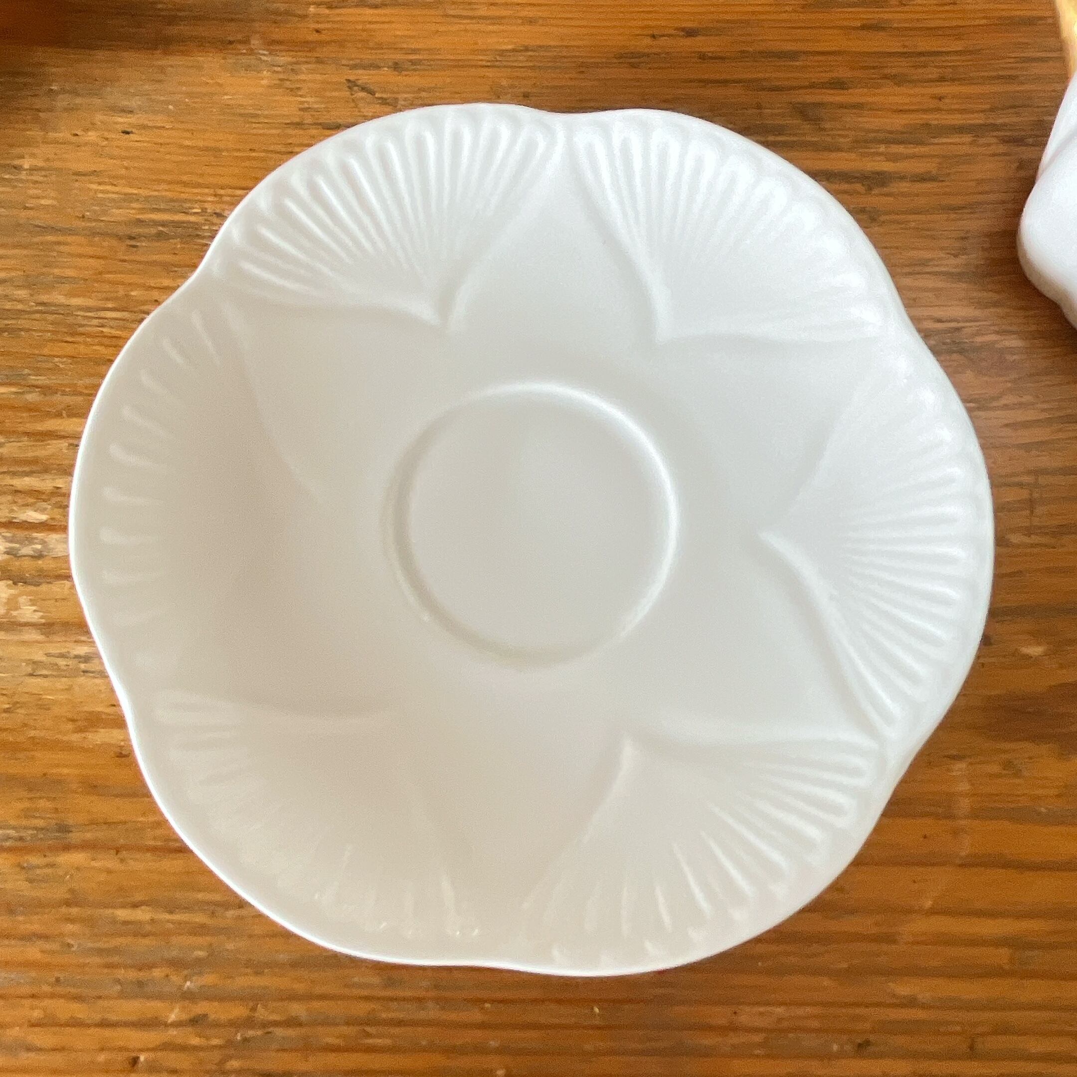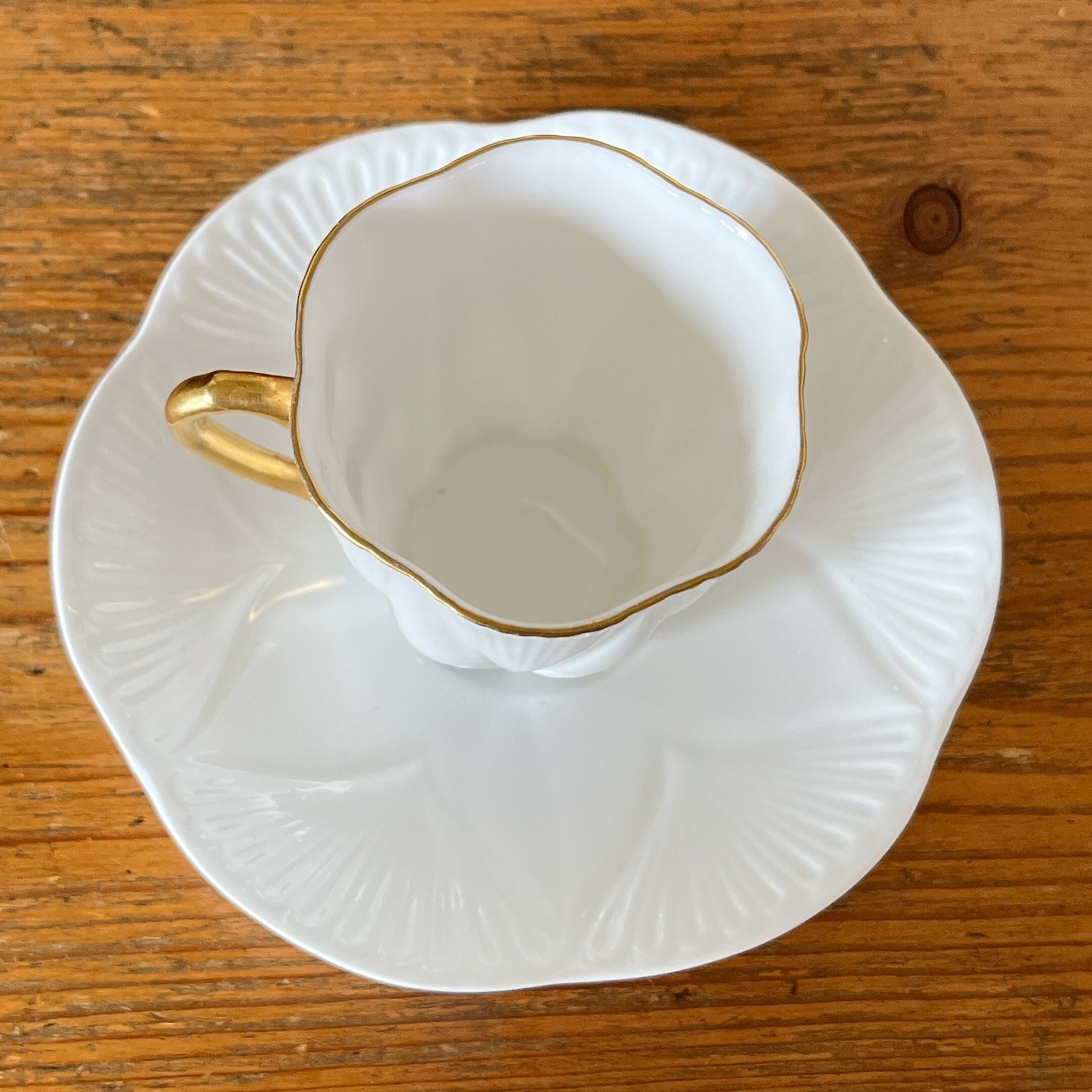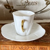 華奢な薄さと白地に金彩が美しい、本当に一輪の花のような可愛らしさのあるカップ&ソーサーです。