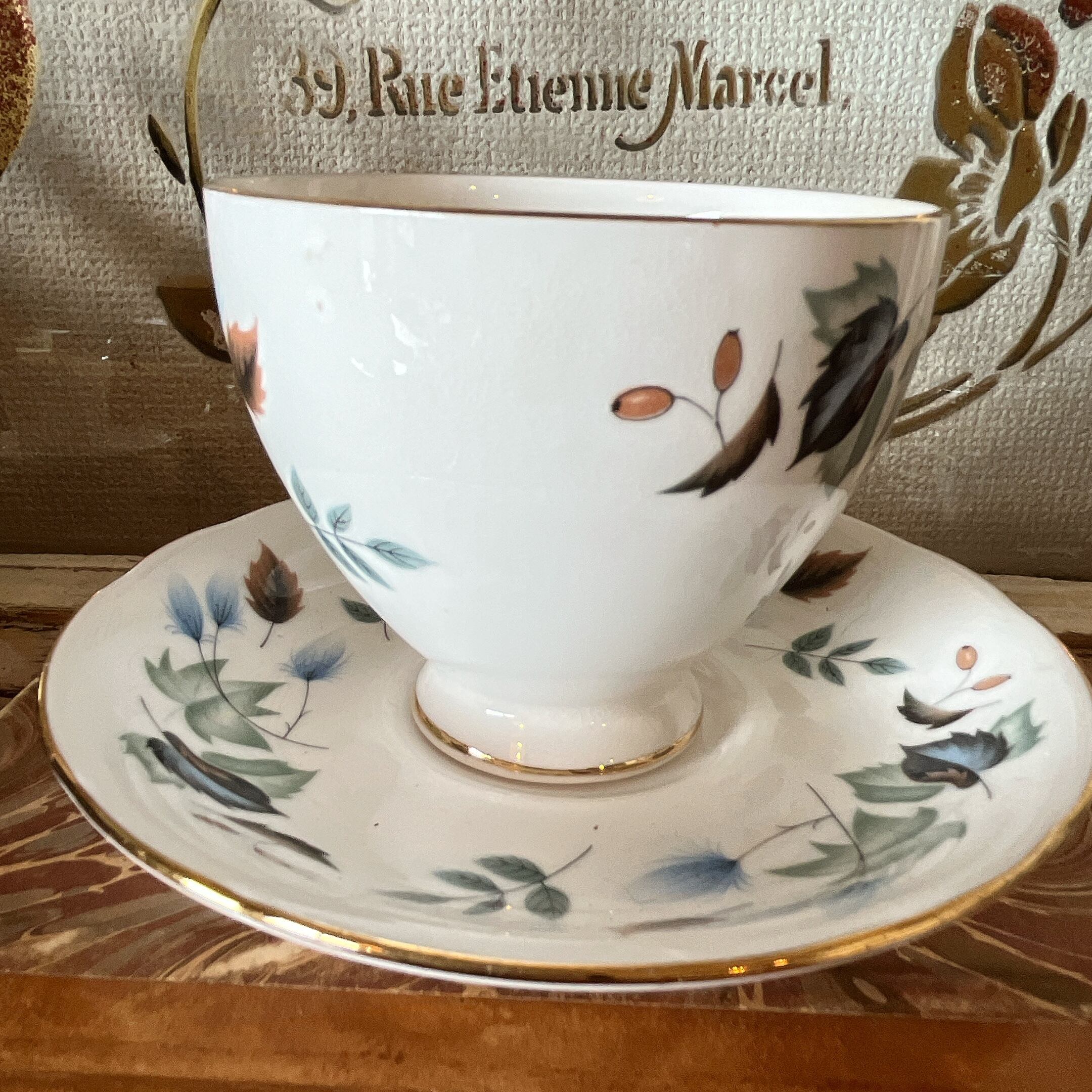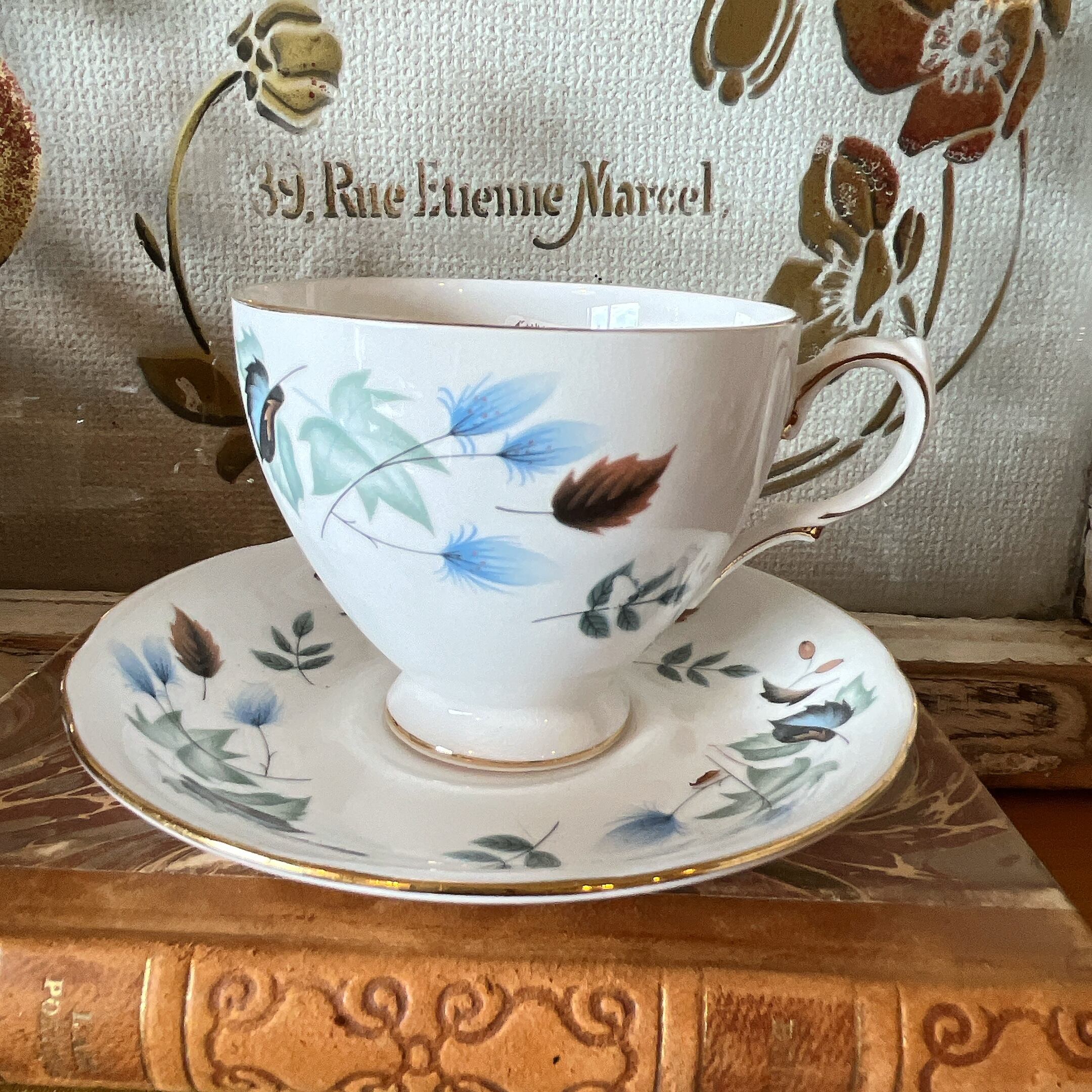 colclough 青い葉が美しいのカップ&ソーサー
