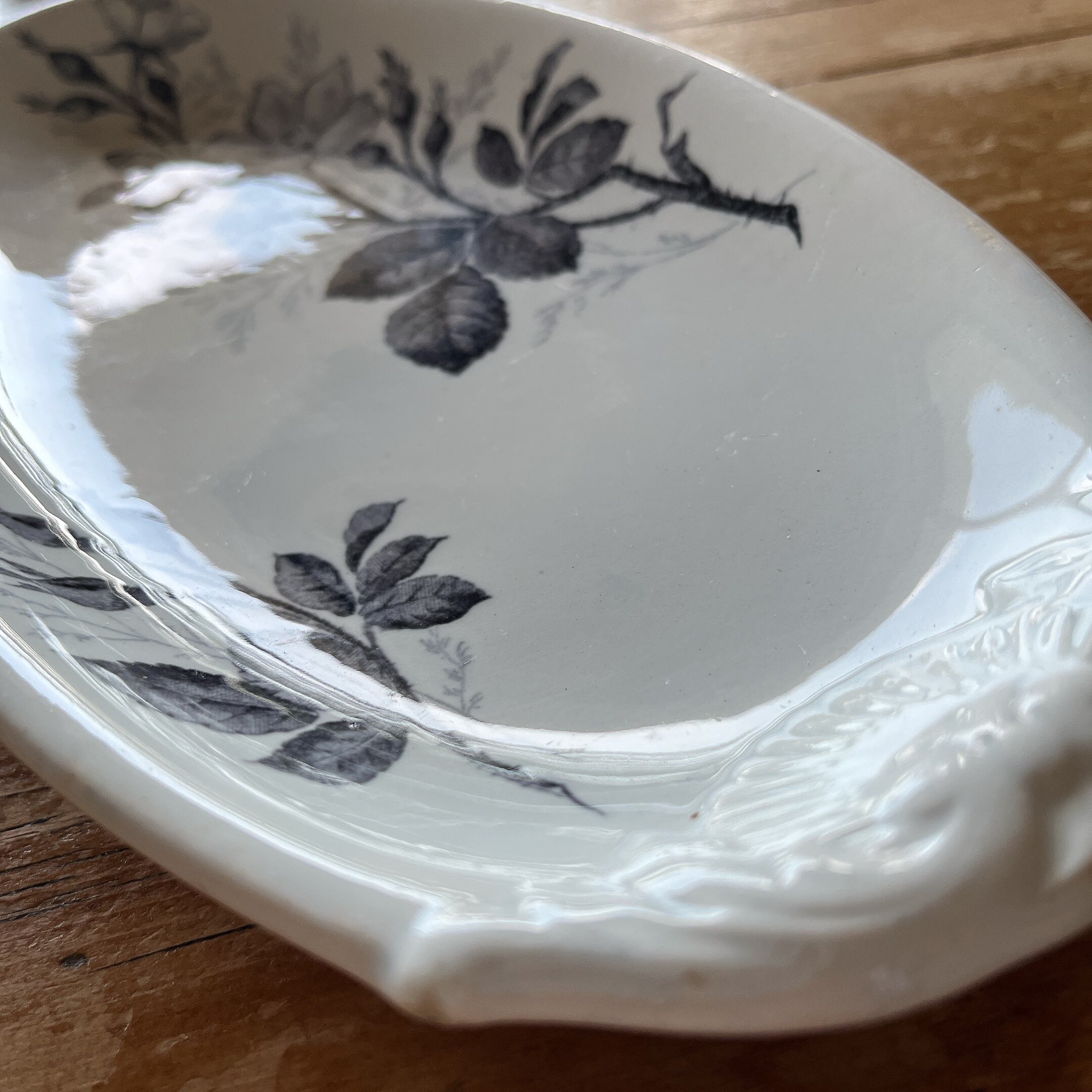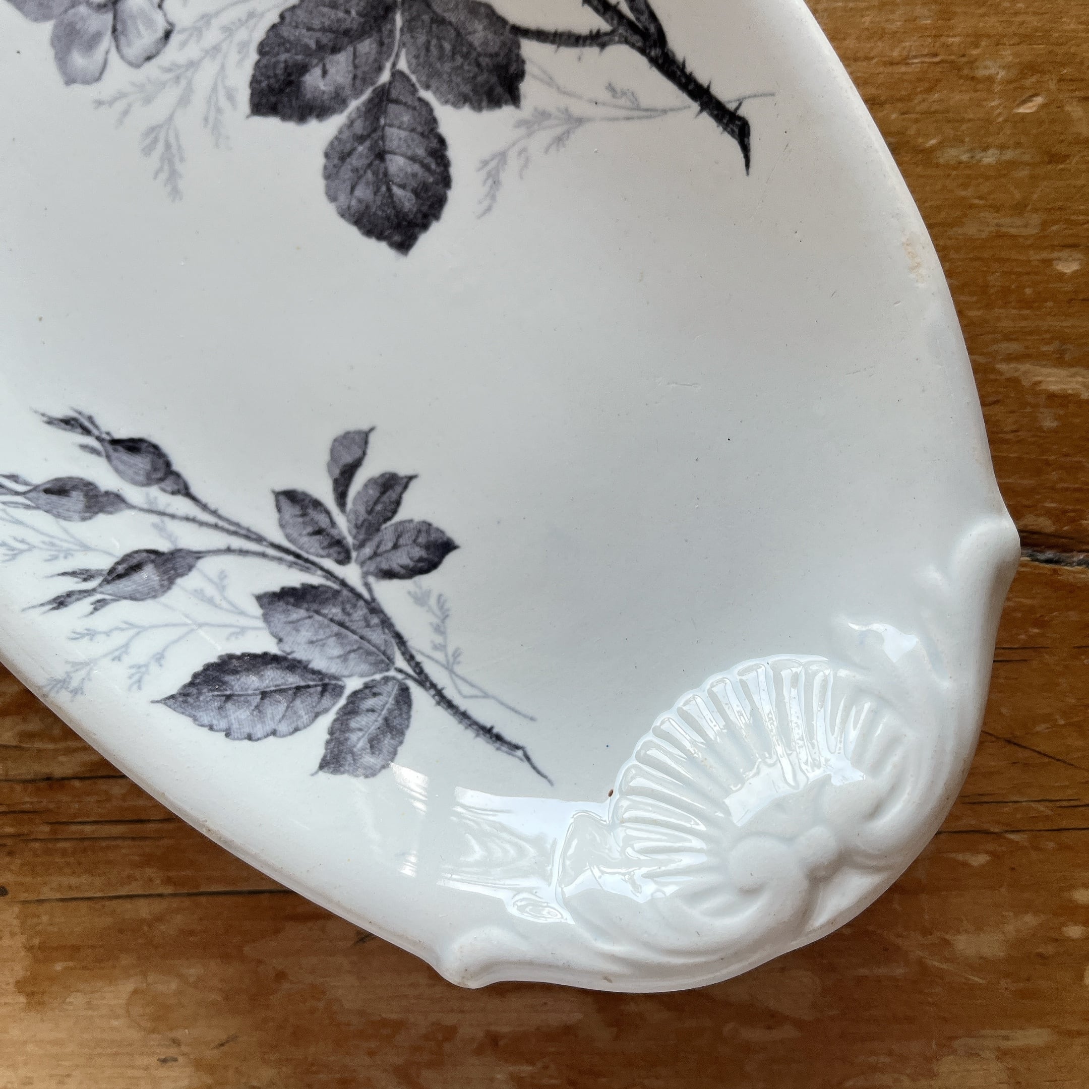 シックなモノクロのラヴィエ。モデル名のÉGLANTINES(エグラントゥーヌ)」=「野バラ・イバラ」の通り黒いバラとレリーフが美しく、なかなか珍しいタイプだと思います。