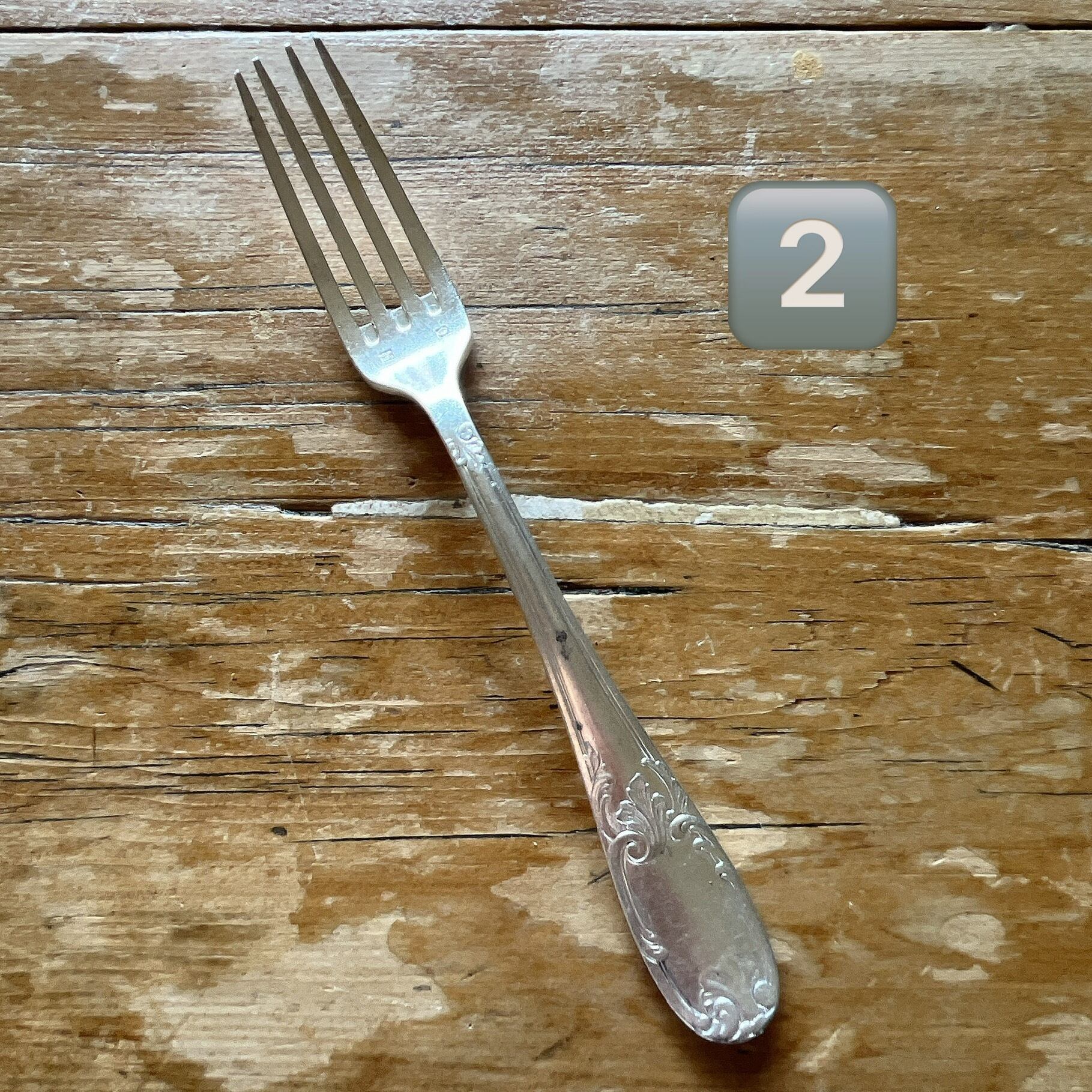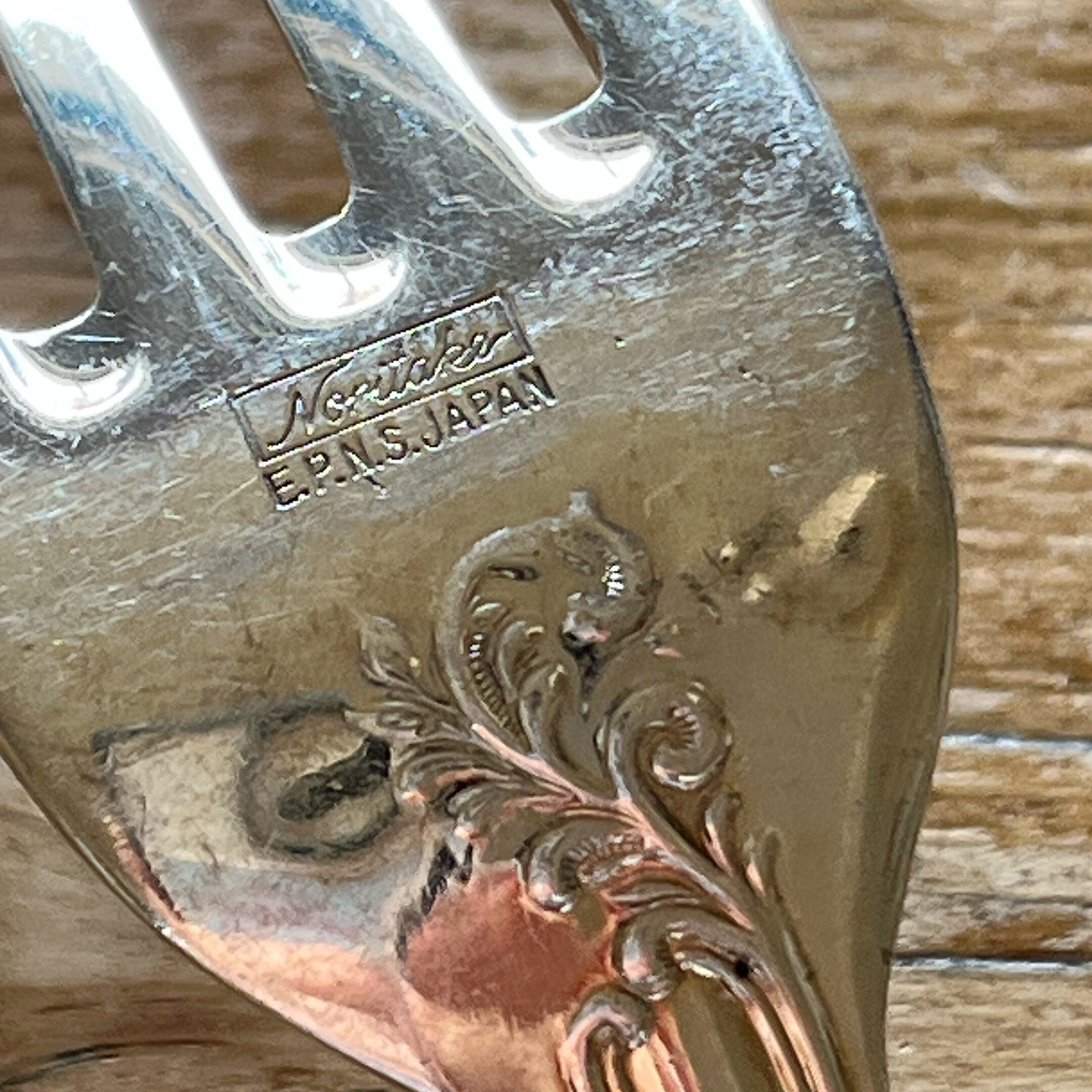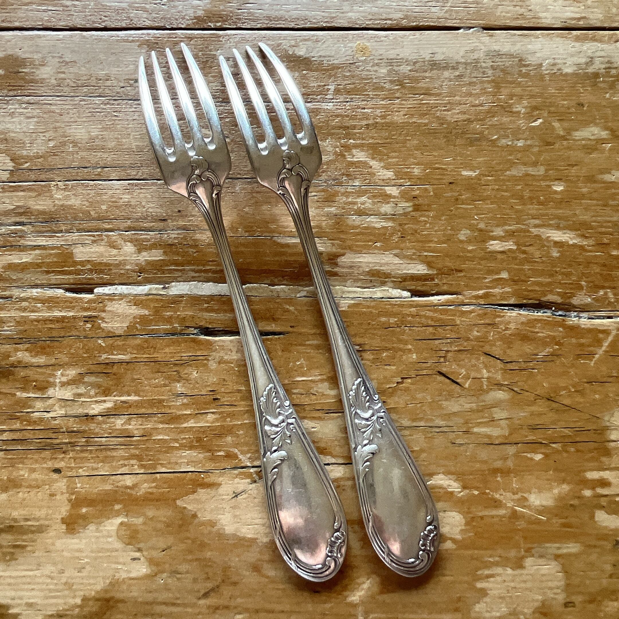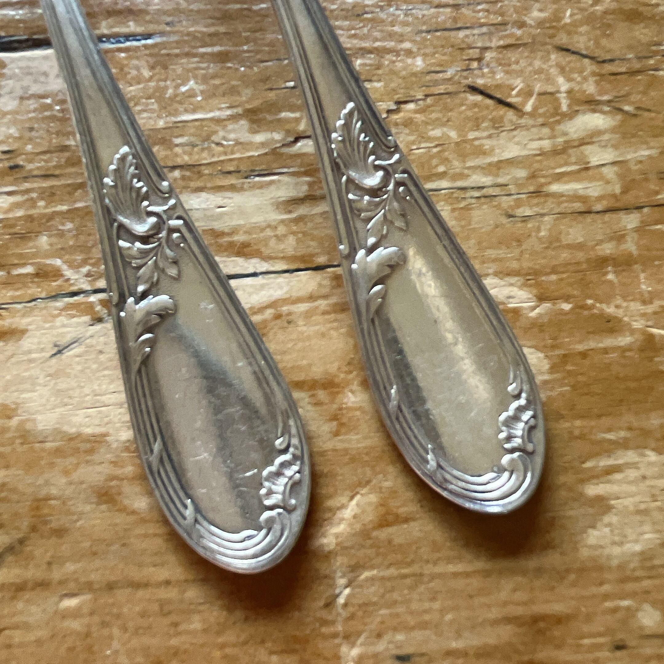④.⑤フランス 年代不明 こちらの2本は同じ物になり、状態もほぼ一緒で特に傷みはありません。アール・ヌーヴォーの彫りが美しいフォークです。