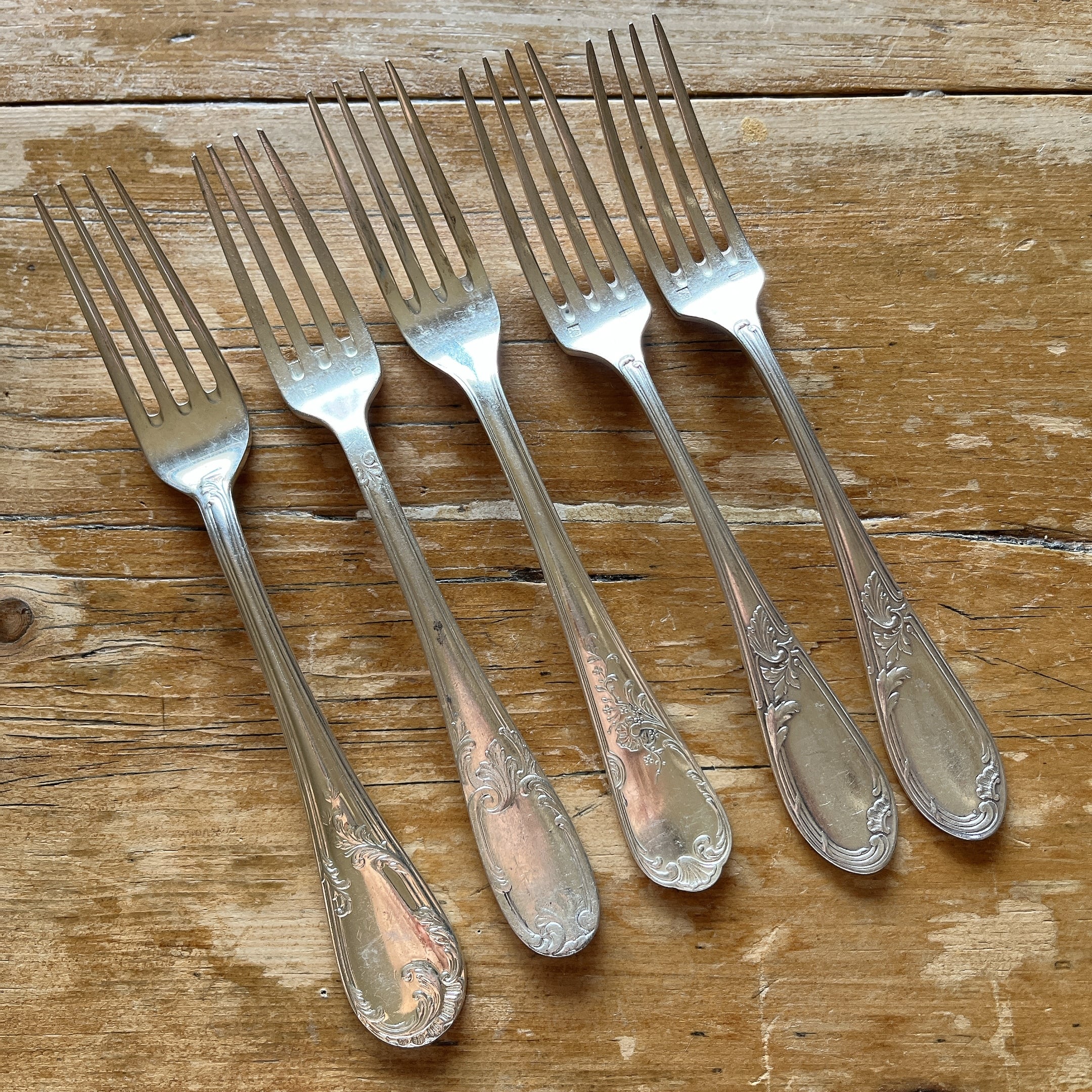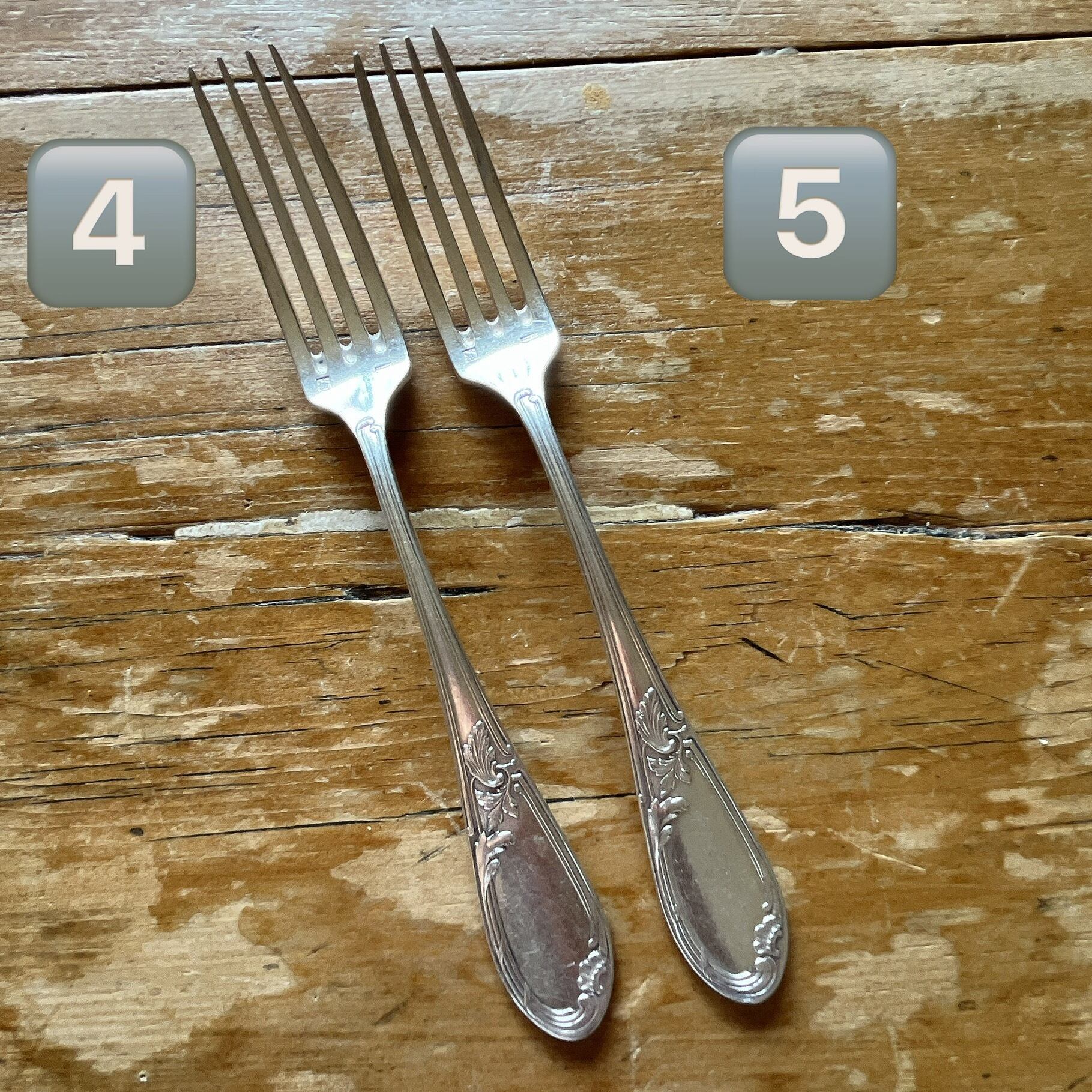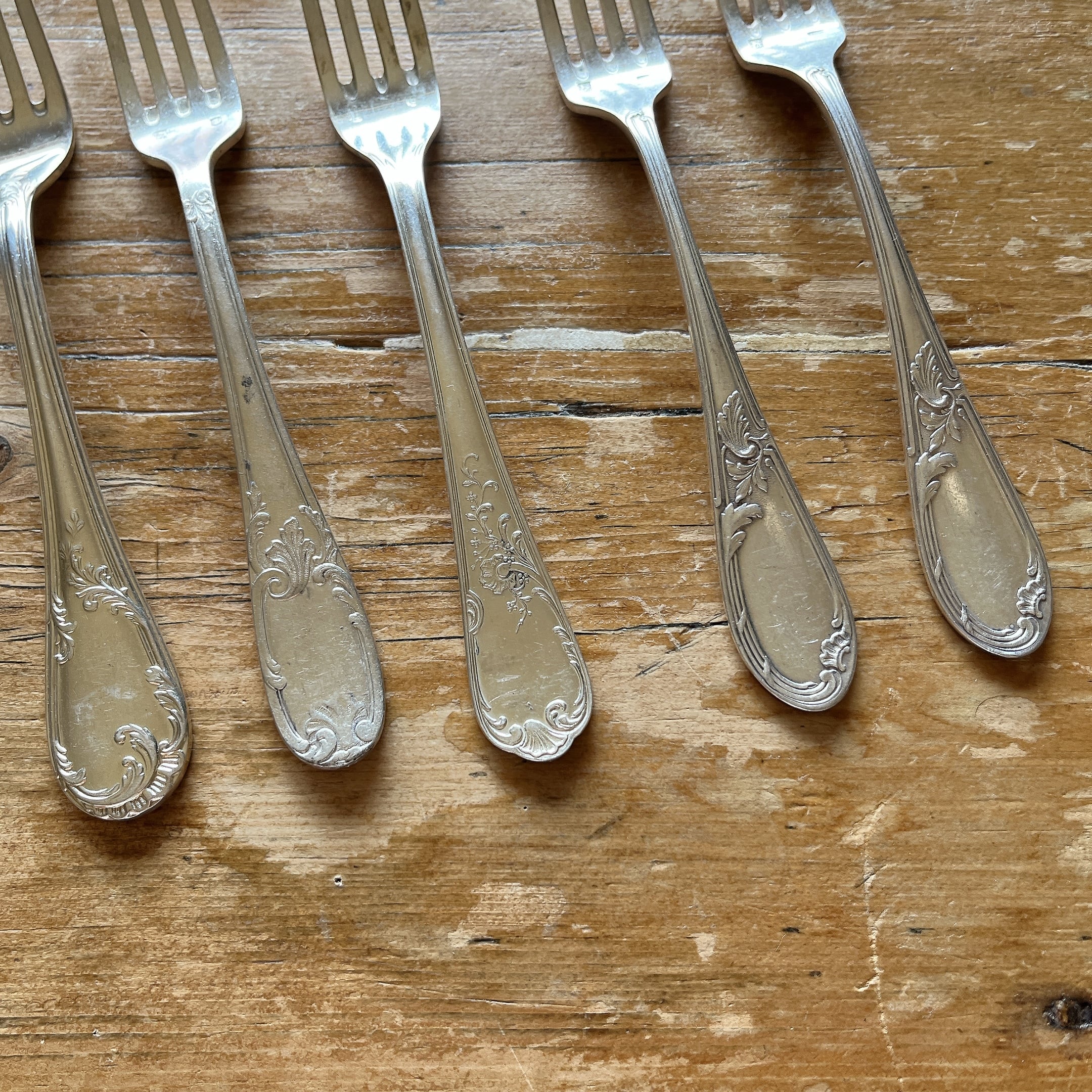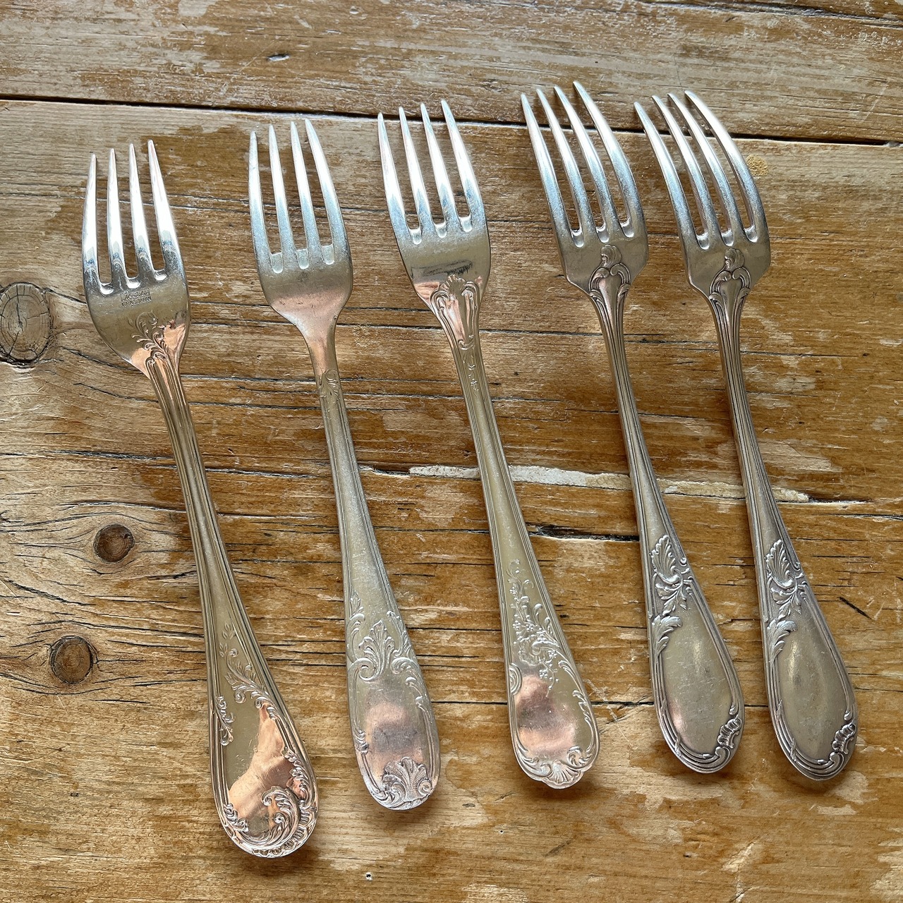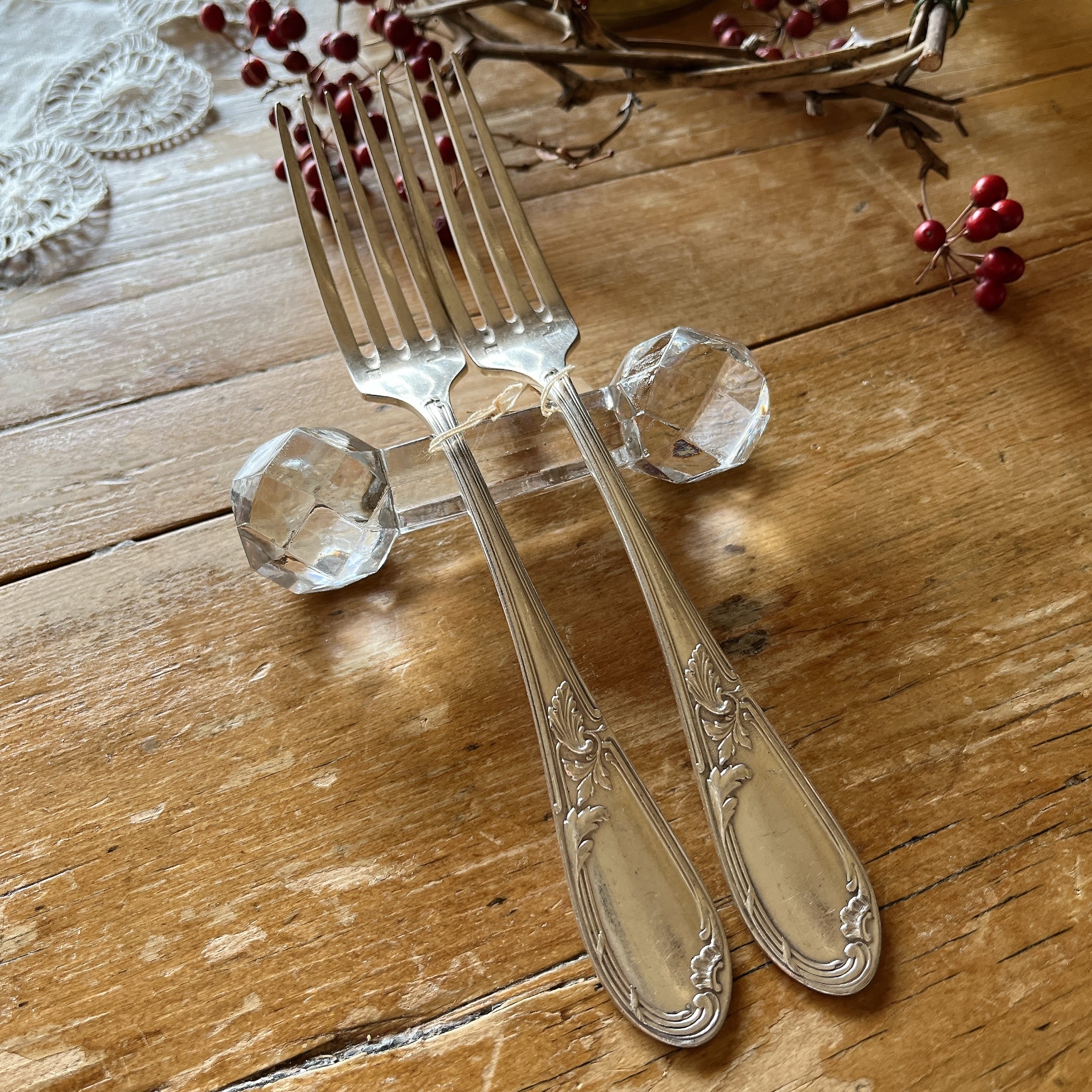 ④.⑤フランス 年代不明 こちらの2本は同じ物になり、状態もほぼ一緒で特に傷みはありません。アール・ヌーヴォーの彫りが美しいフォークです。