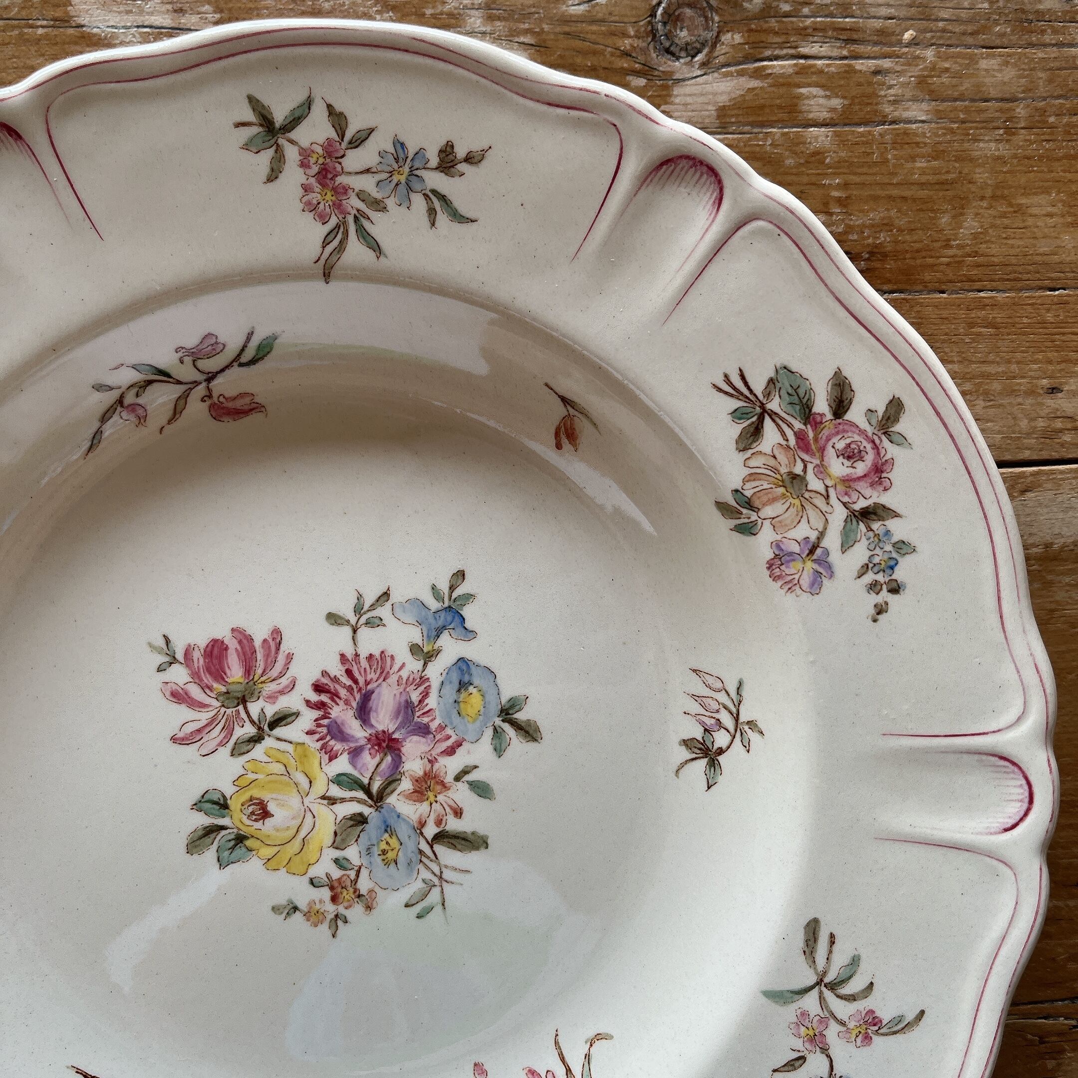 繊細な花とパステルカラーが、本当に可愛いお皿です。一枚づつ、少しずつ柄も違いコレクター心がそそられます。