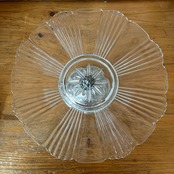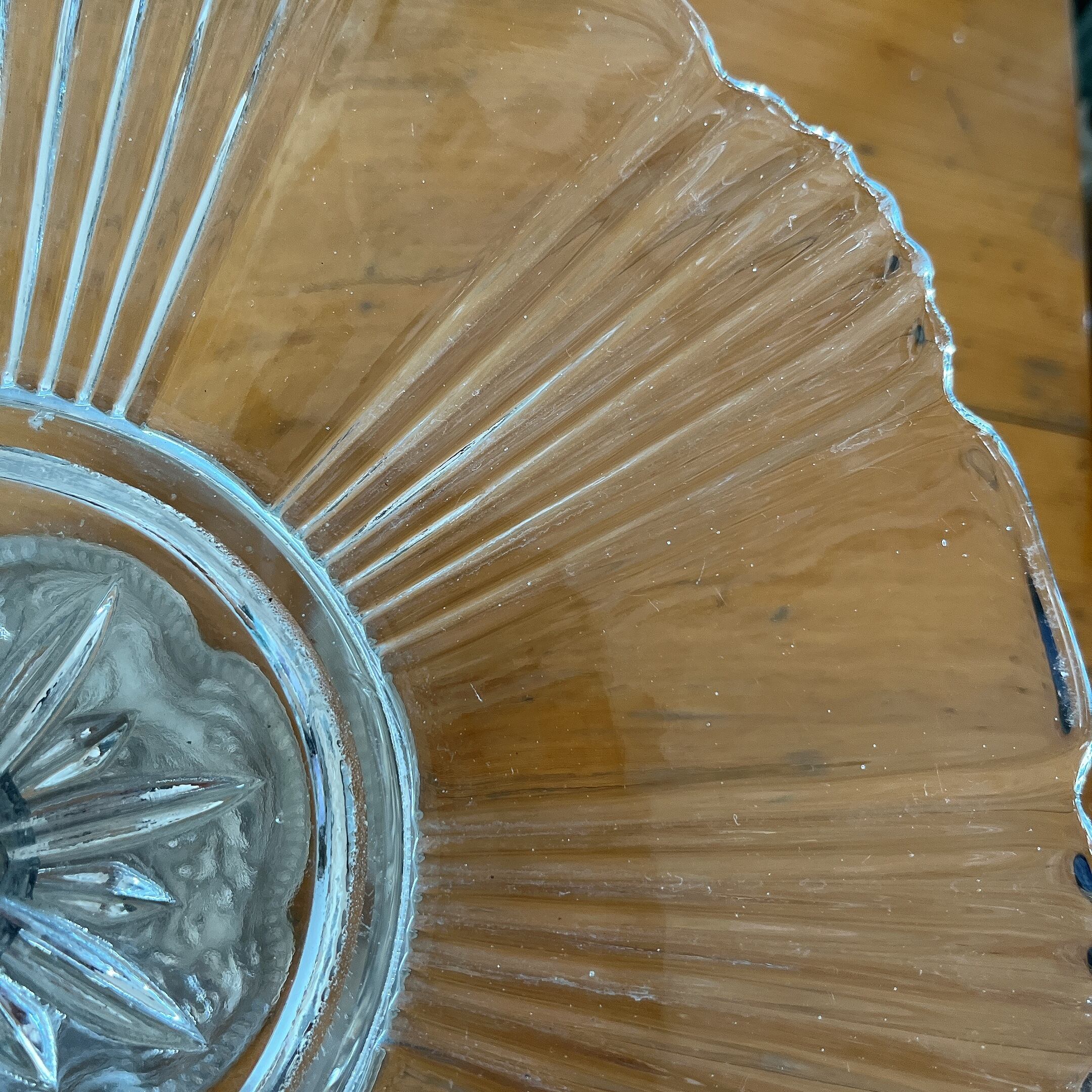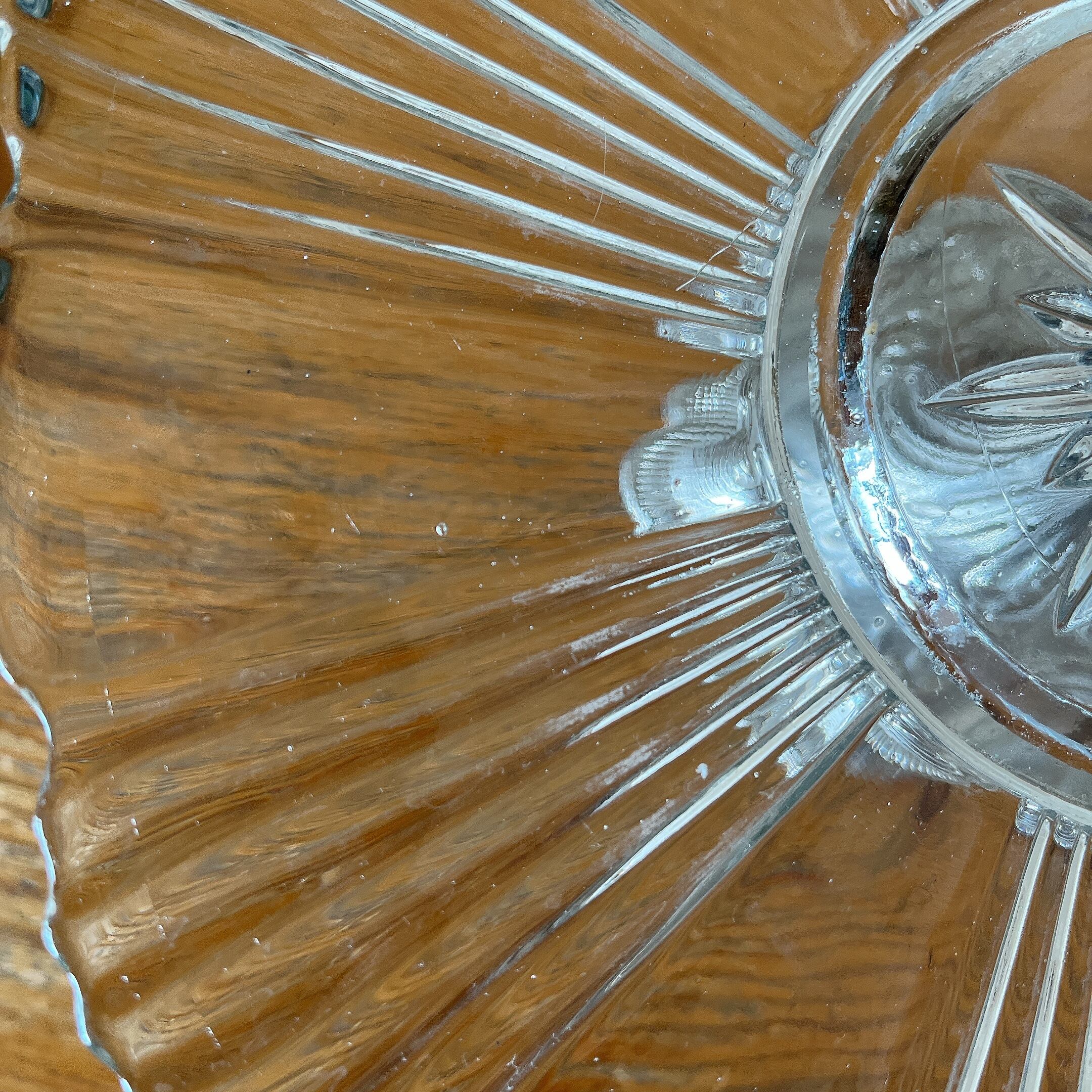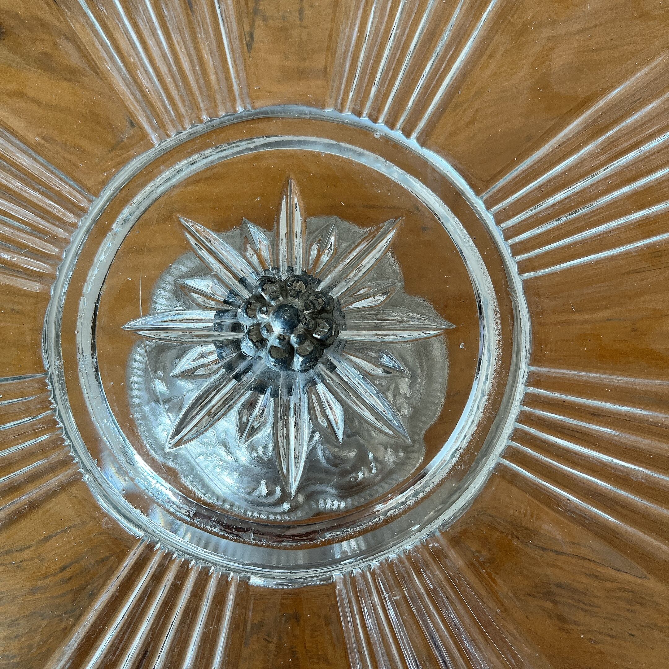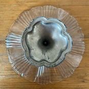 美しい彫りが入ったガラスとアイアンのコンポティエ。気泡が見られるので、古い物だと思います。