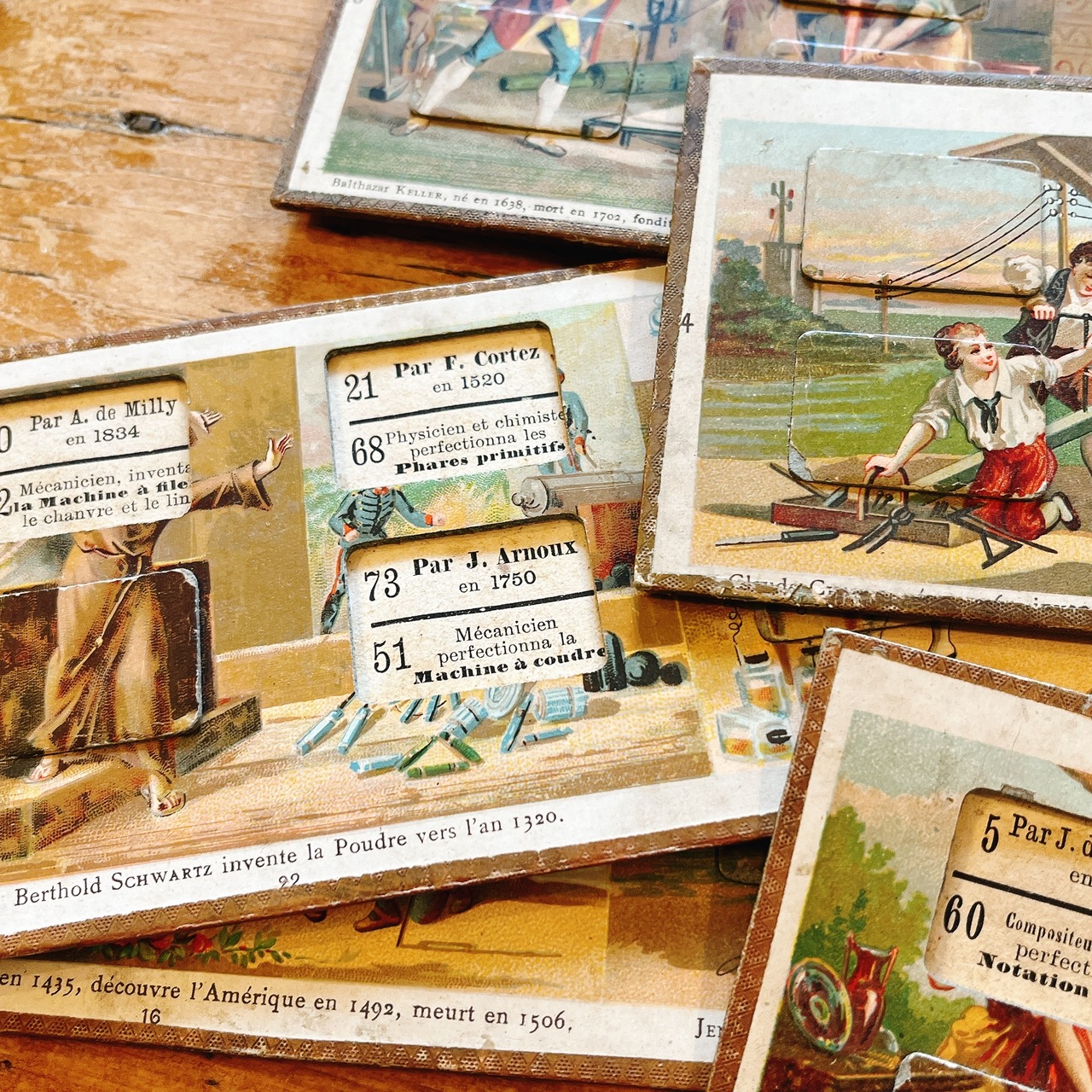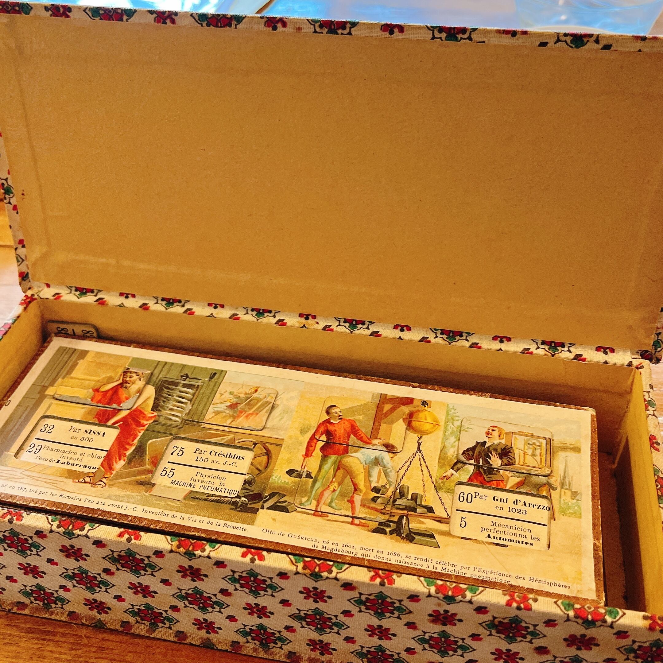 かなりしっかりしたカルトナージュBOXの中に、フランスの子供達が使用していた偉人伝の教材カードが10枚入っています。