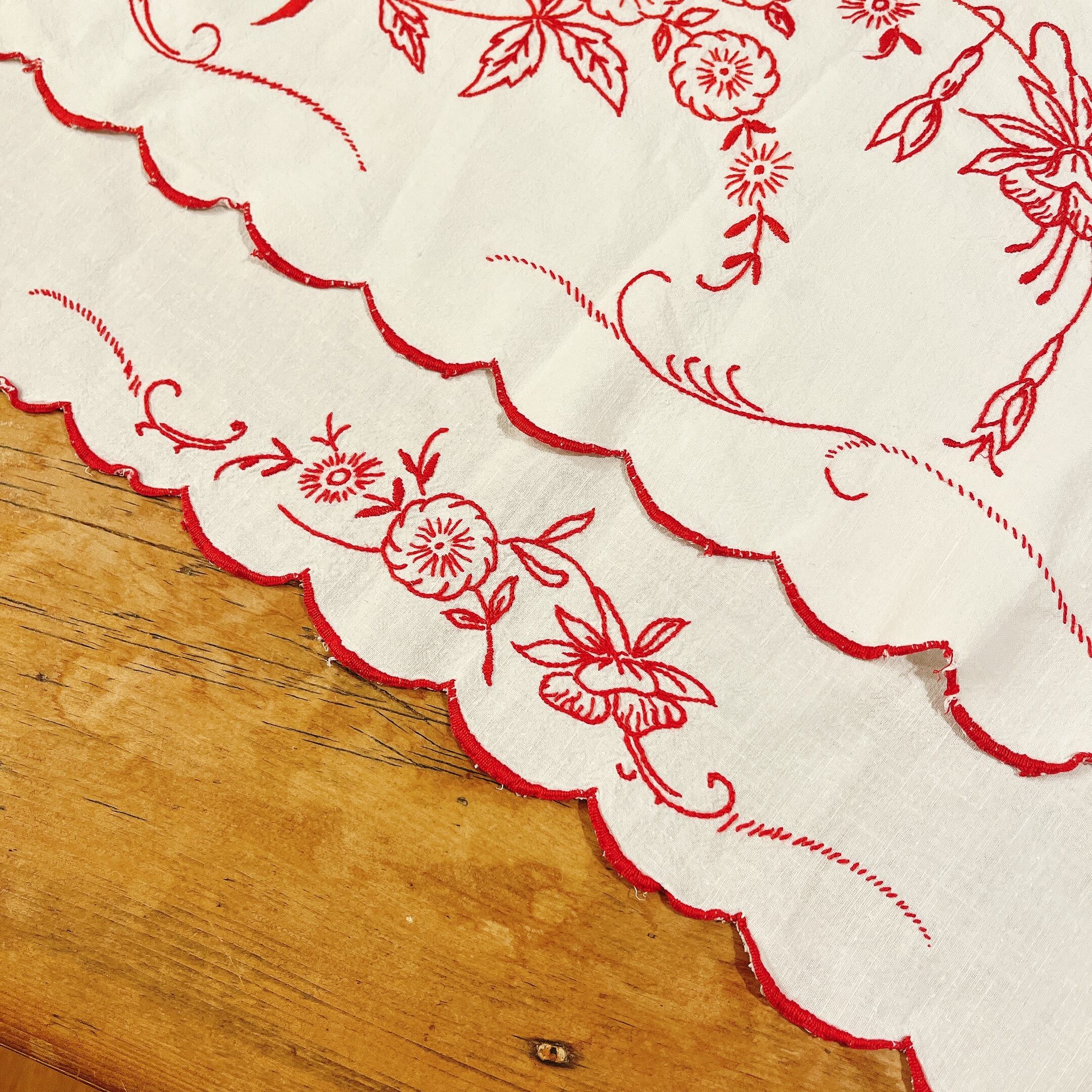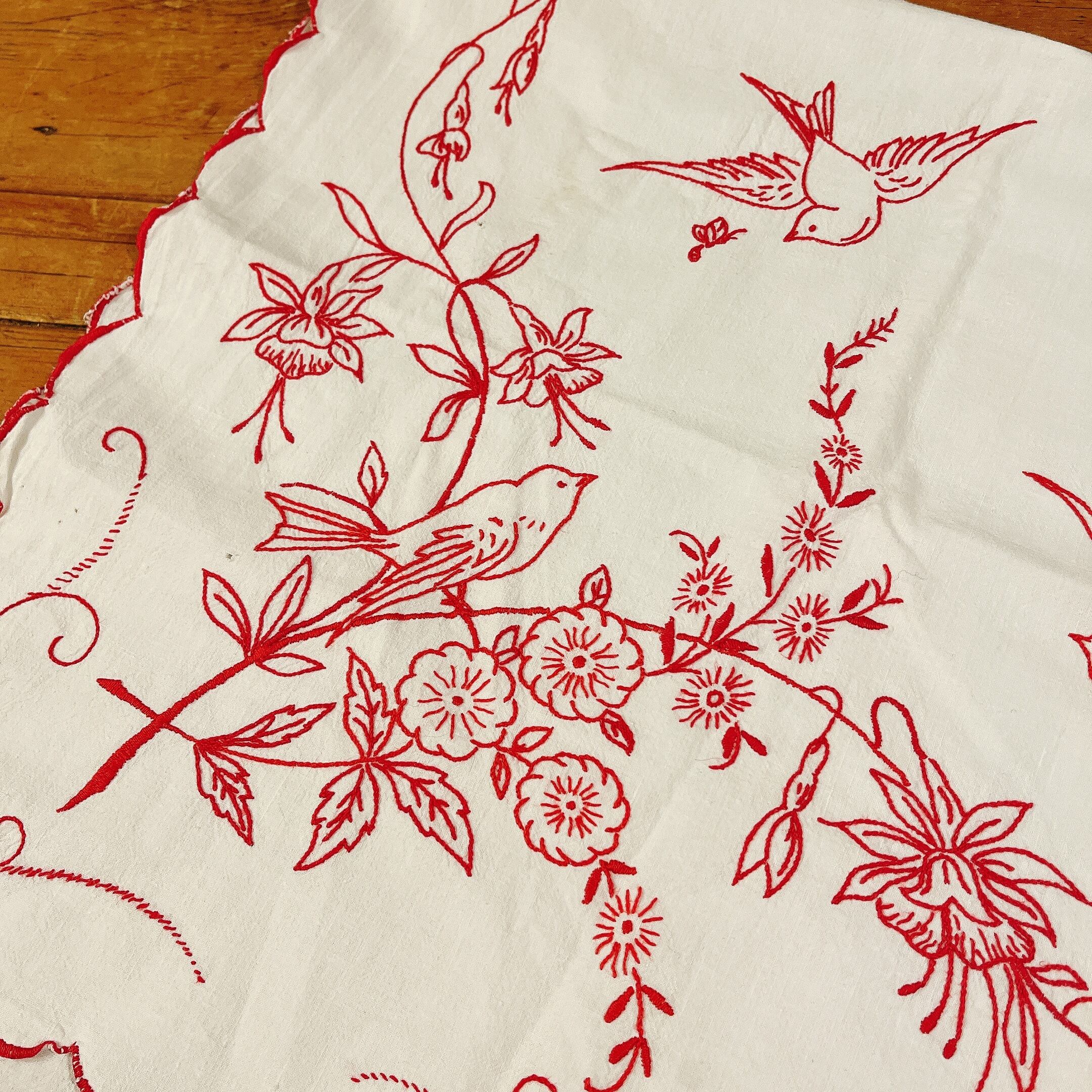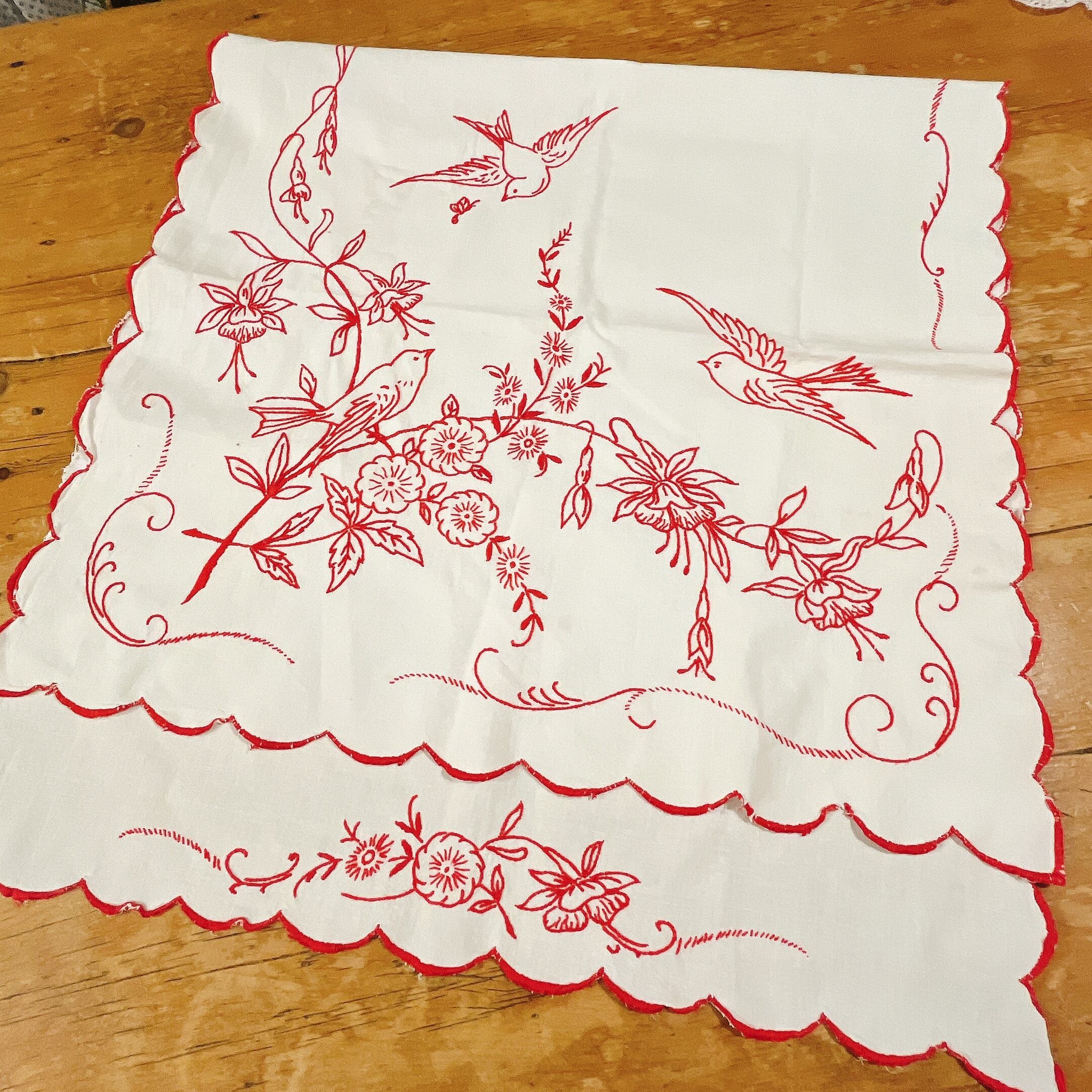 T様お取置き 赤い鳥の刺繍クロス・ジアン コンポティエ