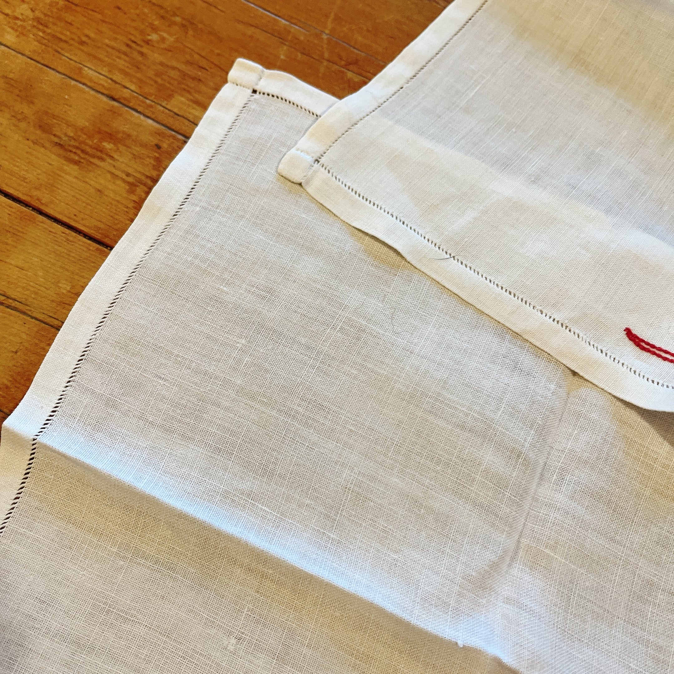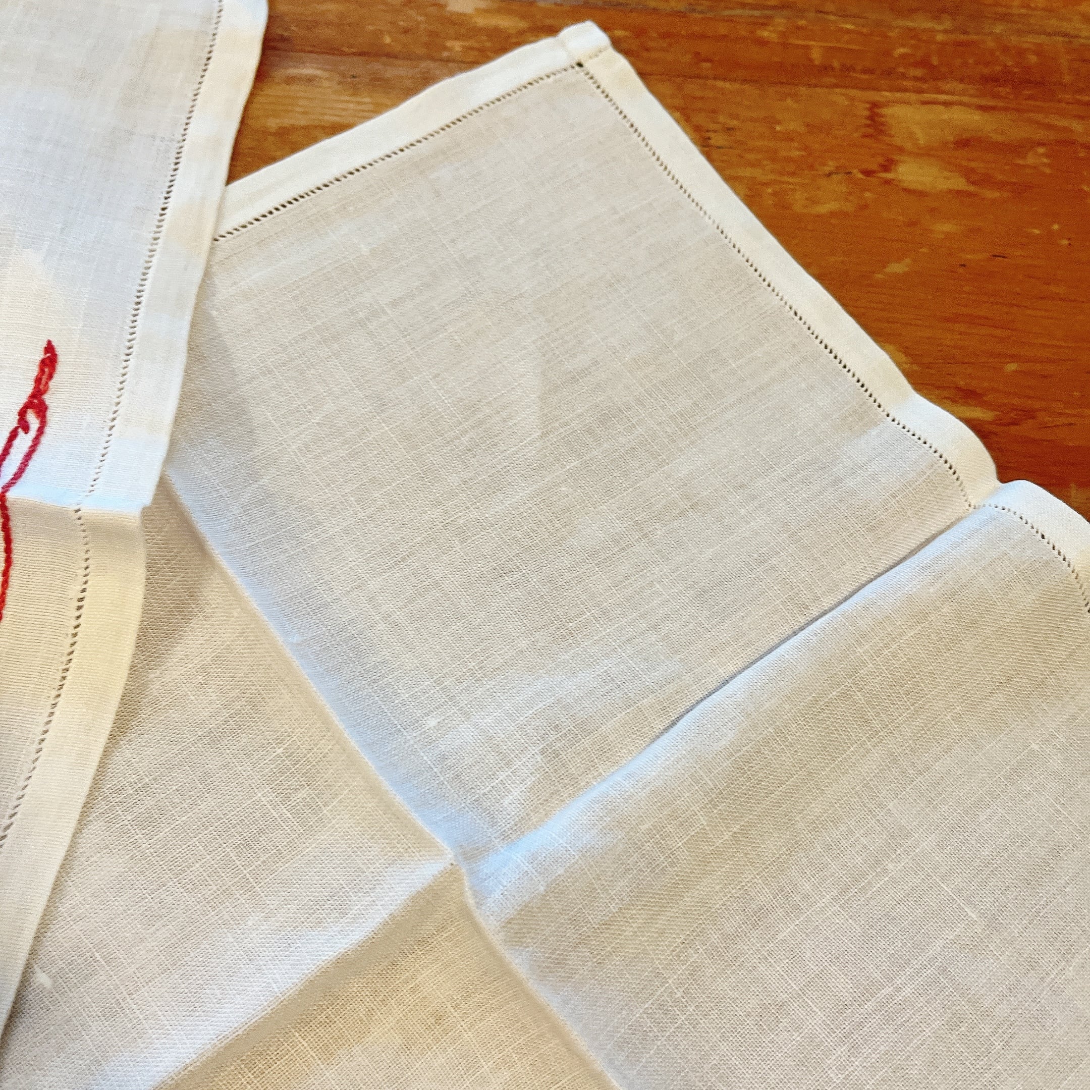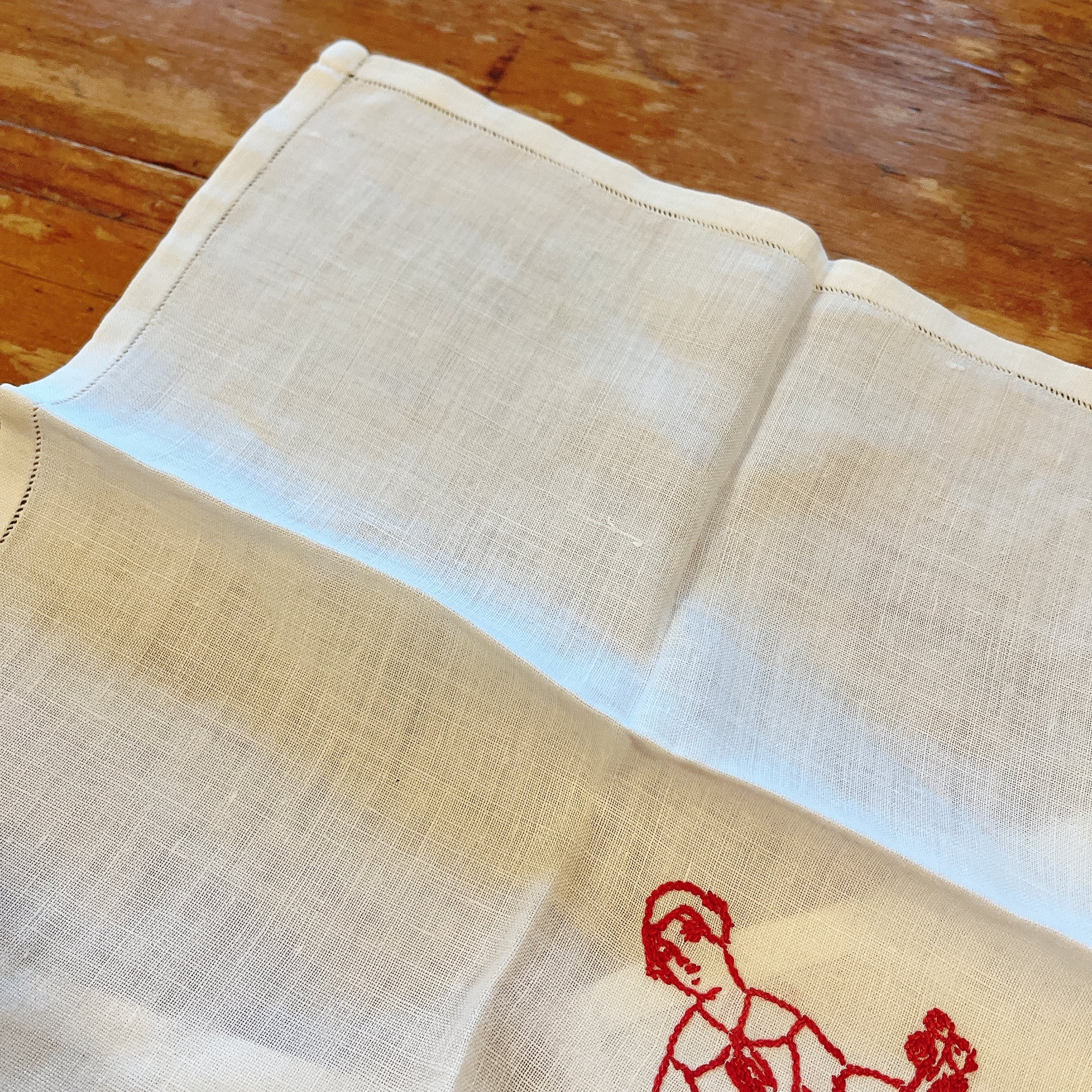 赤い刺繍で村での暮らしが描かれている可愛いナプキン3枚セットです。