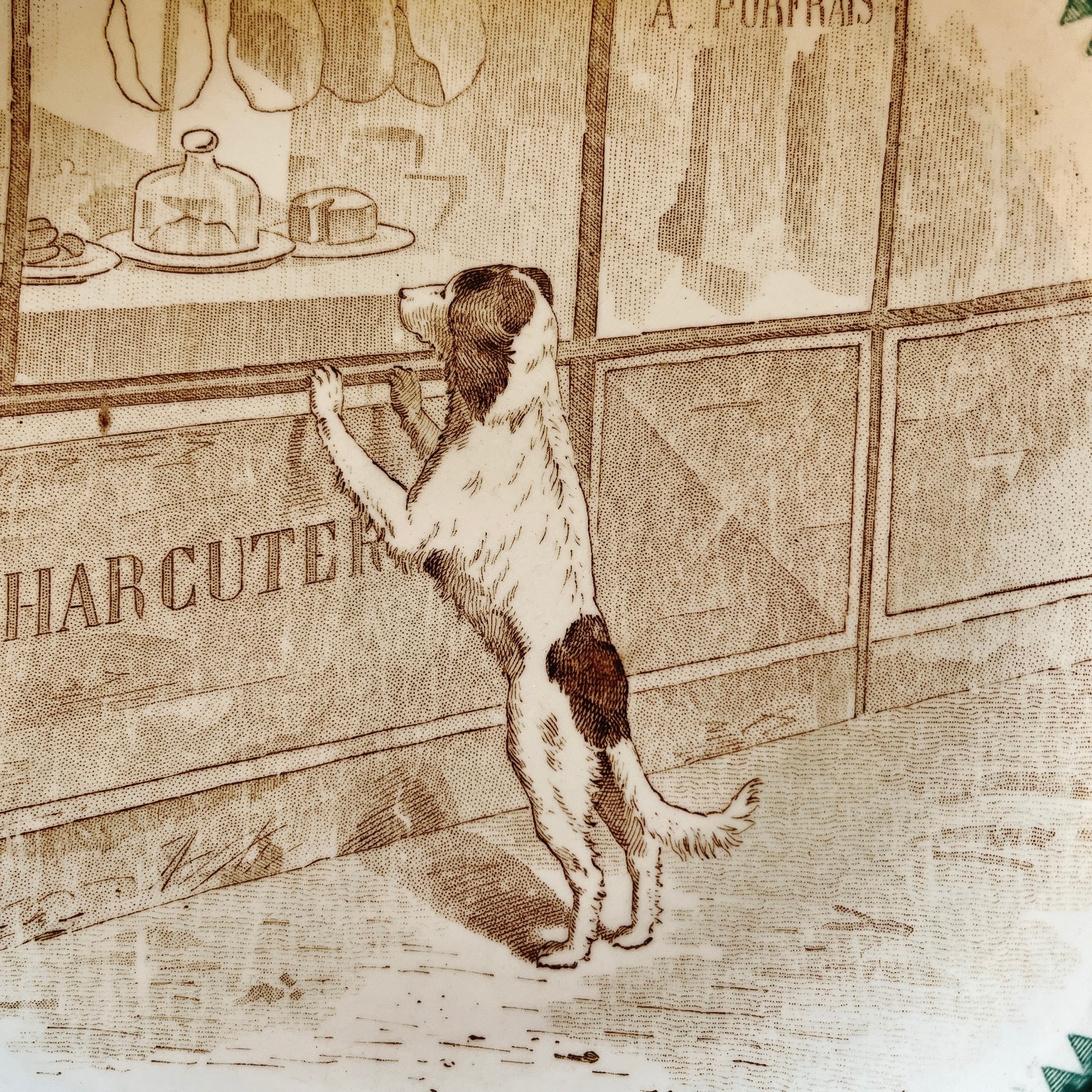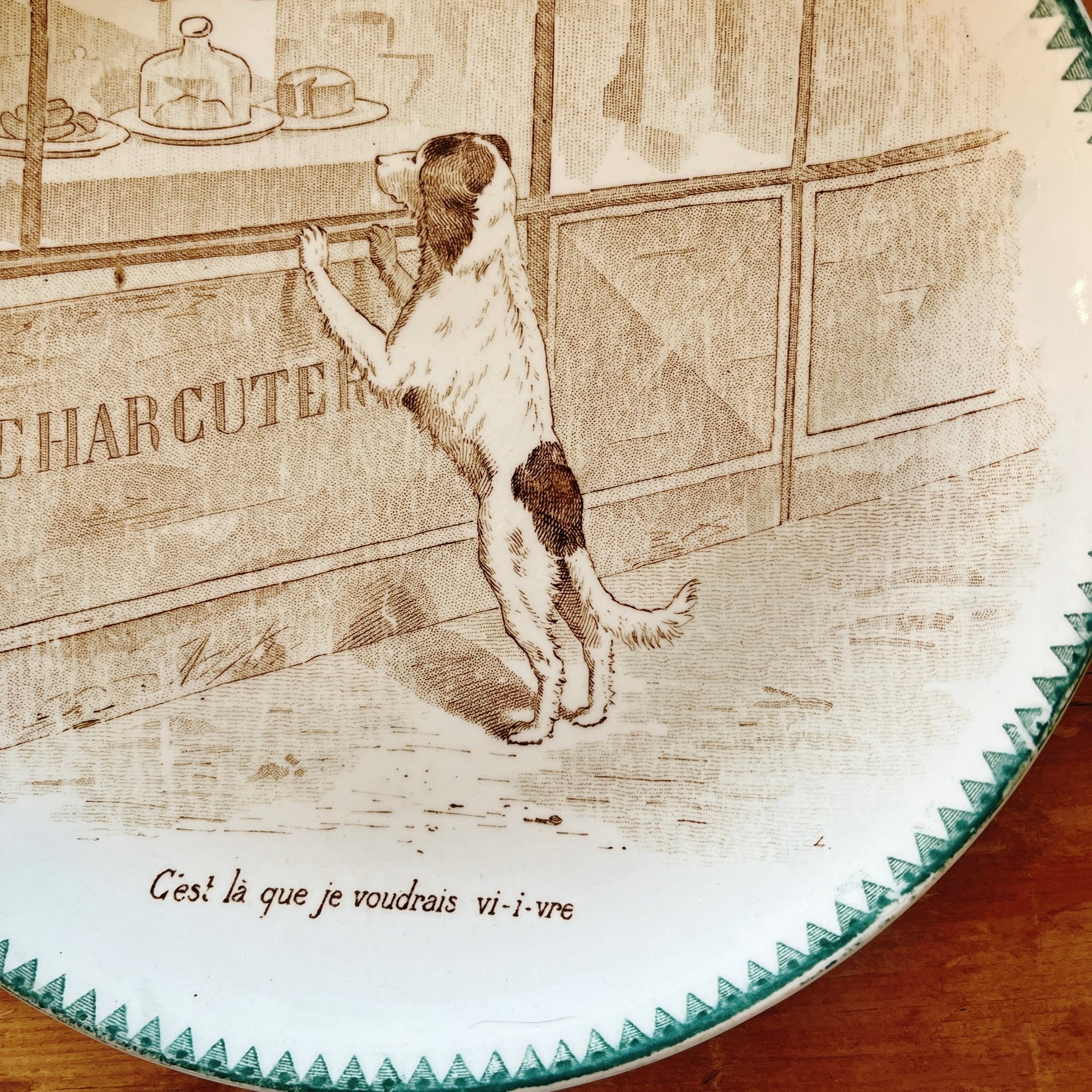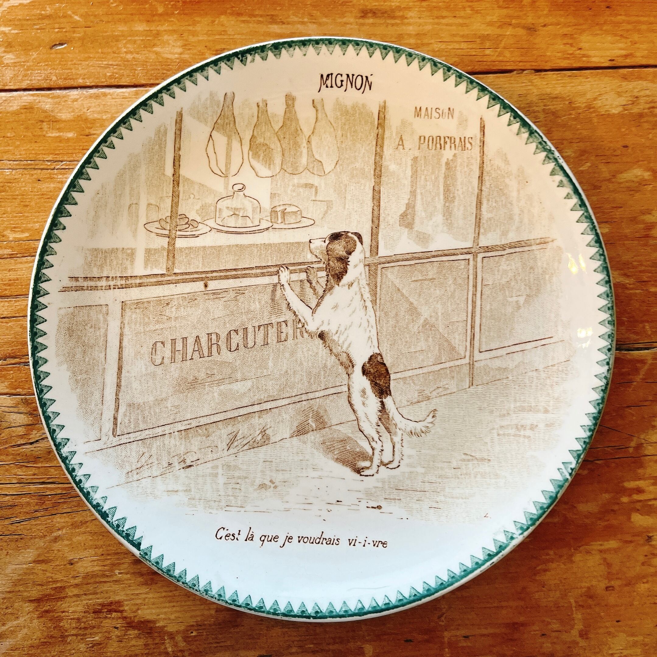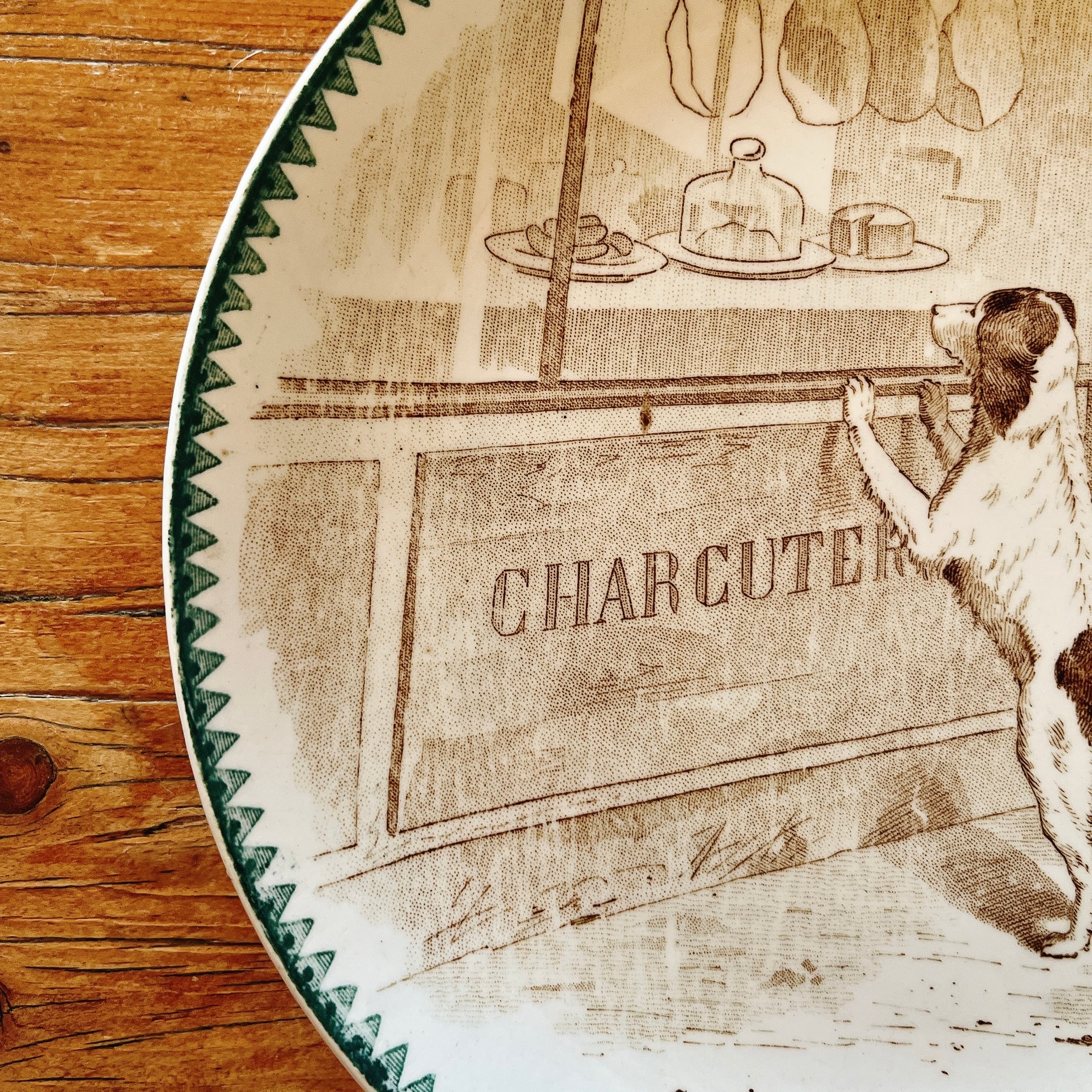 DIGOIN&SARRGUEMINES 肉屋さんを覗いてるワンコのプレート