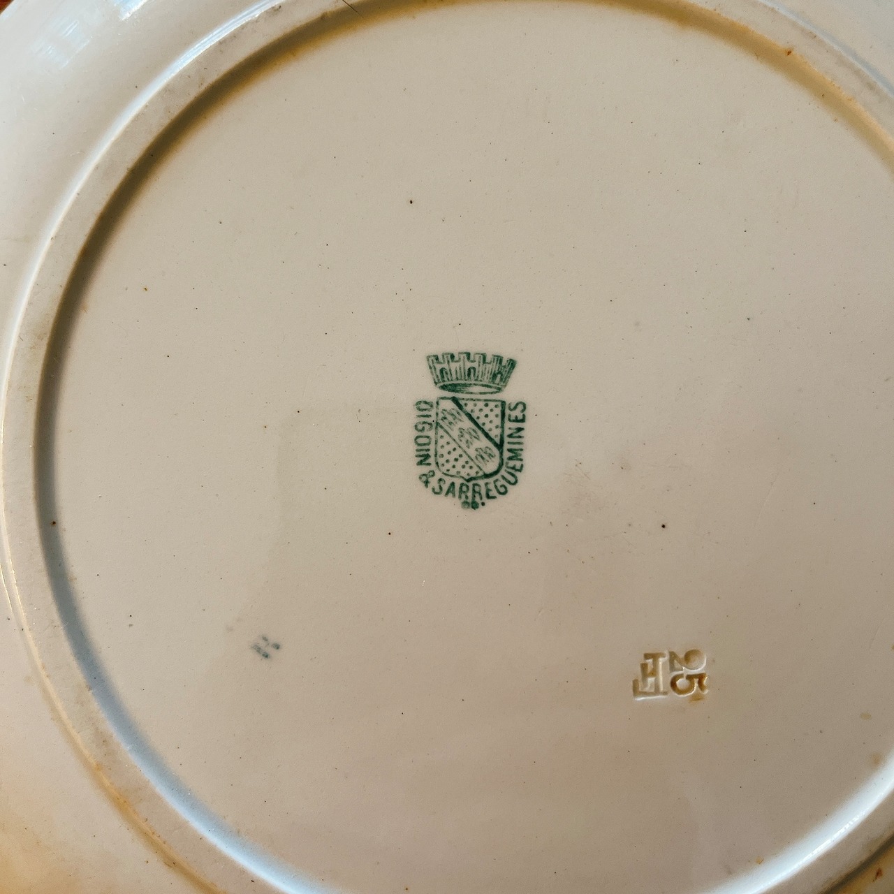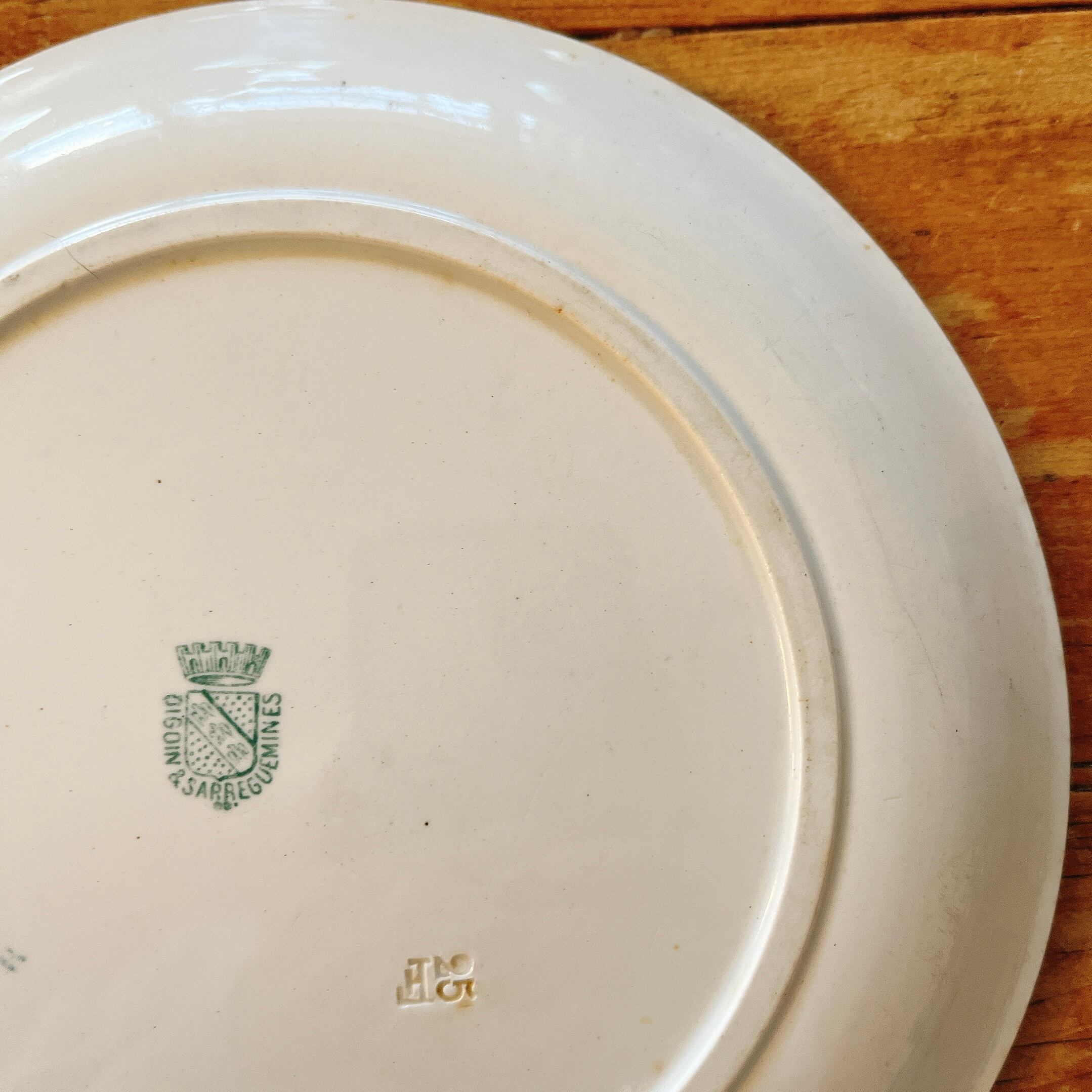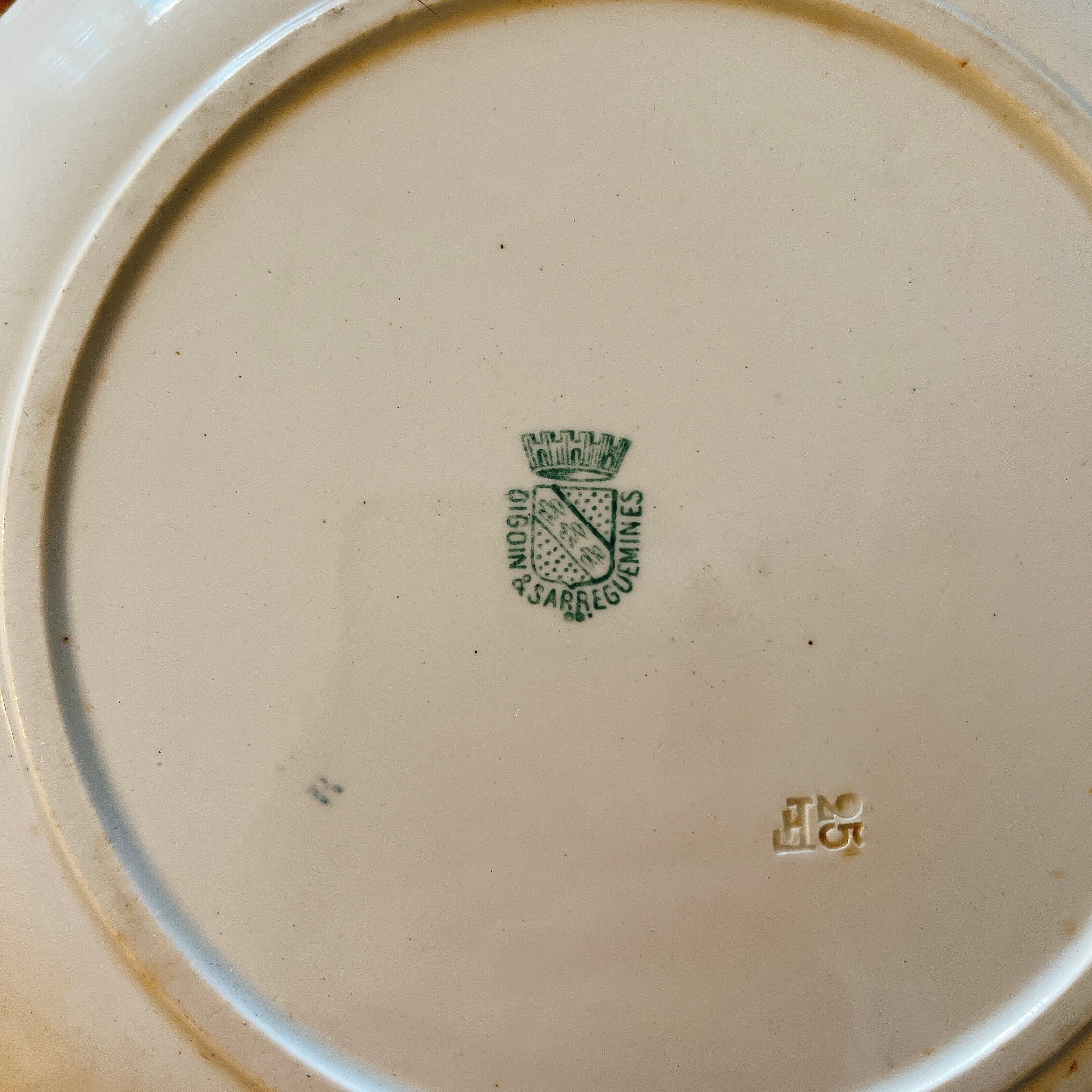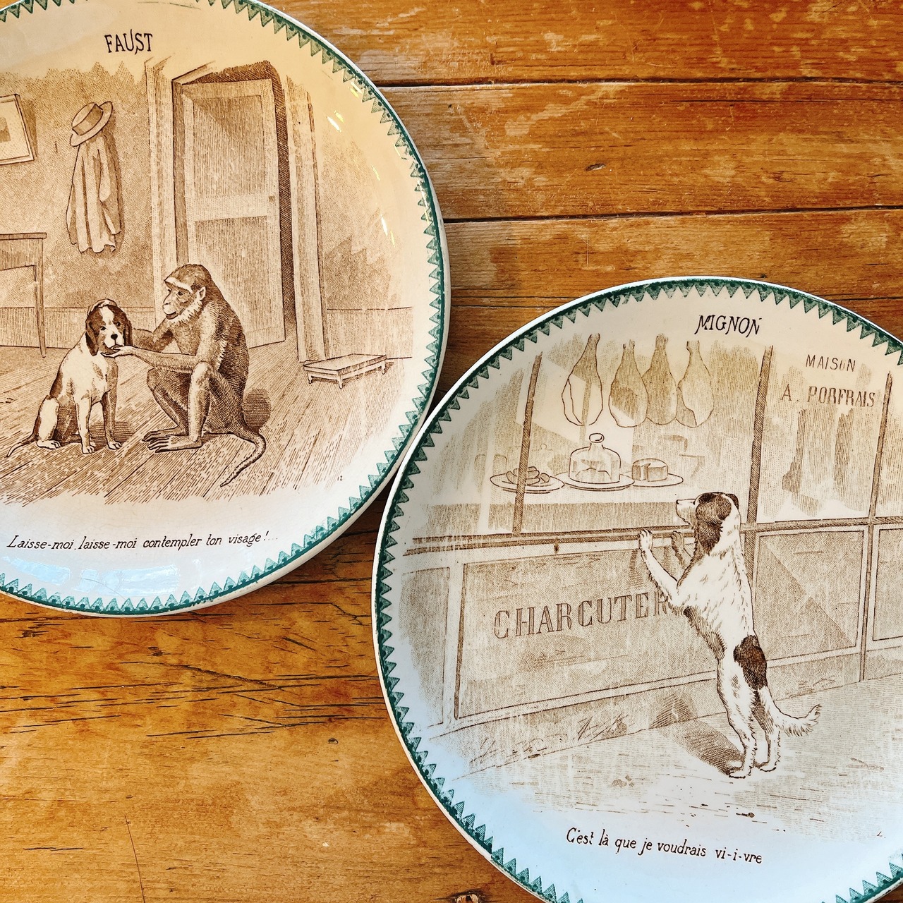 DIGOIN&SARRGUEMINES 肉屋さんを覗いてるワンコのプレート