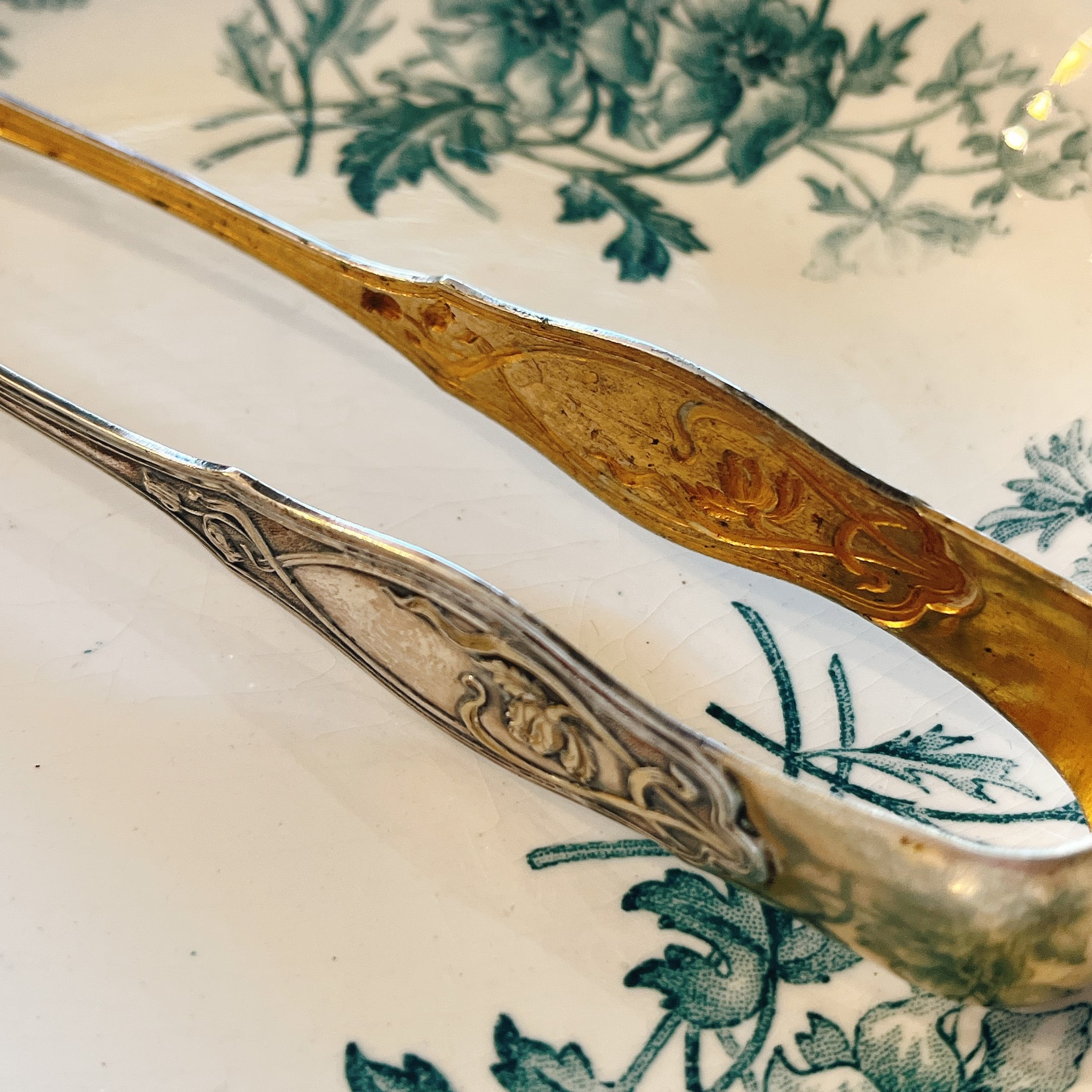 シルバープレートにヴェルメイユ(金メッキ)の珍しいシュガートング。