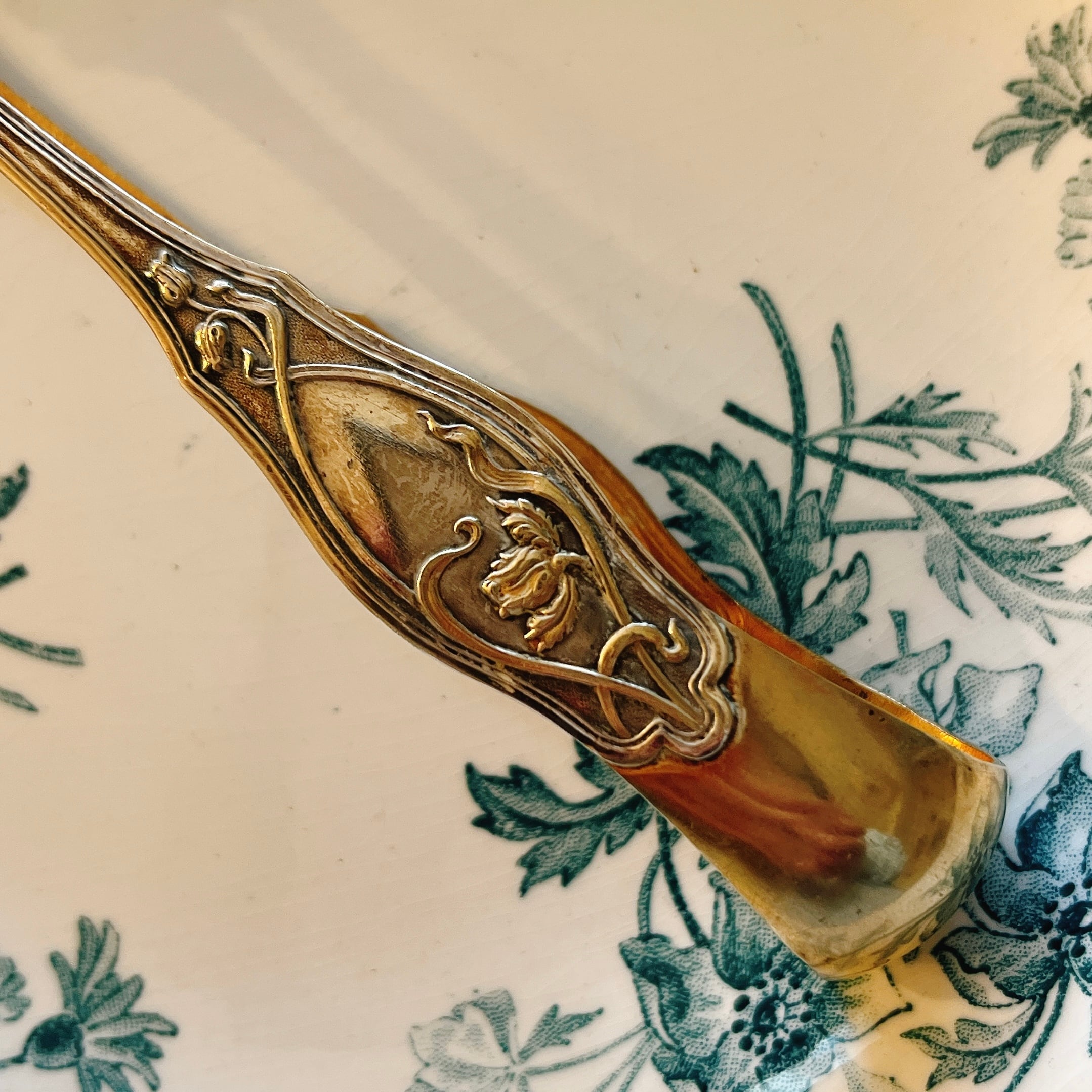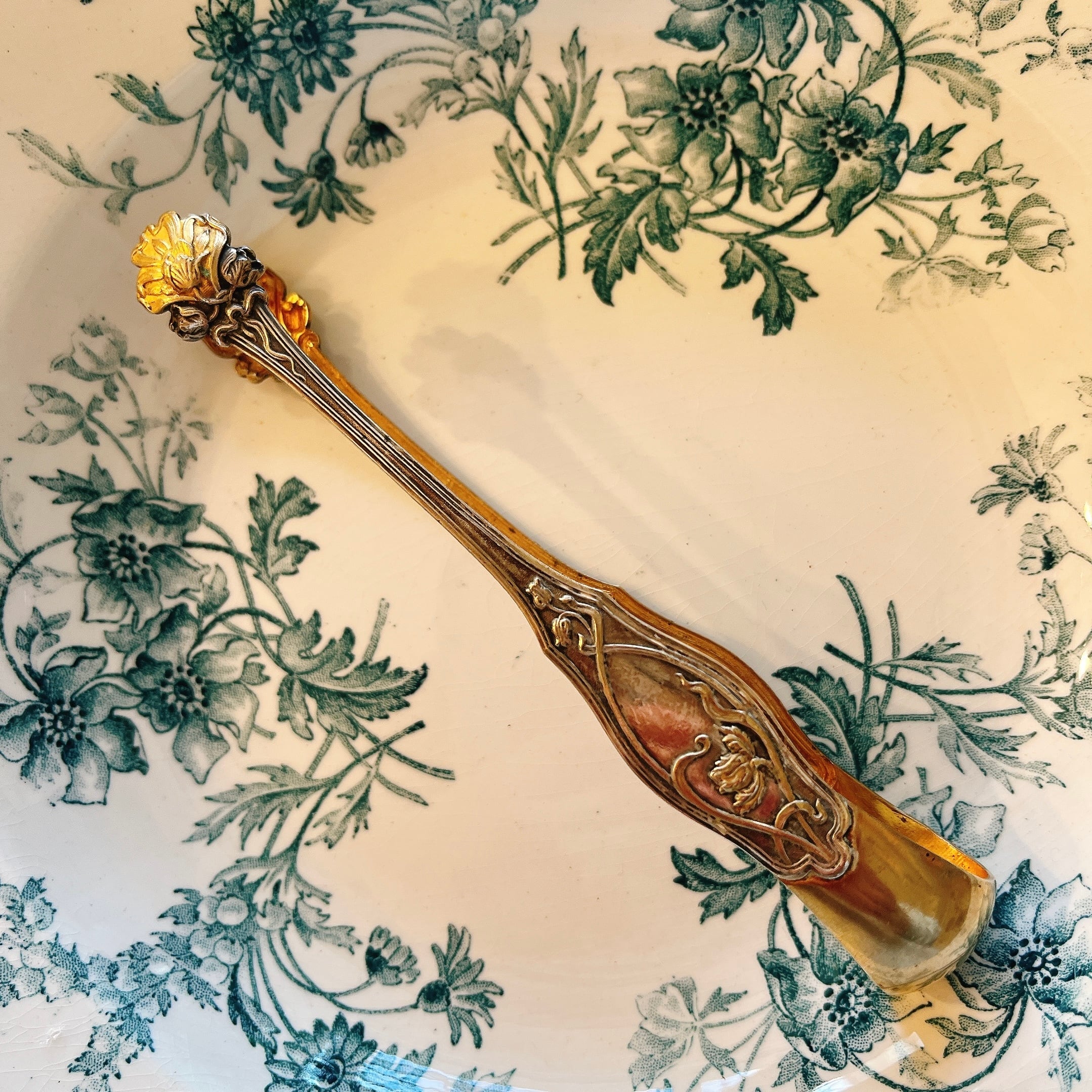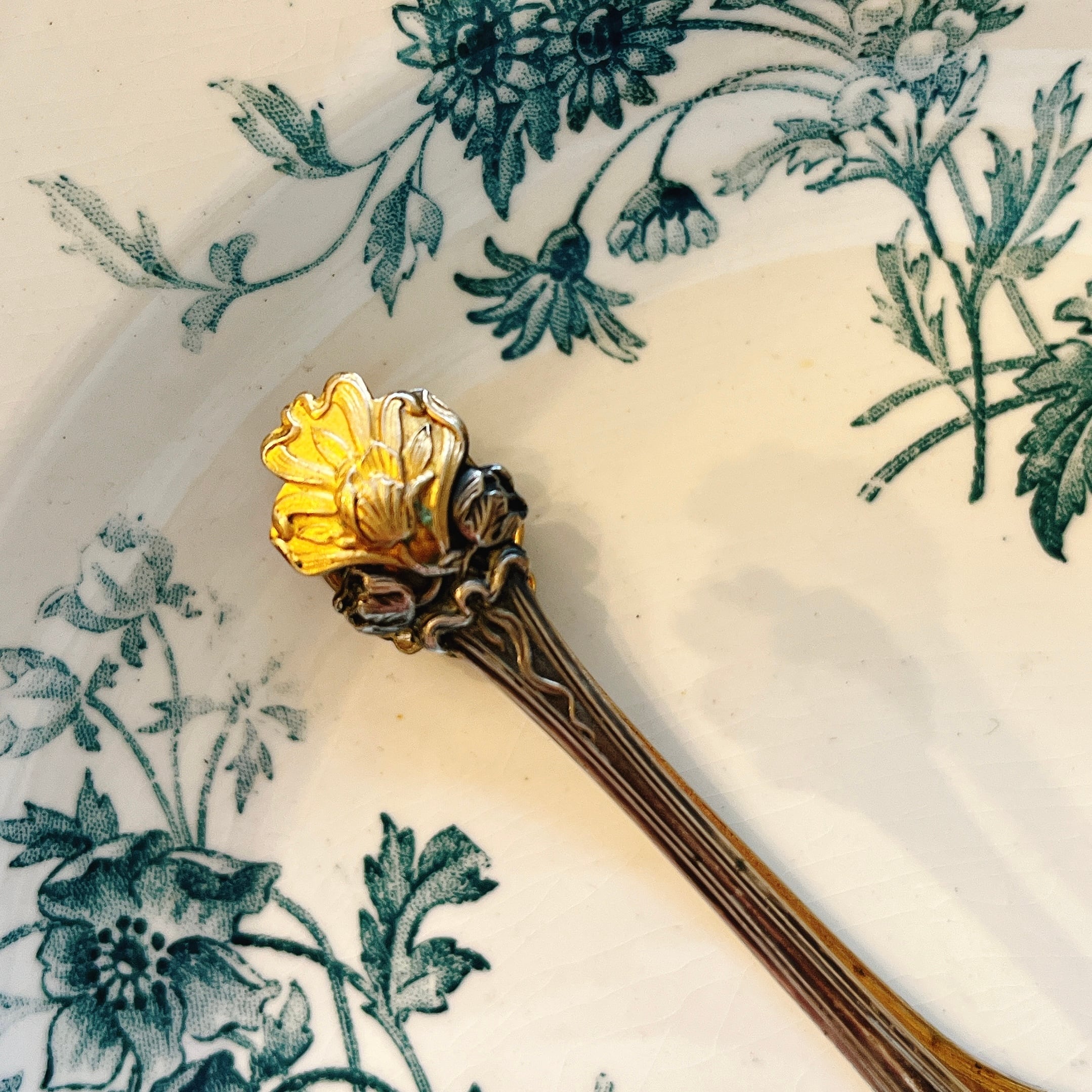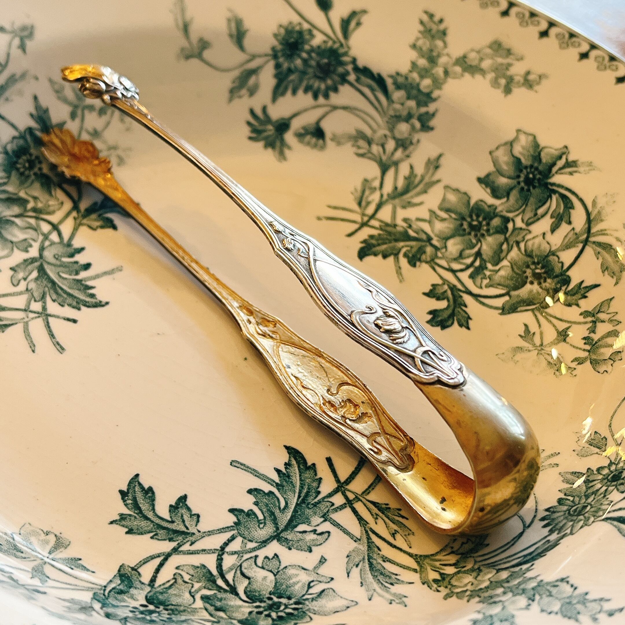 アールヌーボーの花柄が美しく、トングの先と内側のヴェルメイユが本当に素敵です。