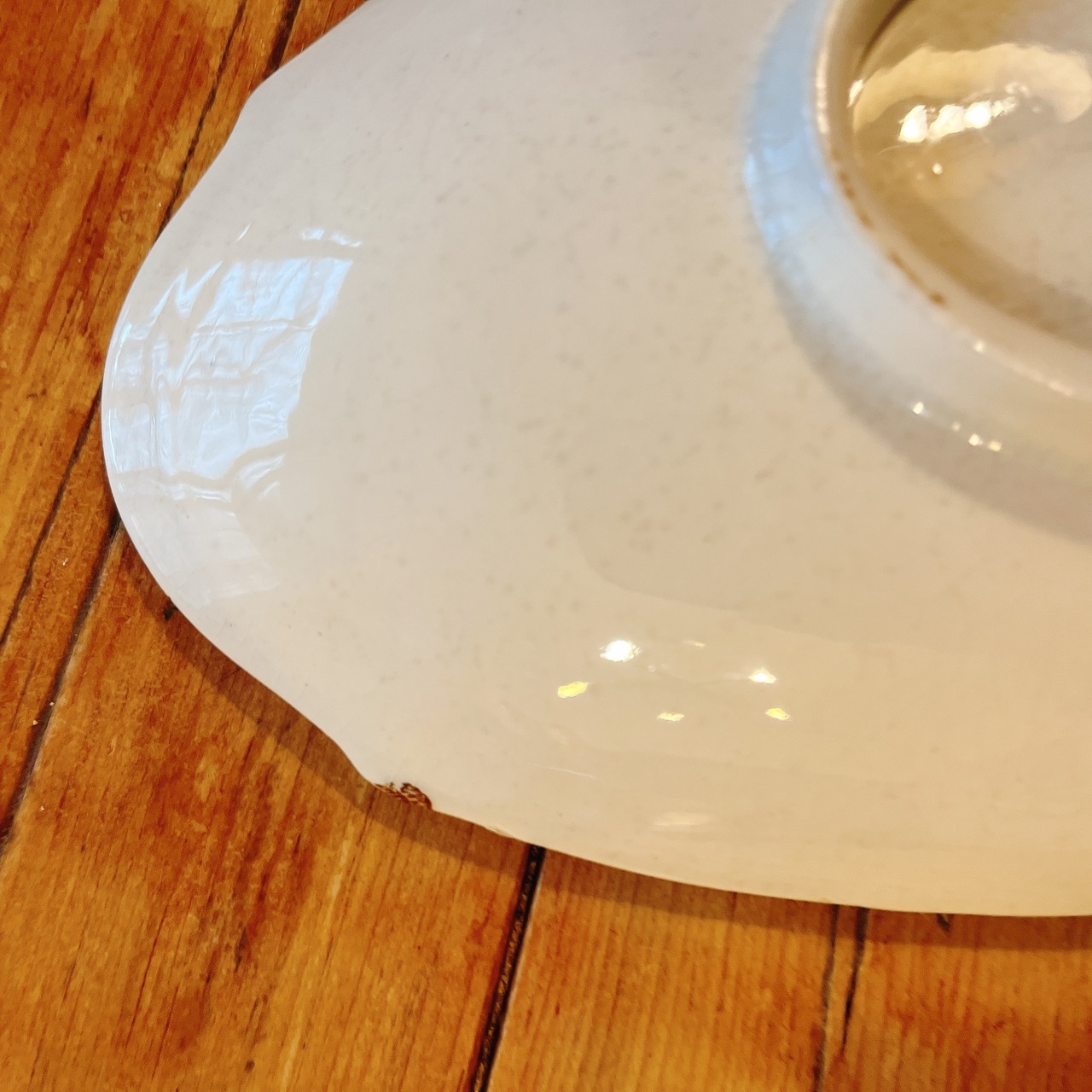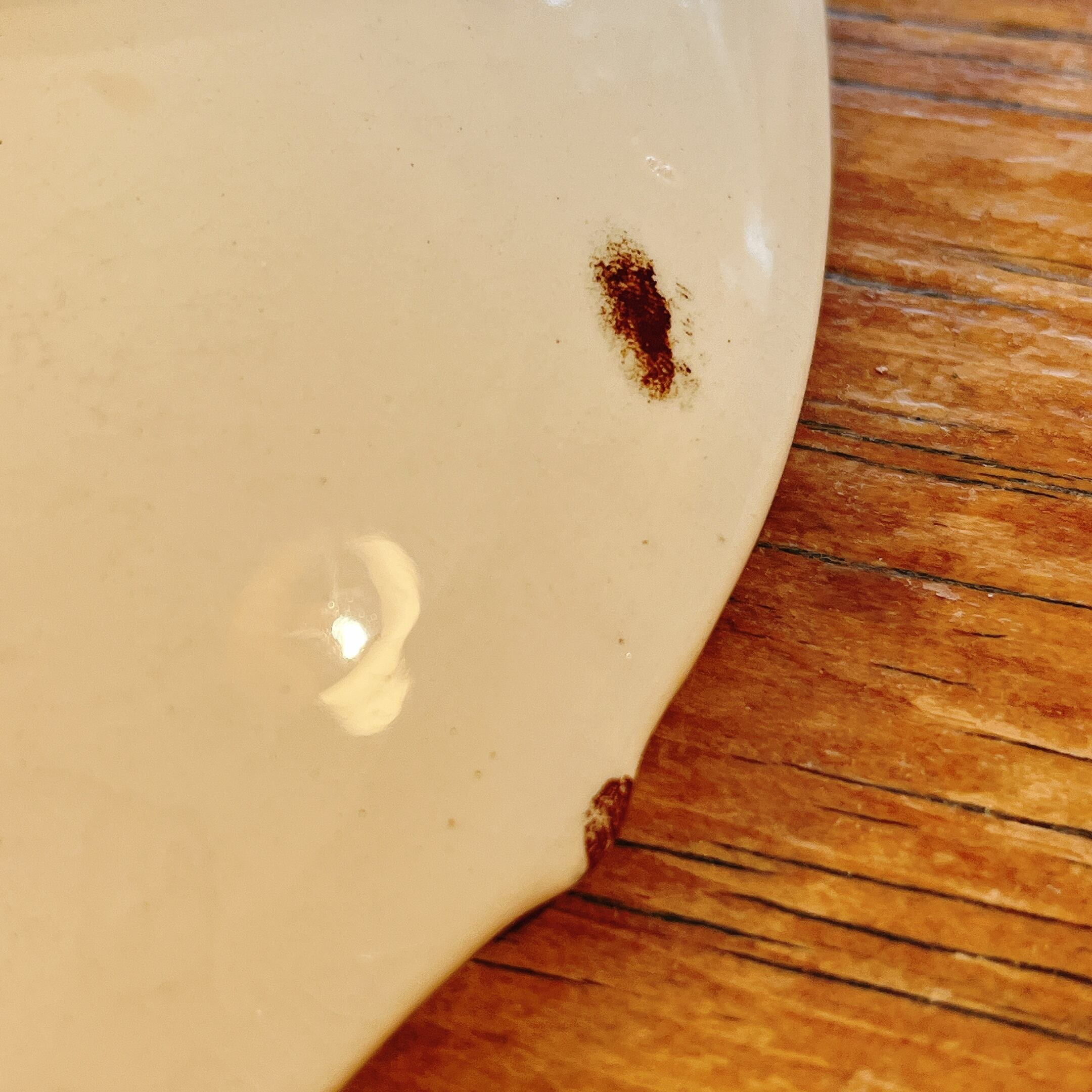 細かい貫入はありますが、ヒビ、欠け無く美品です。裏側やフチにあるのは、欠けでは無く全てインク染みになります。