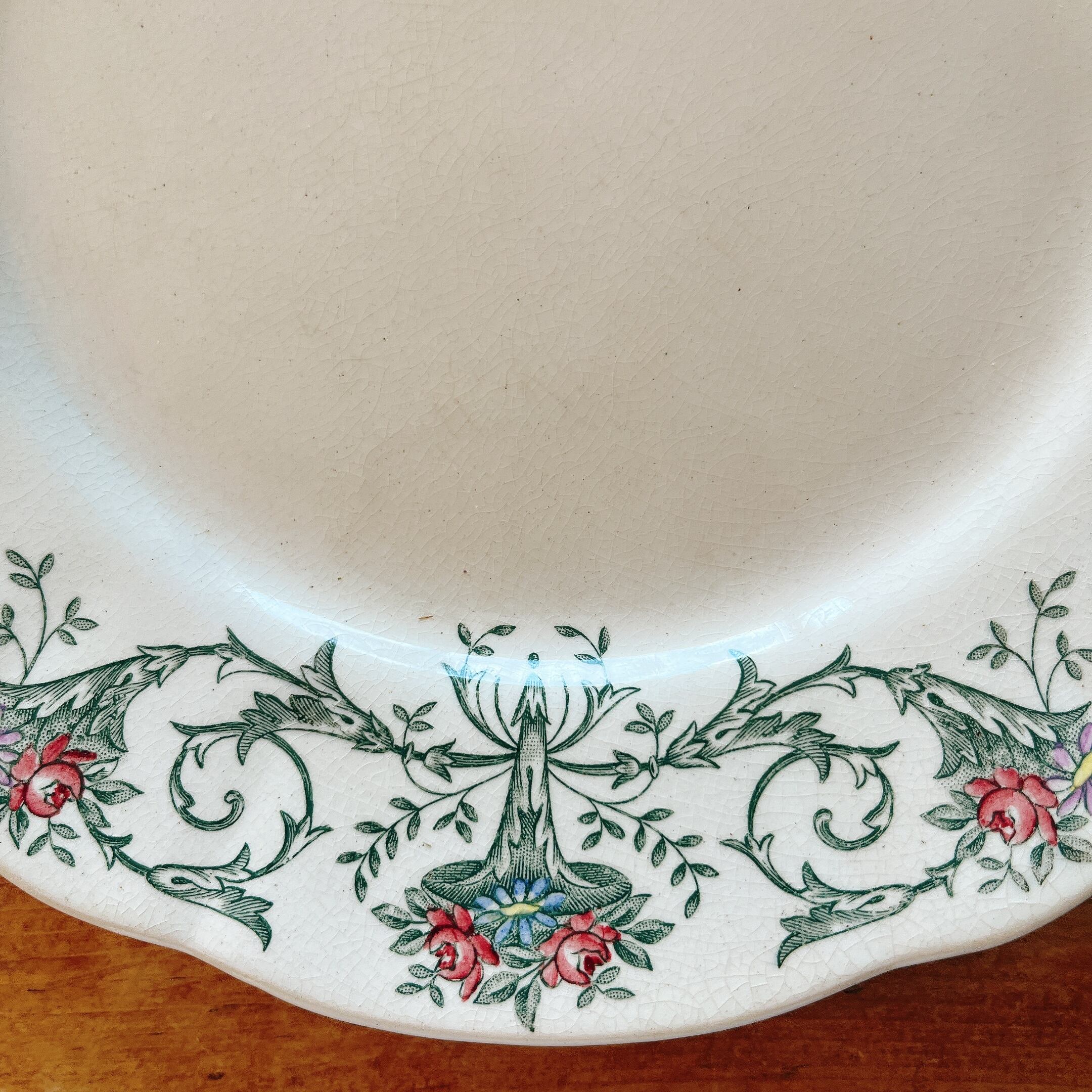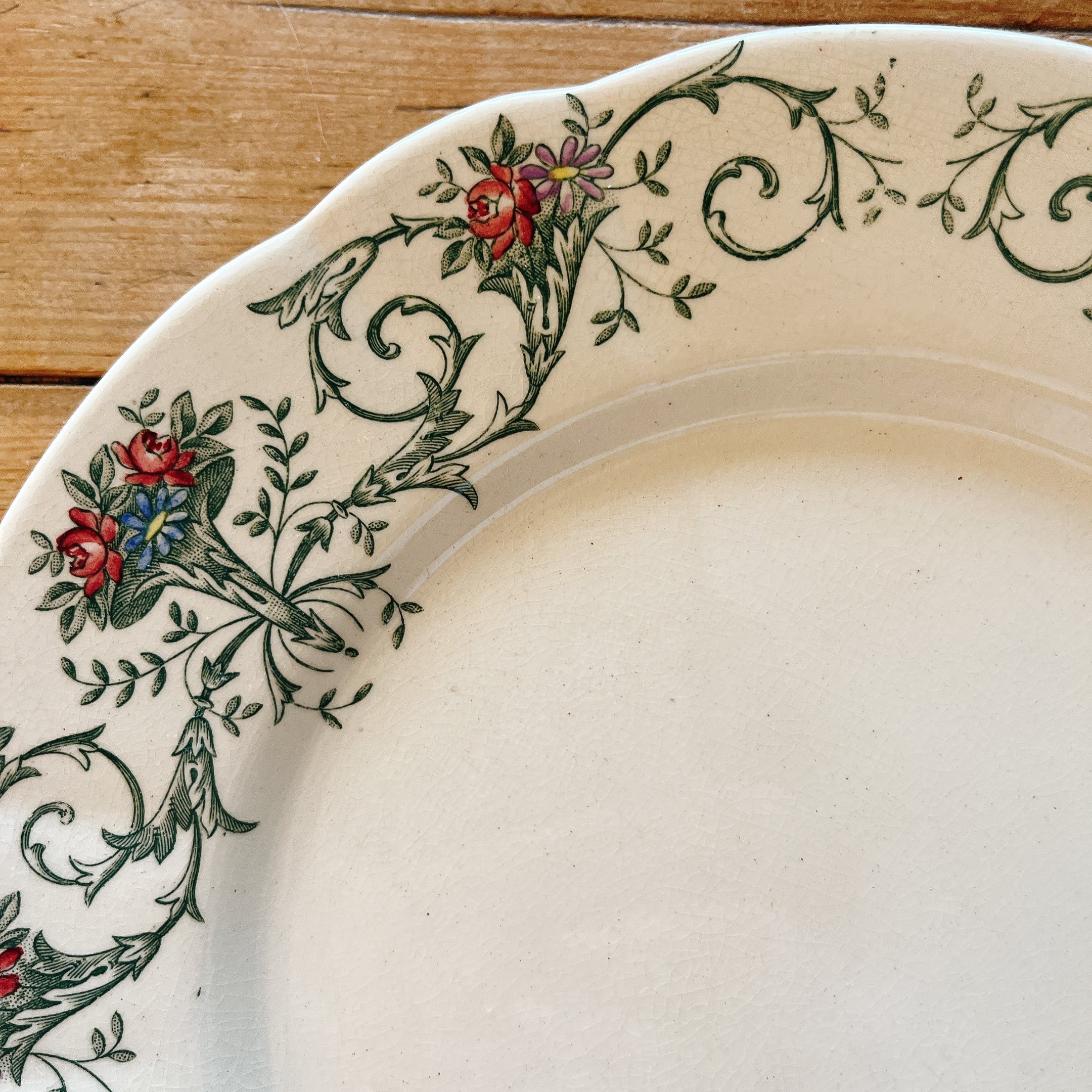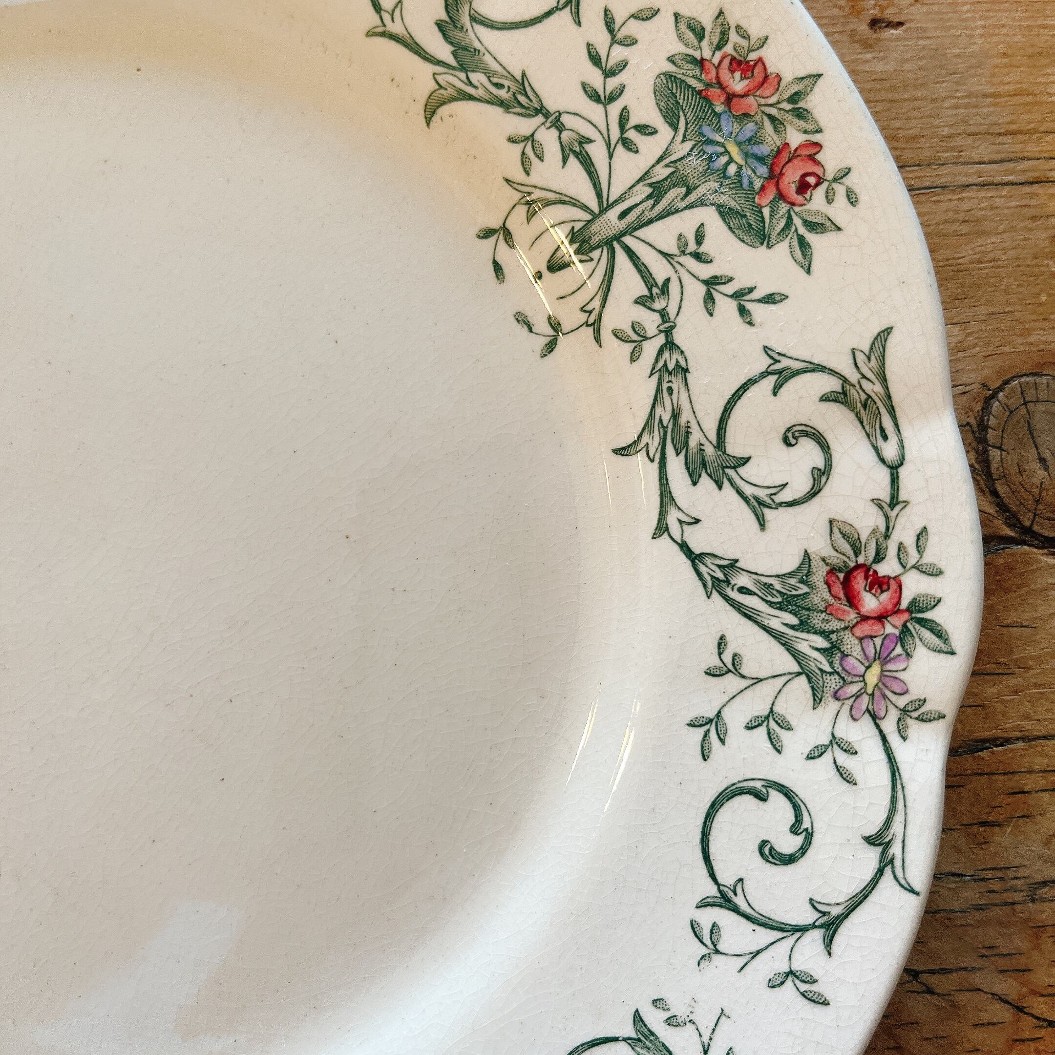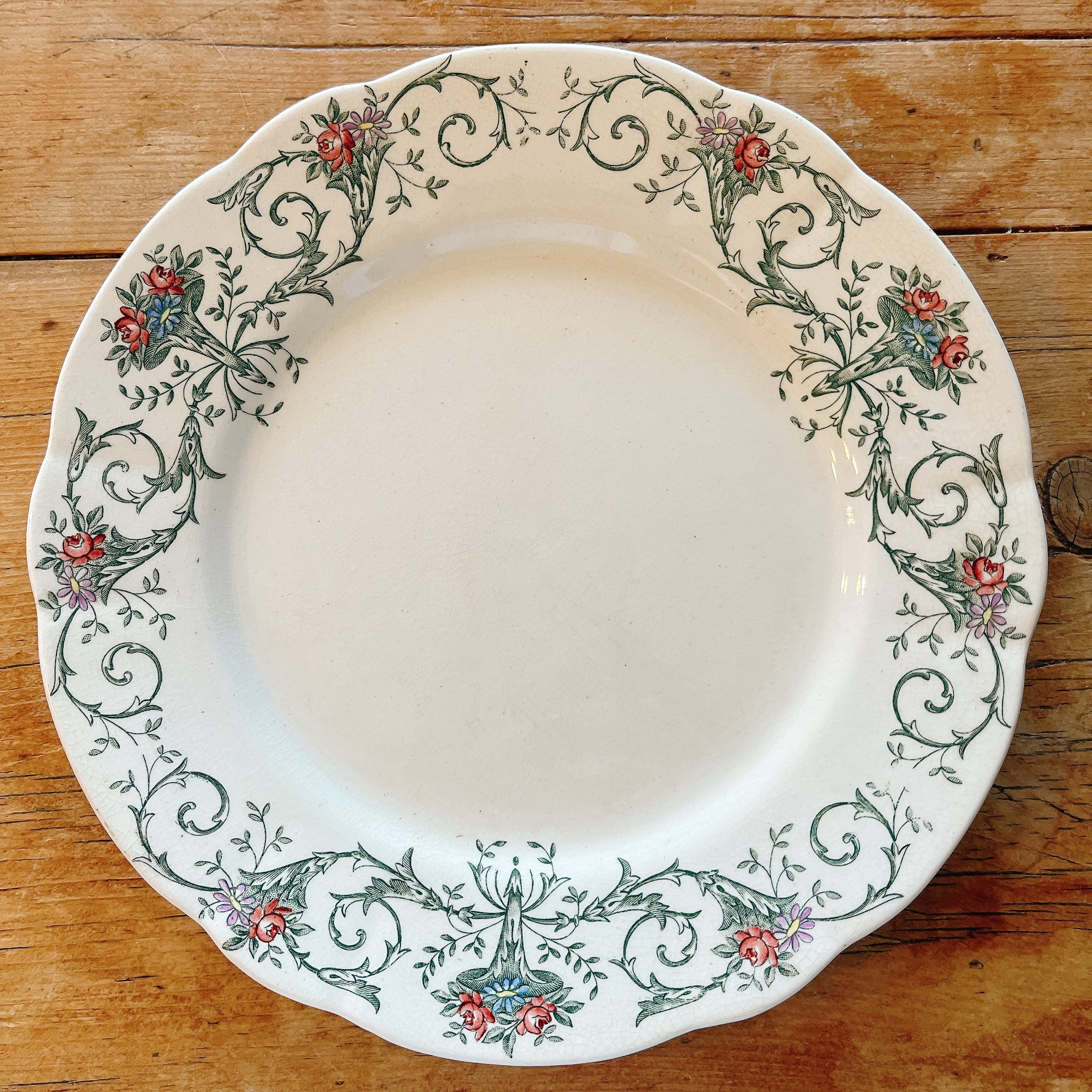 花束モチーフの模様が花リムの様なプレートに描かれた、少し小ぶりの可愛いディナープレートです。
