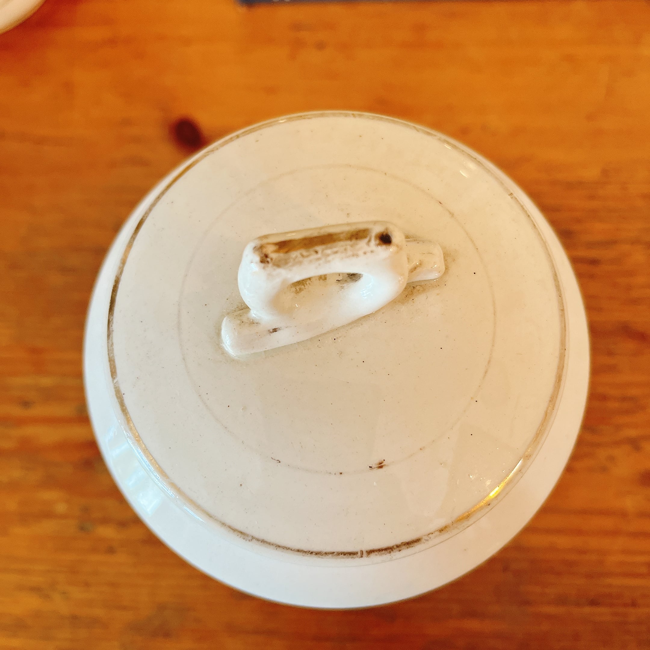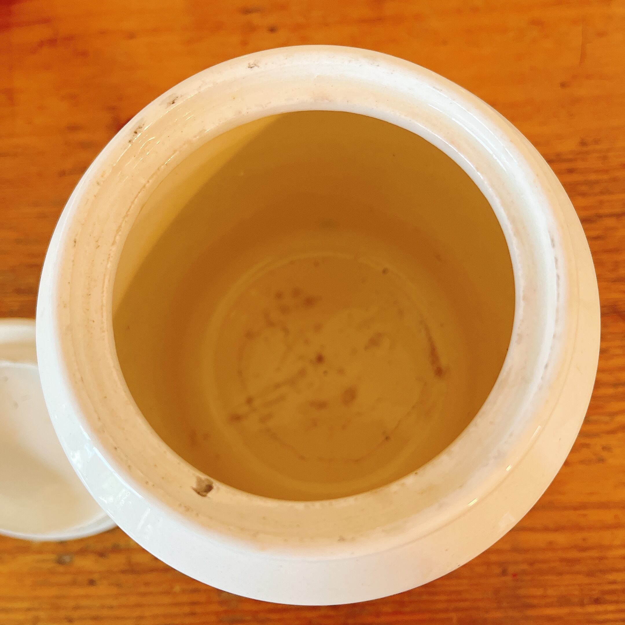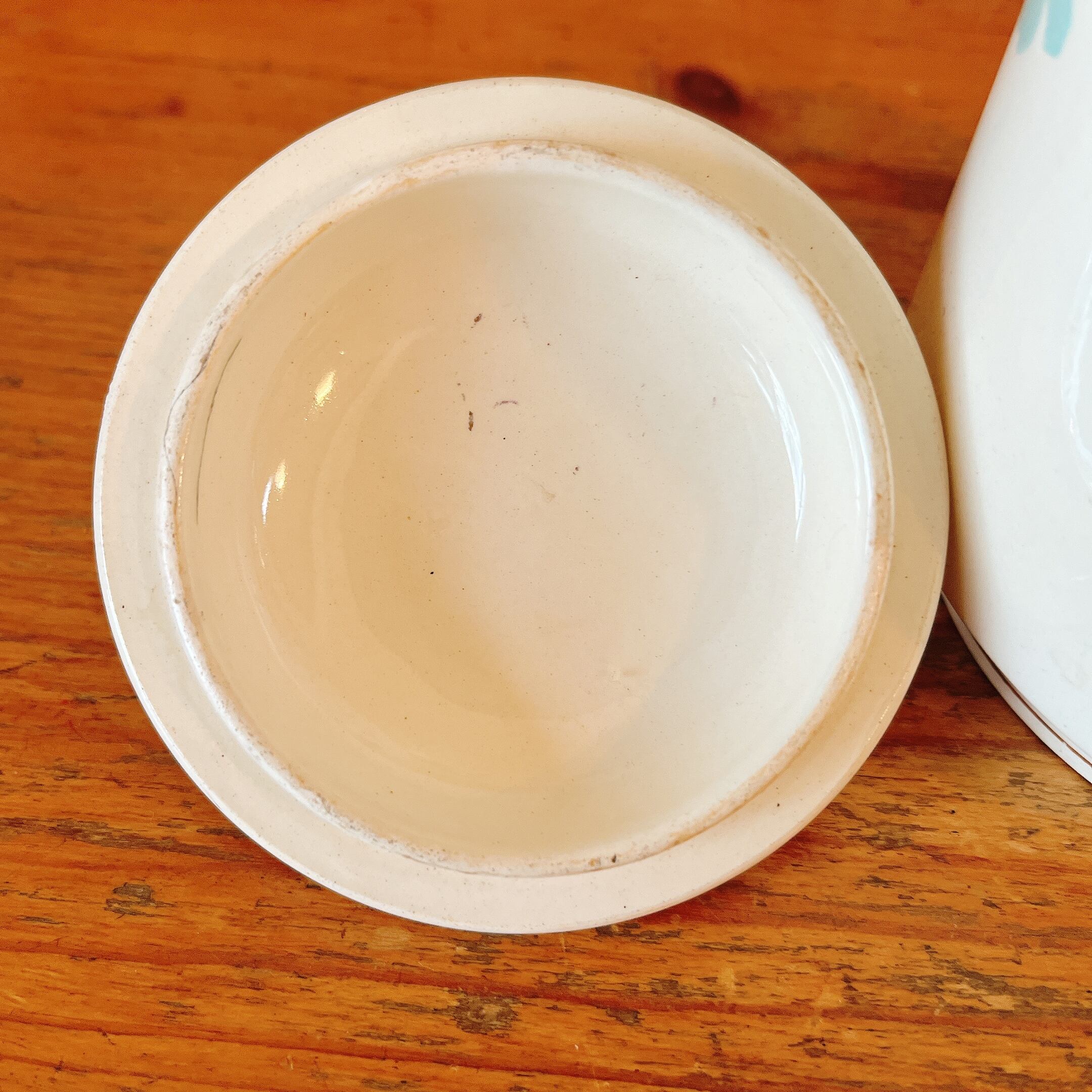 フタを開けた口のフチに小さいチップがありますが、あとは貫入、ヒビ、欠け無くキレイだと思います。
