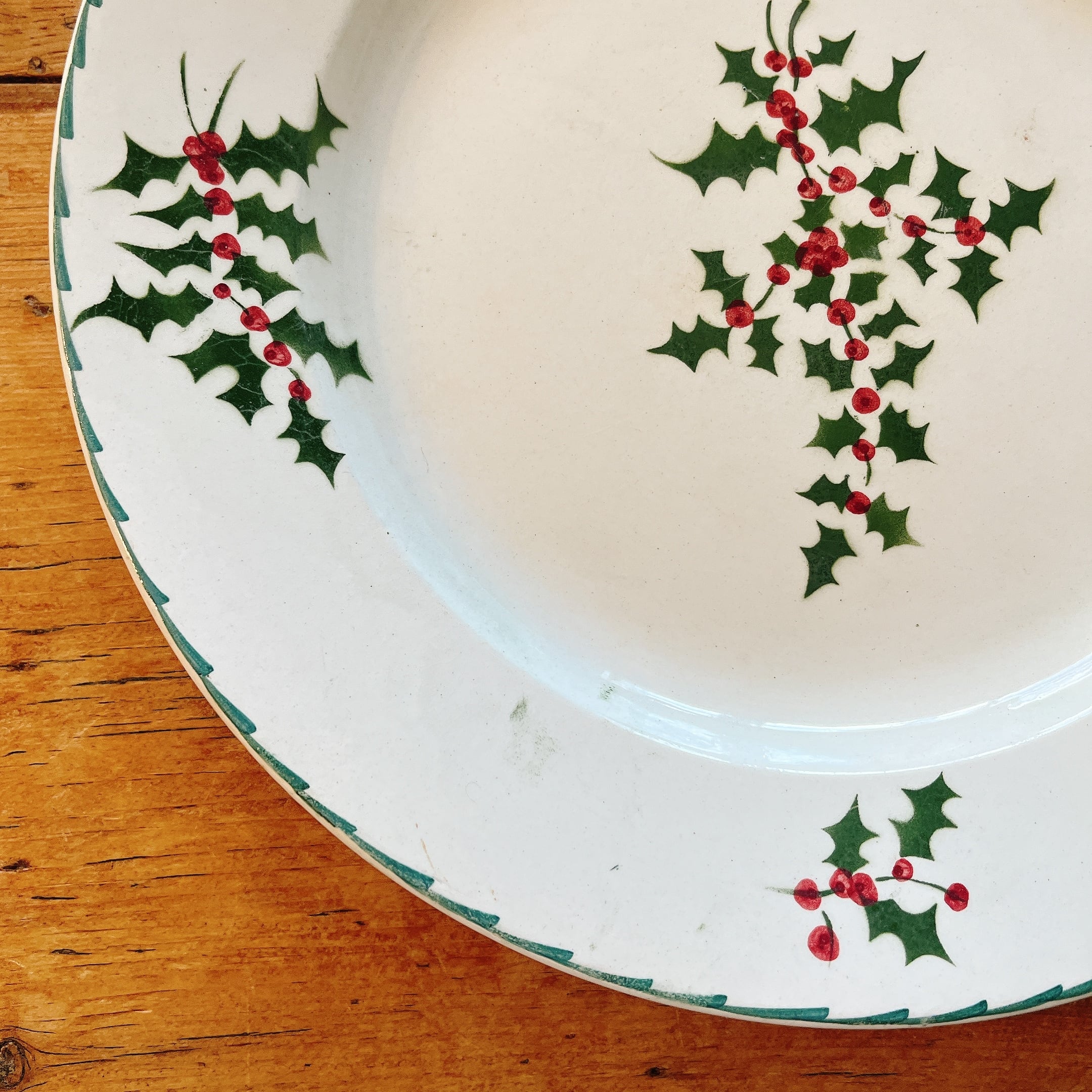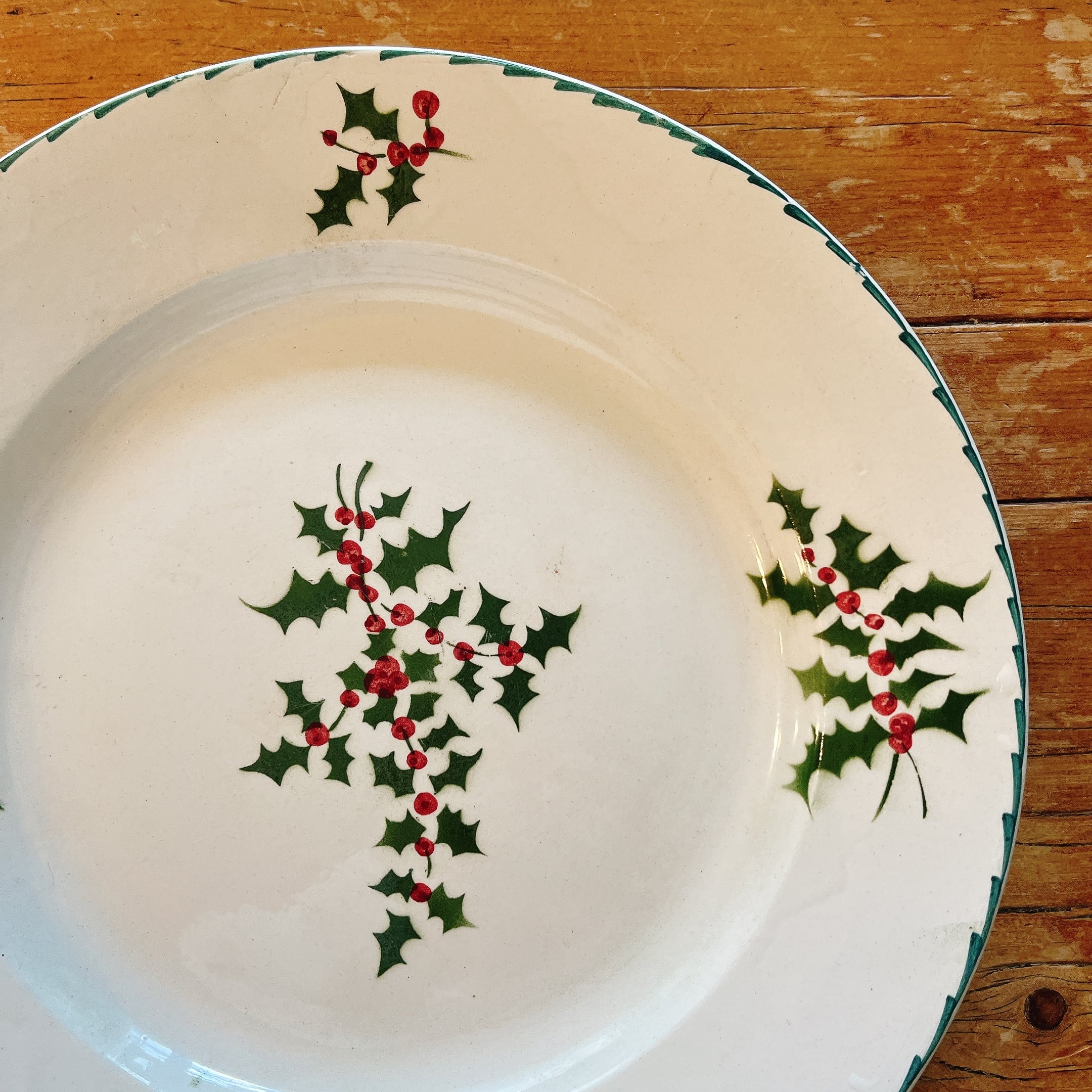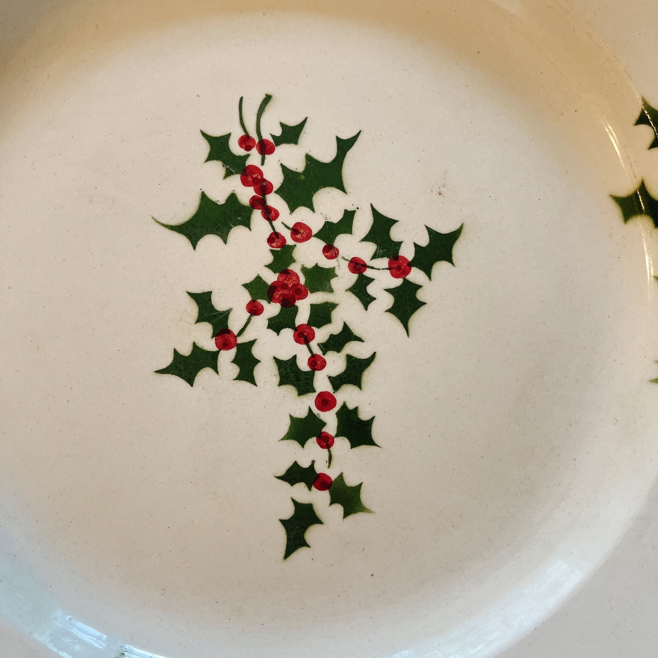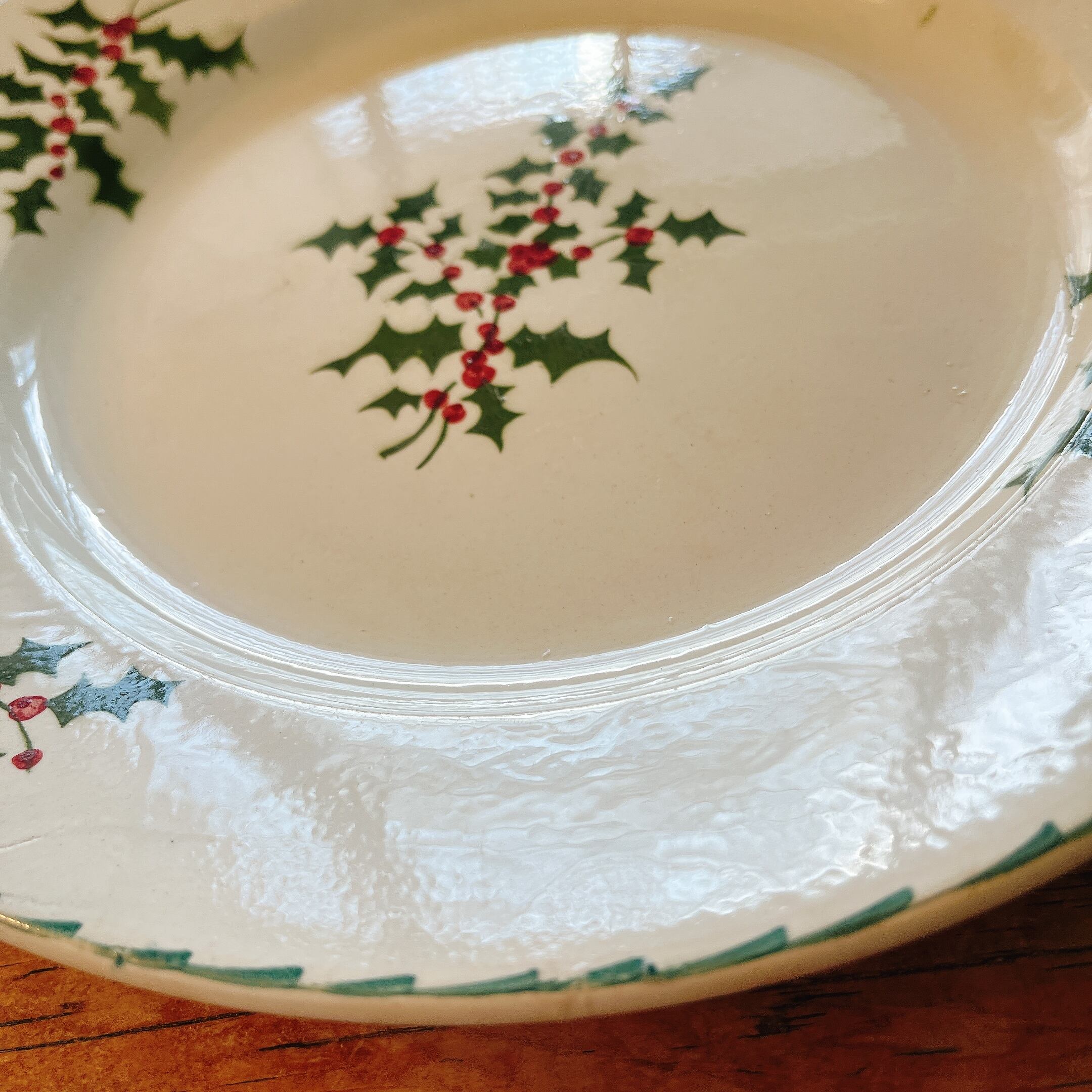 可愛い実付きの柊が描かれた、大きめサイズのクリスマスプレート。