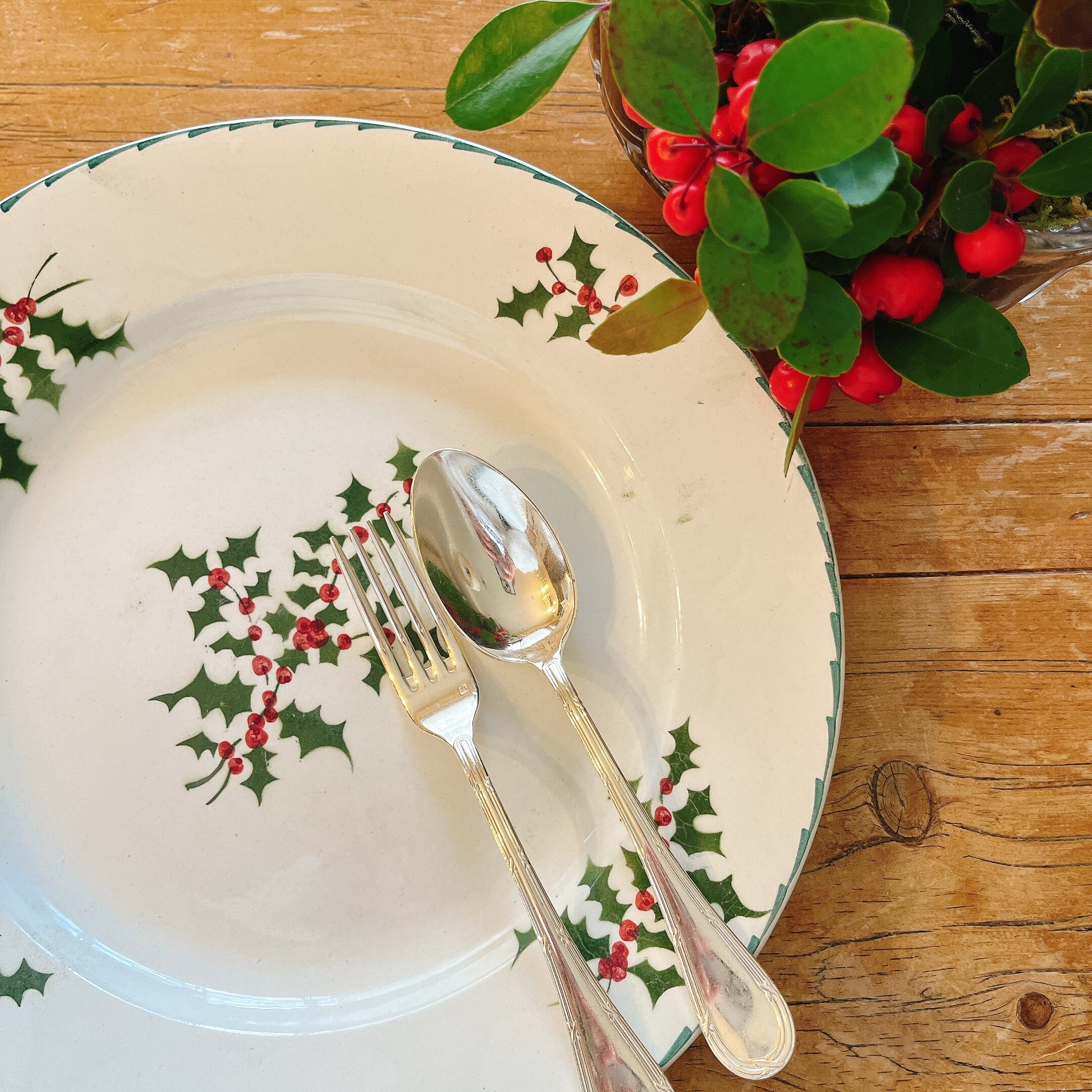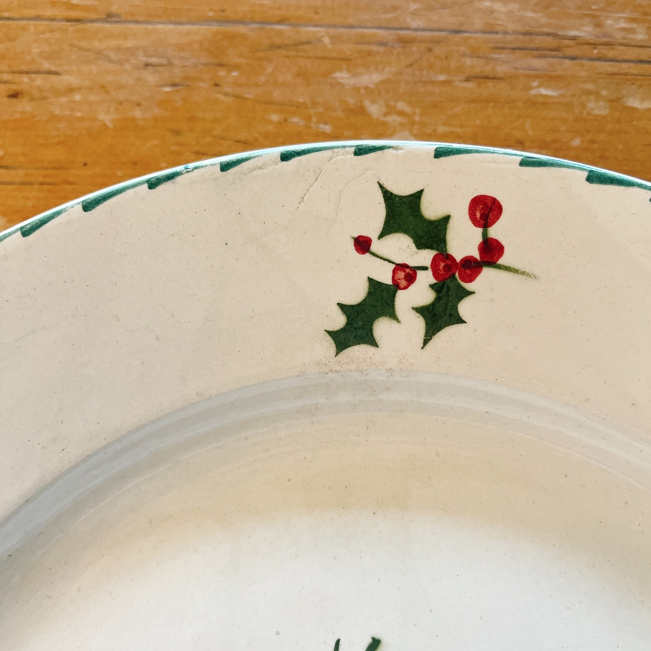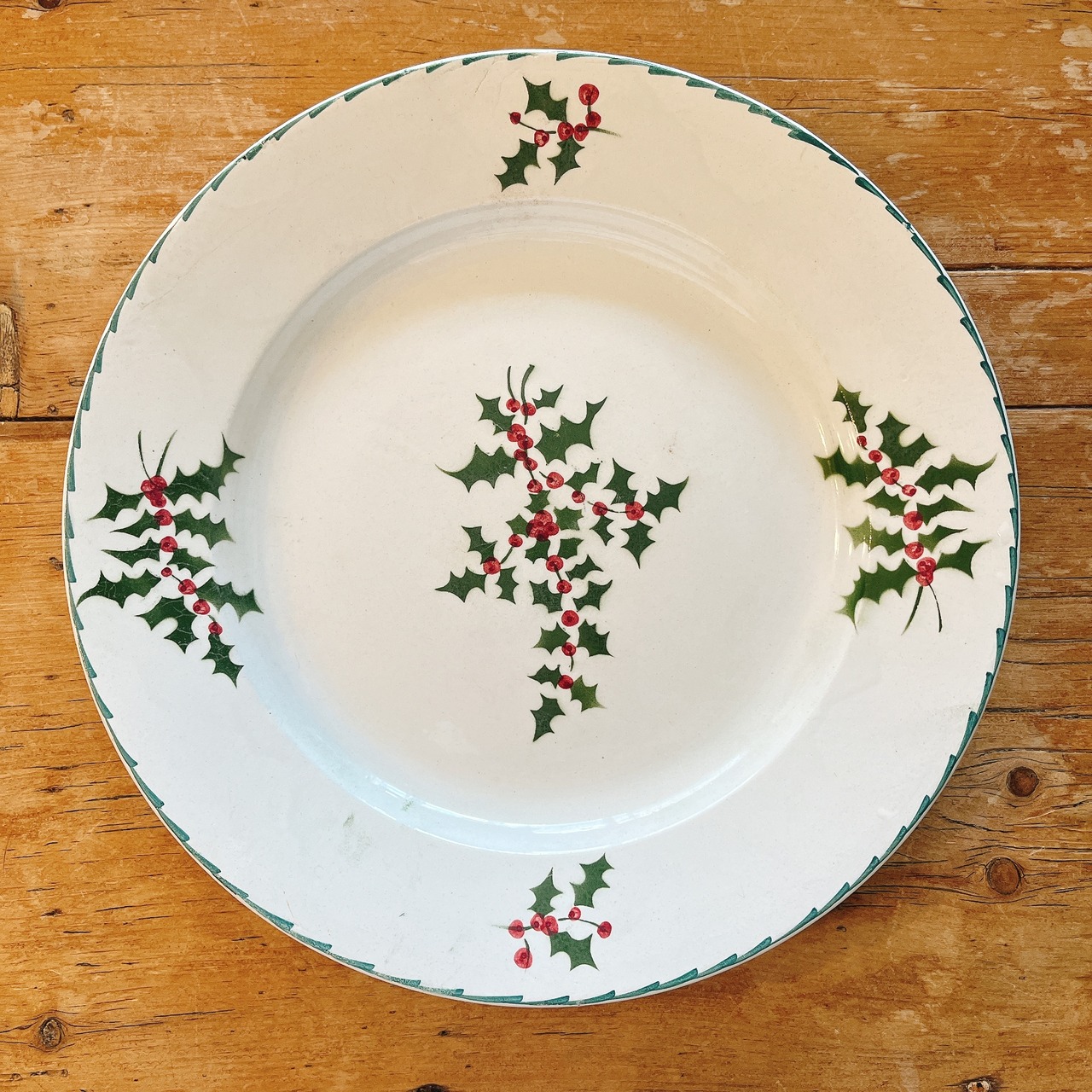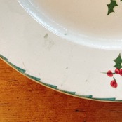 可愛い実付きの柊が描かれた、大きめサイズのクリスマスプレート。