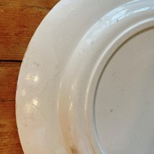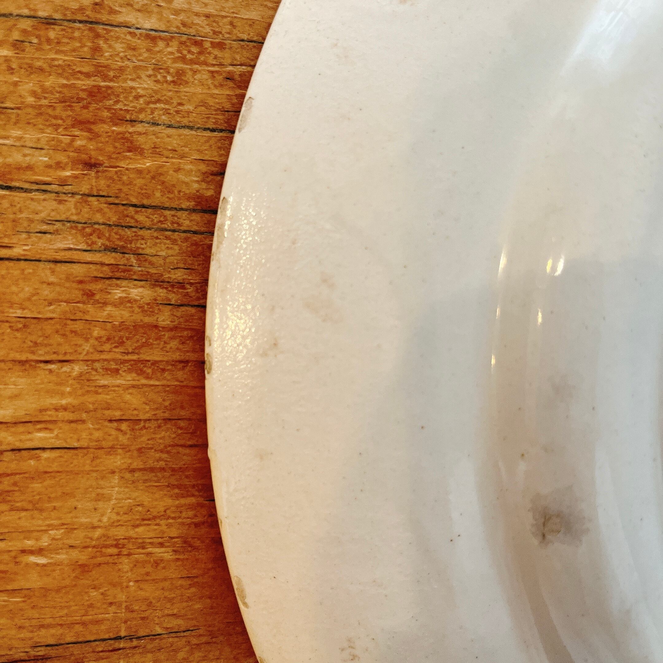 釉薬のムラや剥げ、インク染みなどありますが、ヒビ、欠けはありません。