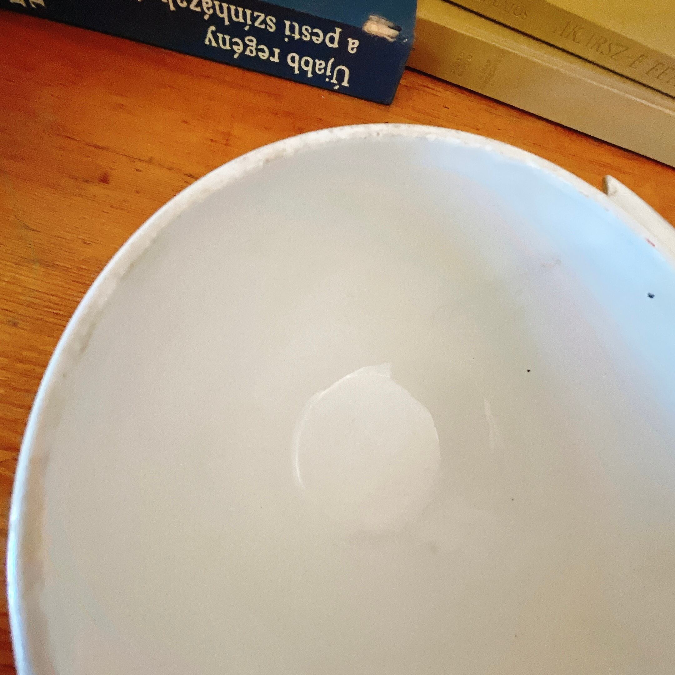 こちらは独特な雰囲気のある美しいカフェオレボウルです。美しいレリーフのある持ち手は、まるで小さなスーピエールのようです。
