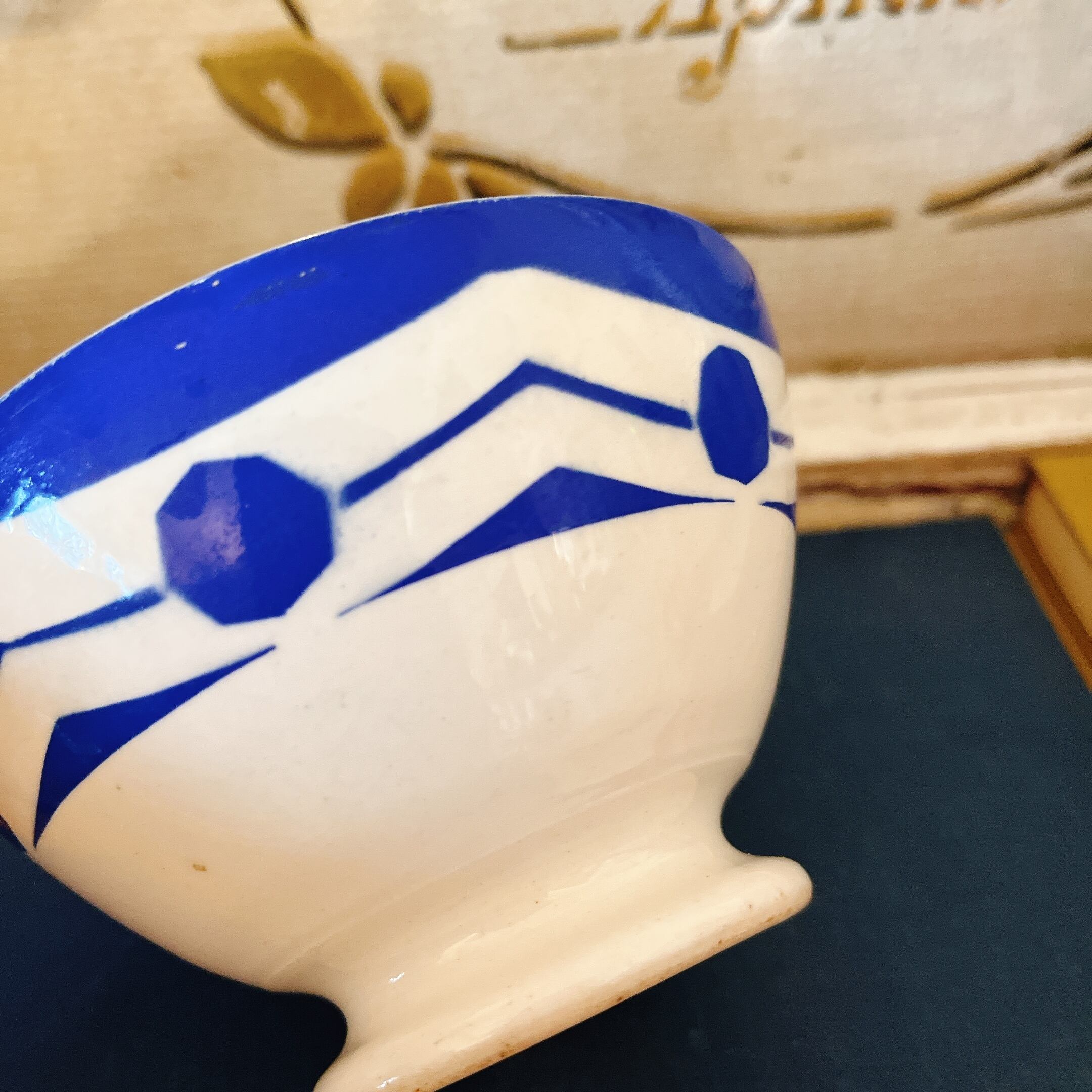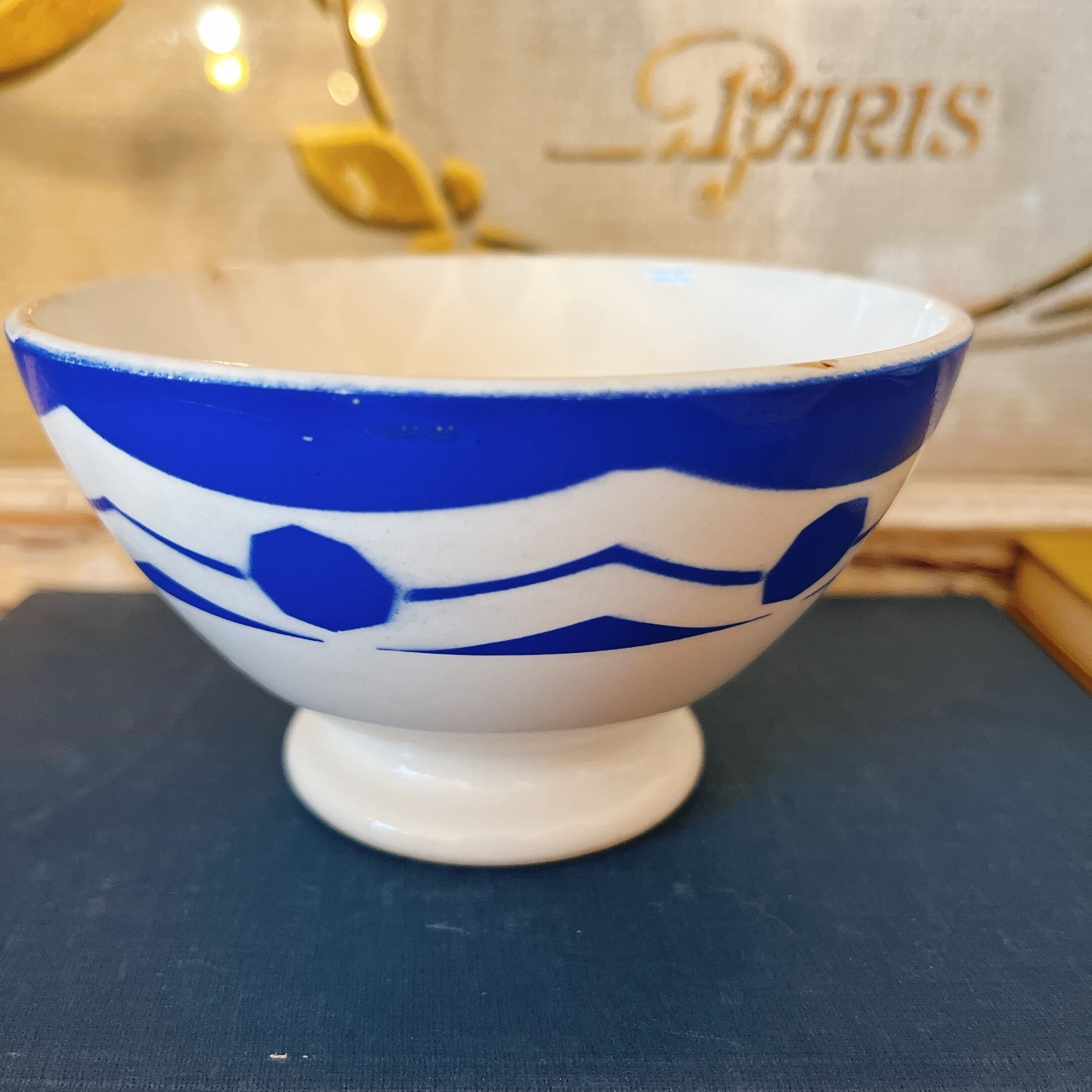白地にブルーのシンプルな模様が可愛いカフェオレボウル。
