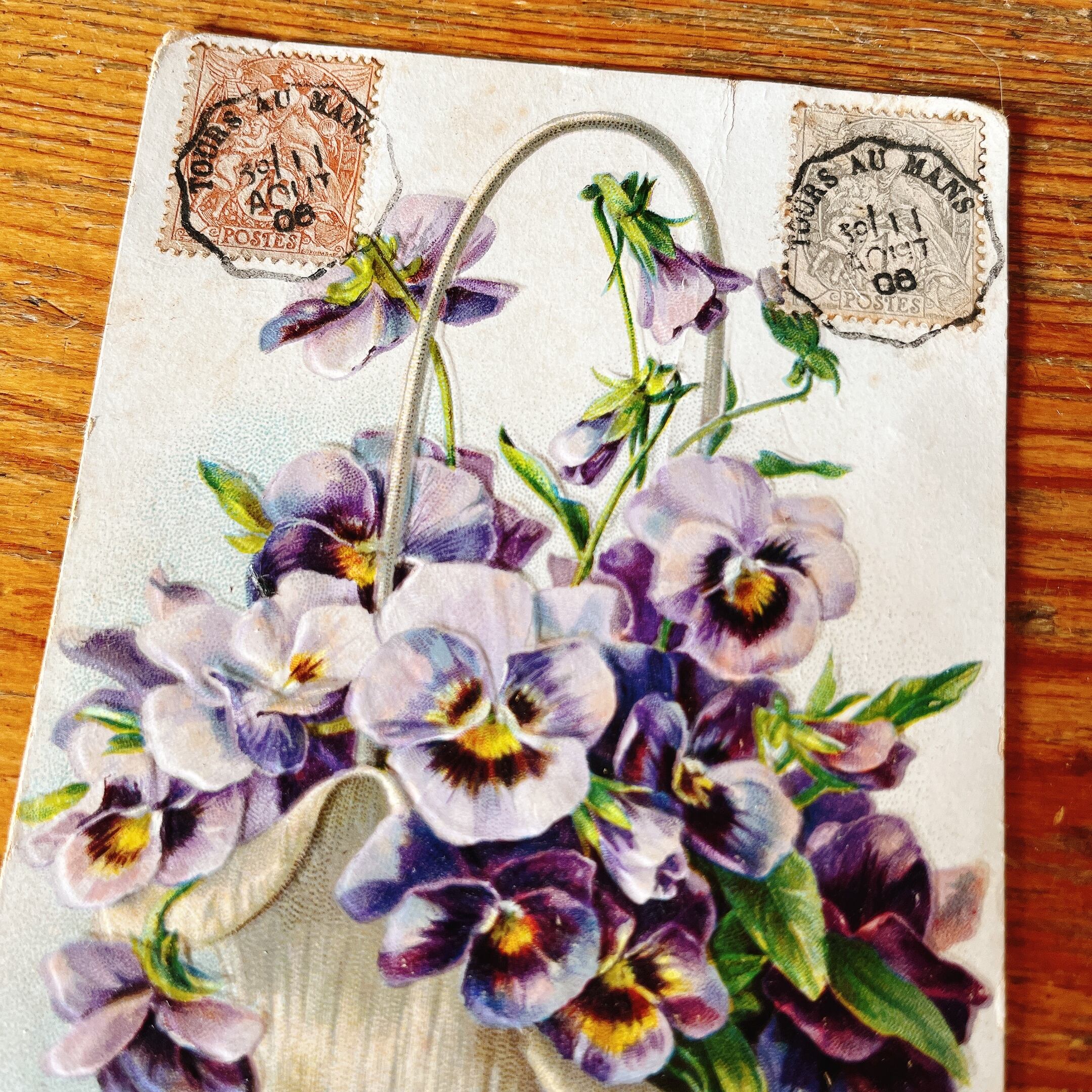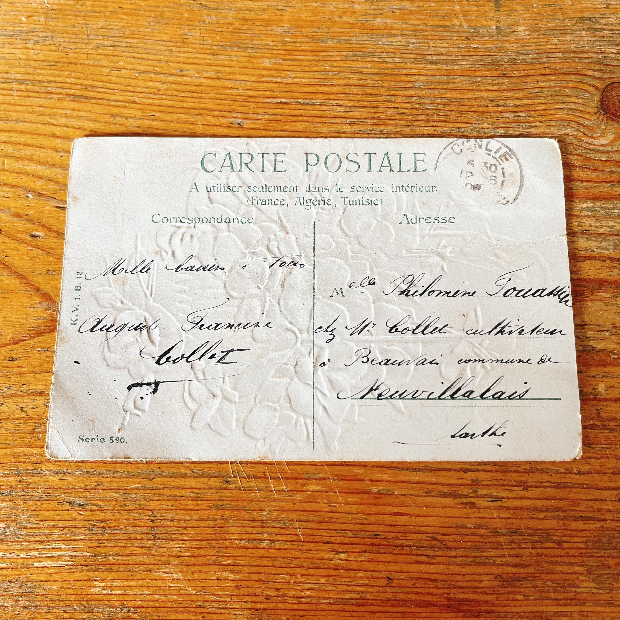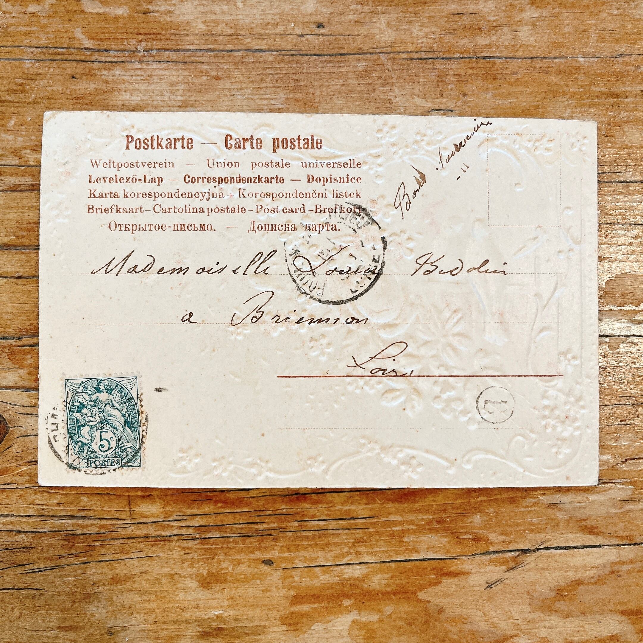 エンボス加工の模様やラメ砂が施された、何とも素敵なポストカードです。