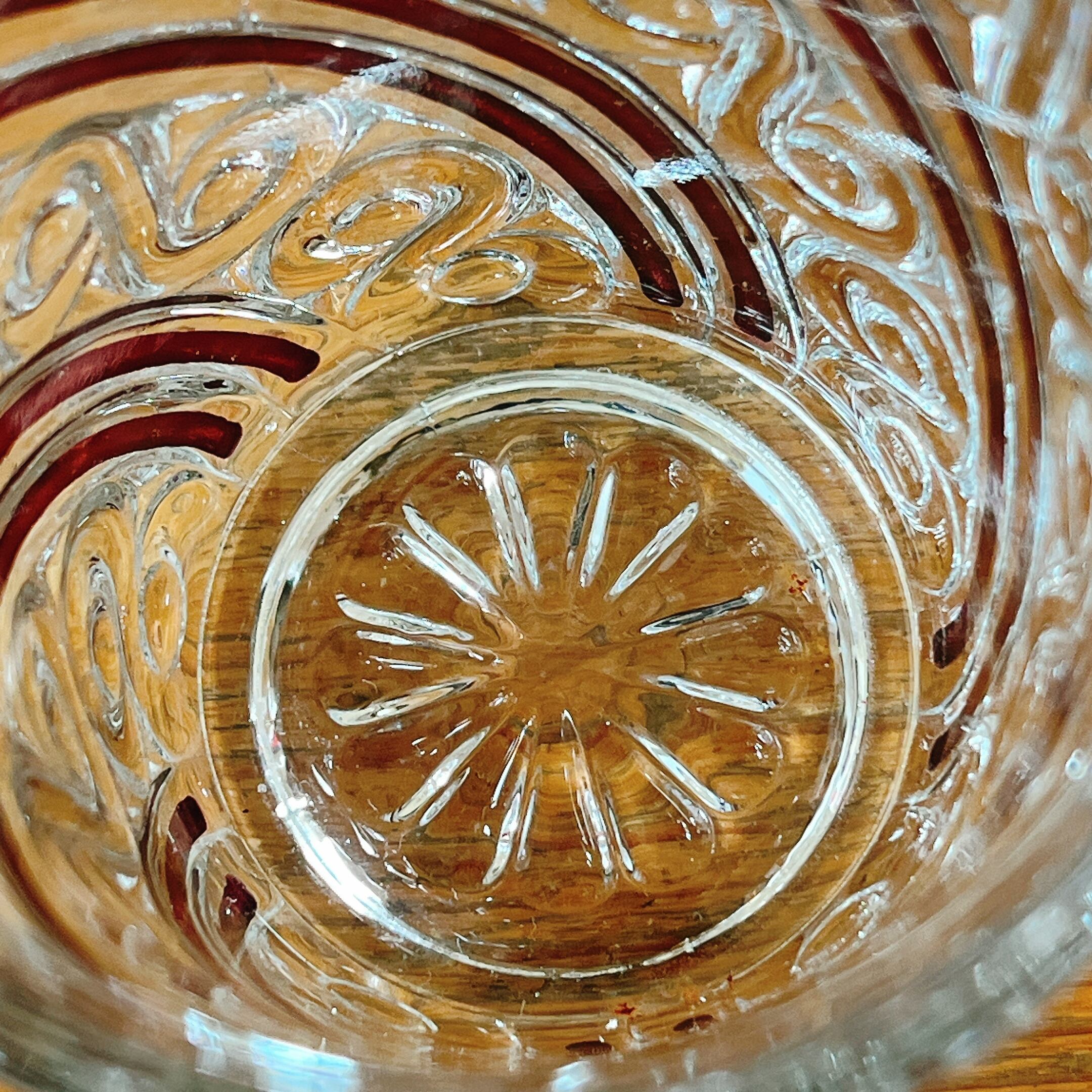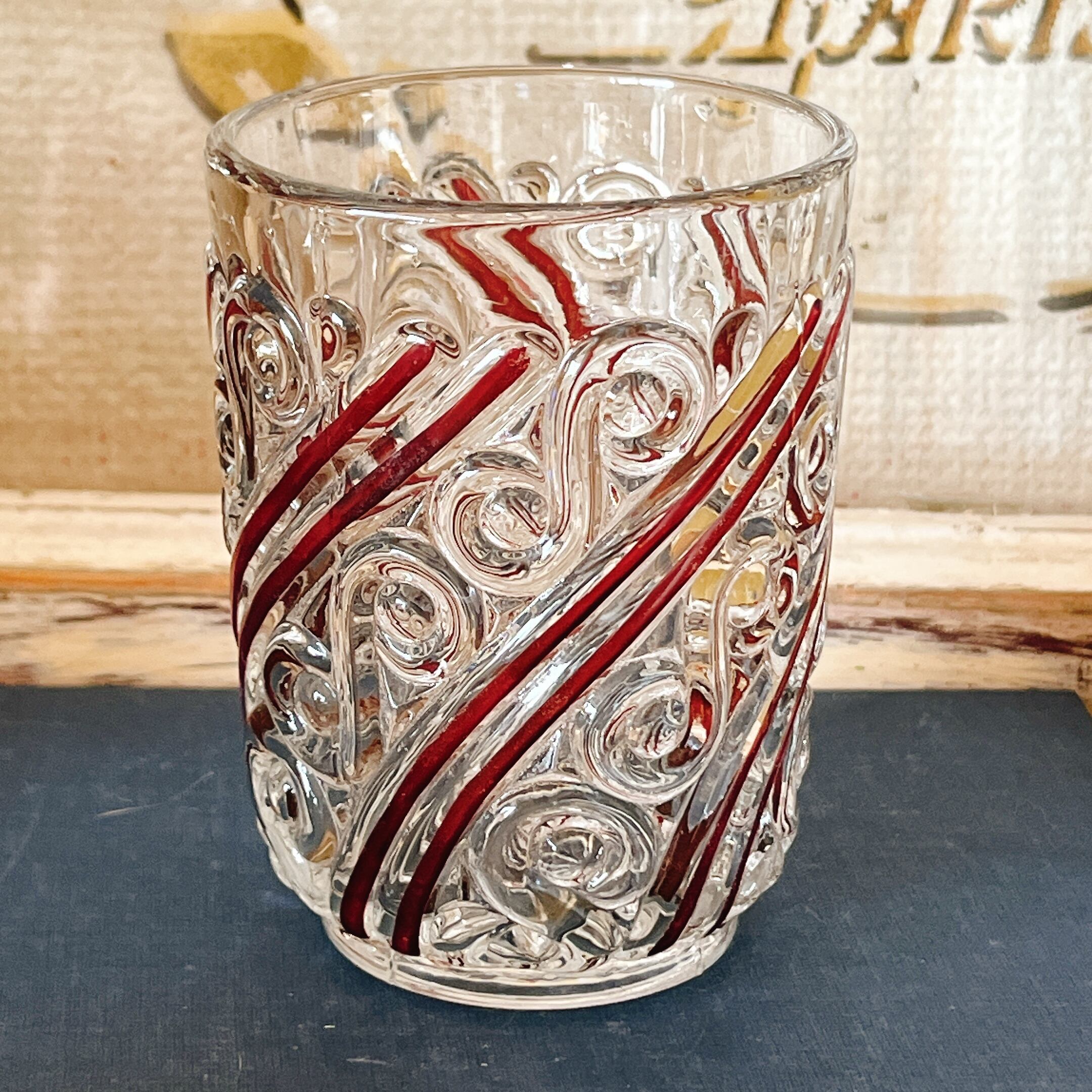 こちらは、厚みのあるガラスに赤い色彩と美しい模様が入った、素敵なカップです。
