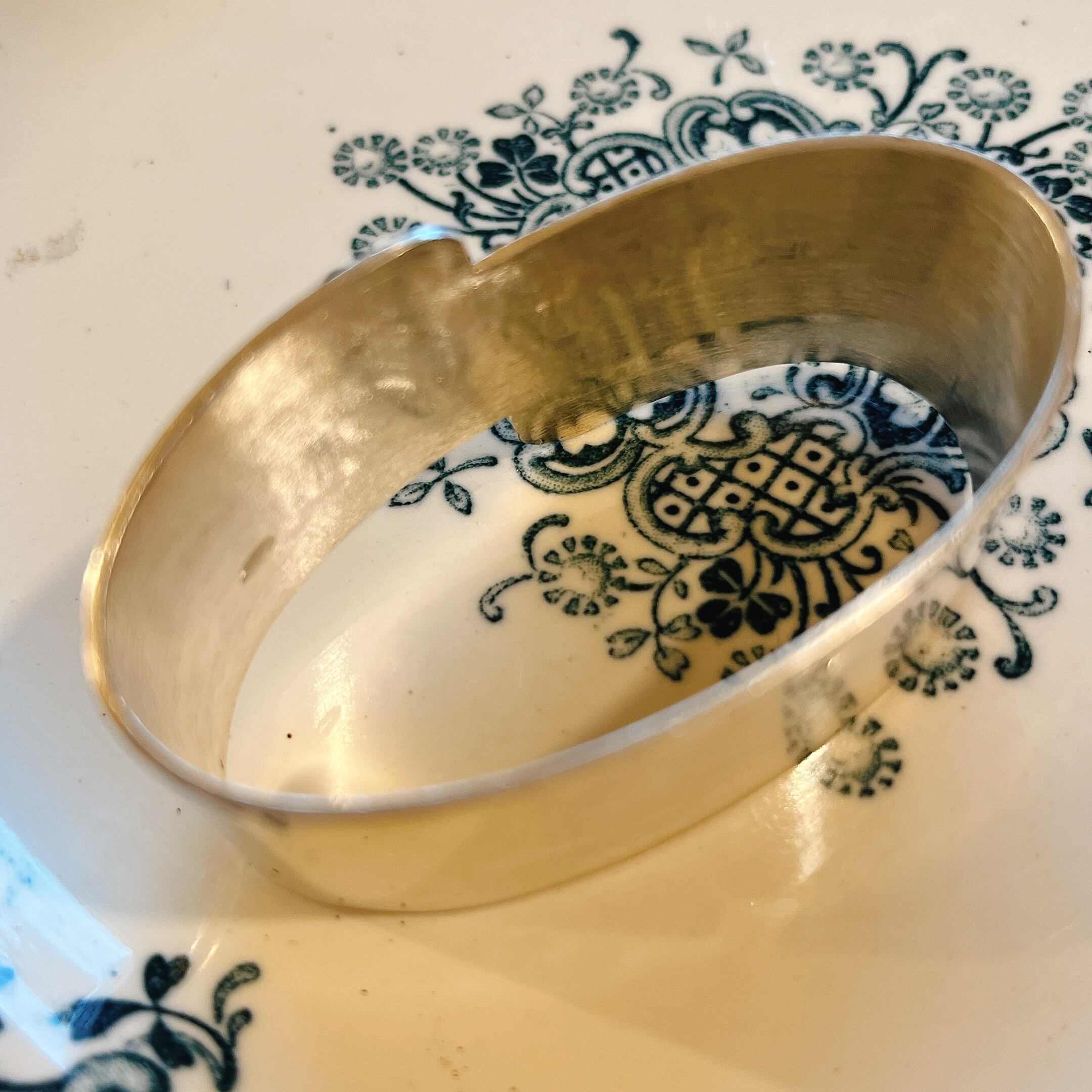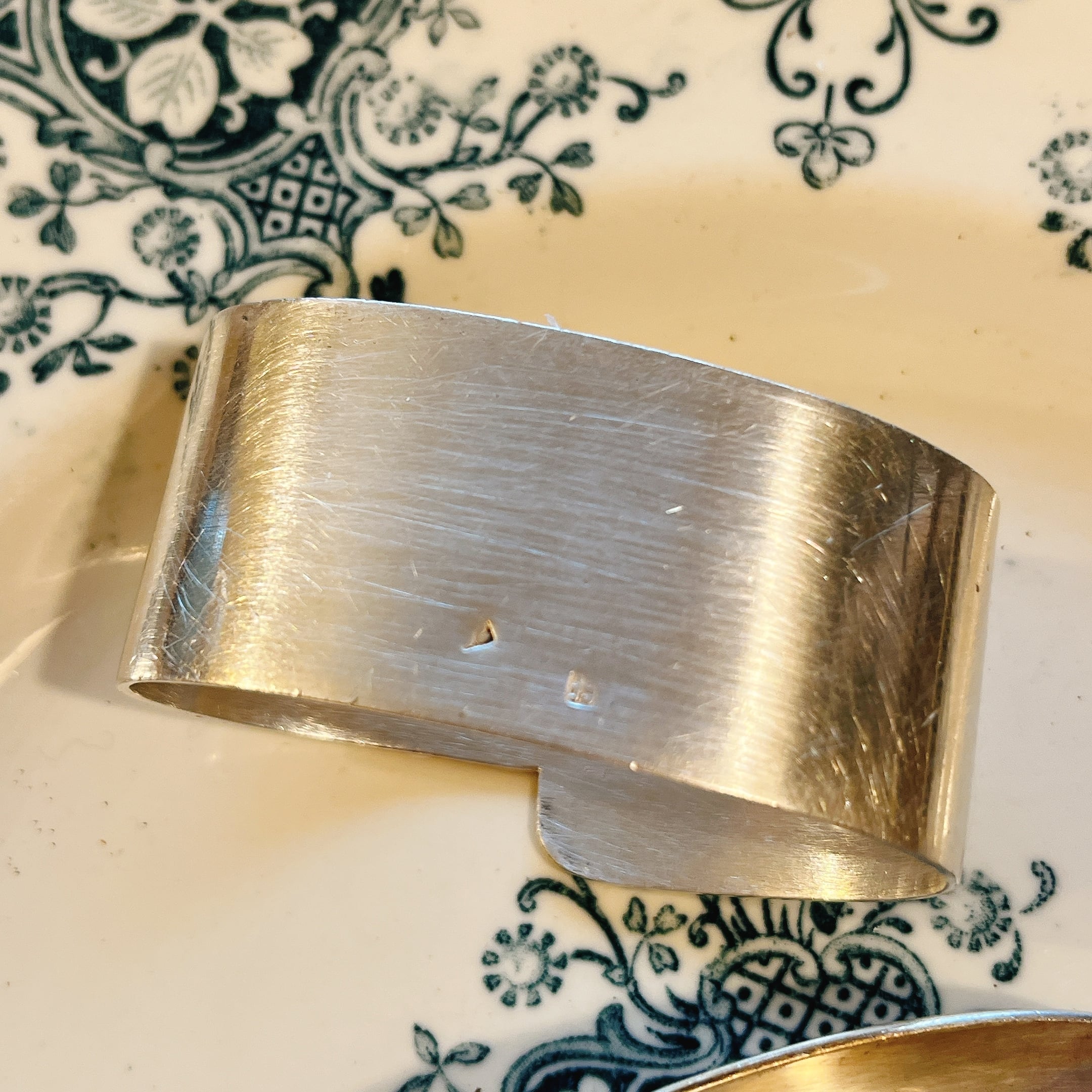 シルバープレートのムシューの文字が刻まれたナプキンホルダー。