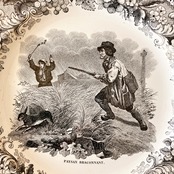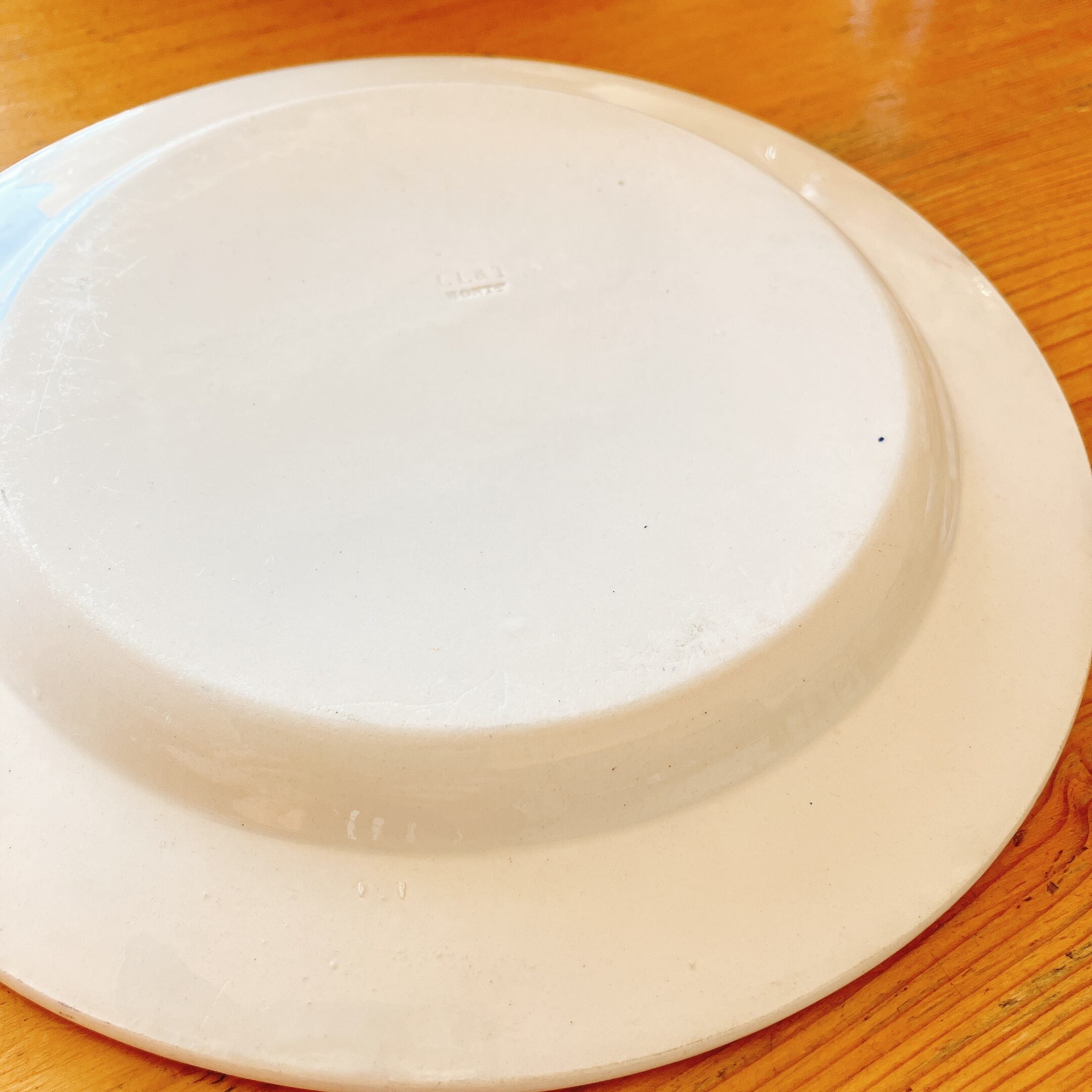 フランスには多い、狩猟の柄のグリザイユプレート。モントローらしい裏側のシルエットが美しく、オクトゴナルプレートの裏側を連想させます。