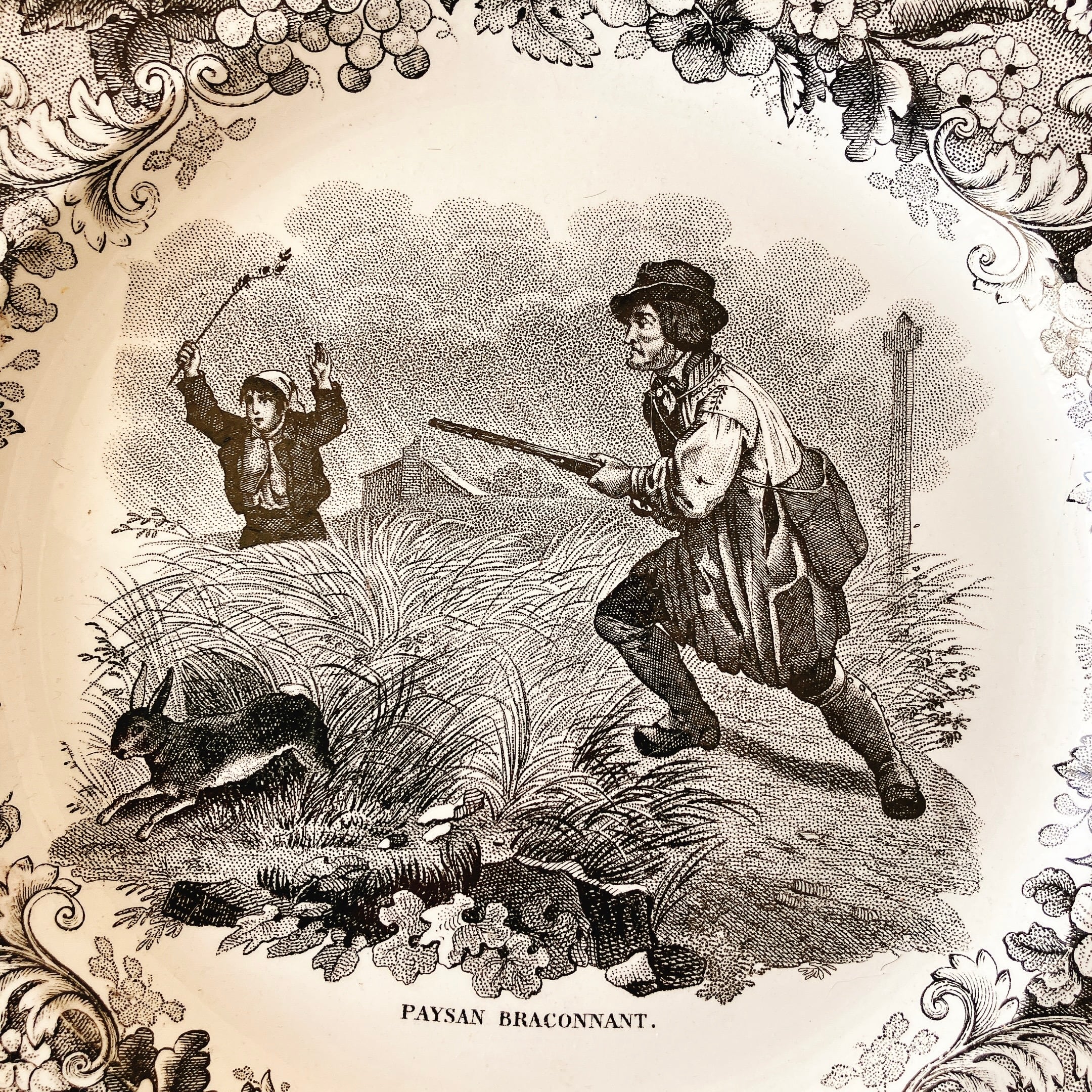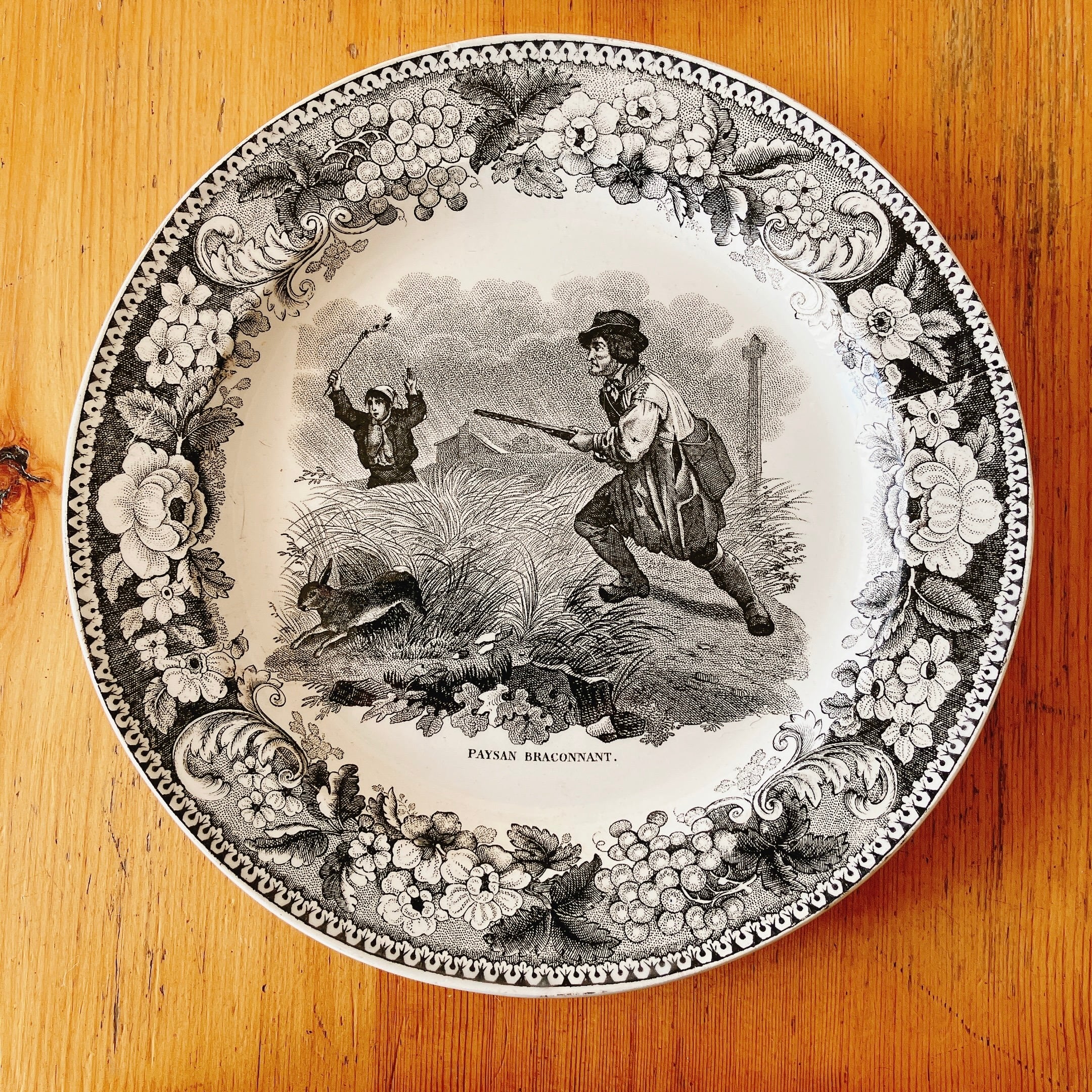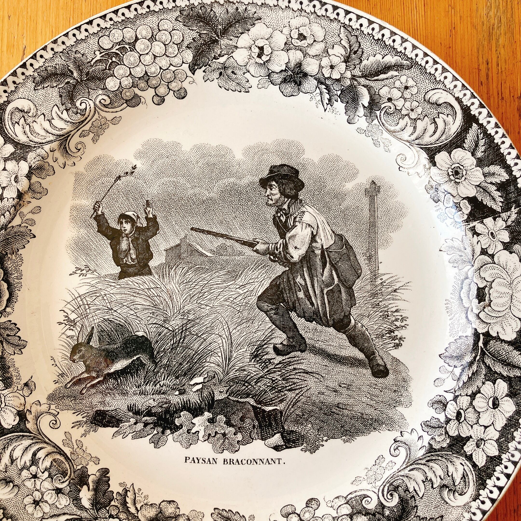 フランスアンティーク モントロー グリザイユプレート 1830年頃