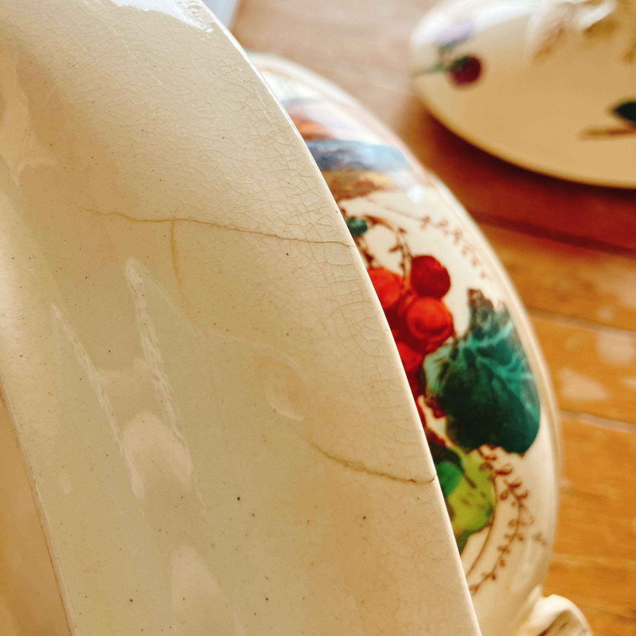 全体に細かい貫入があり、フタと下の皿ヒビがありますので、画像でご確認ください。