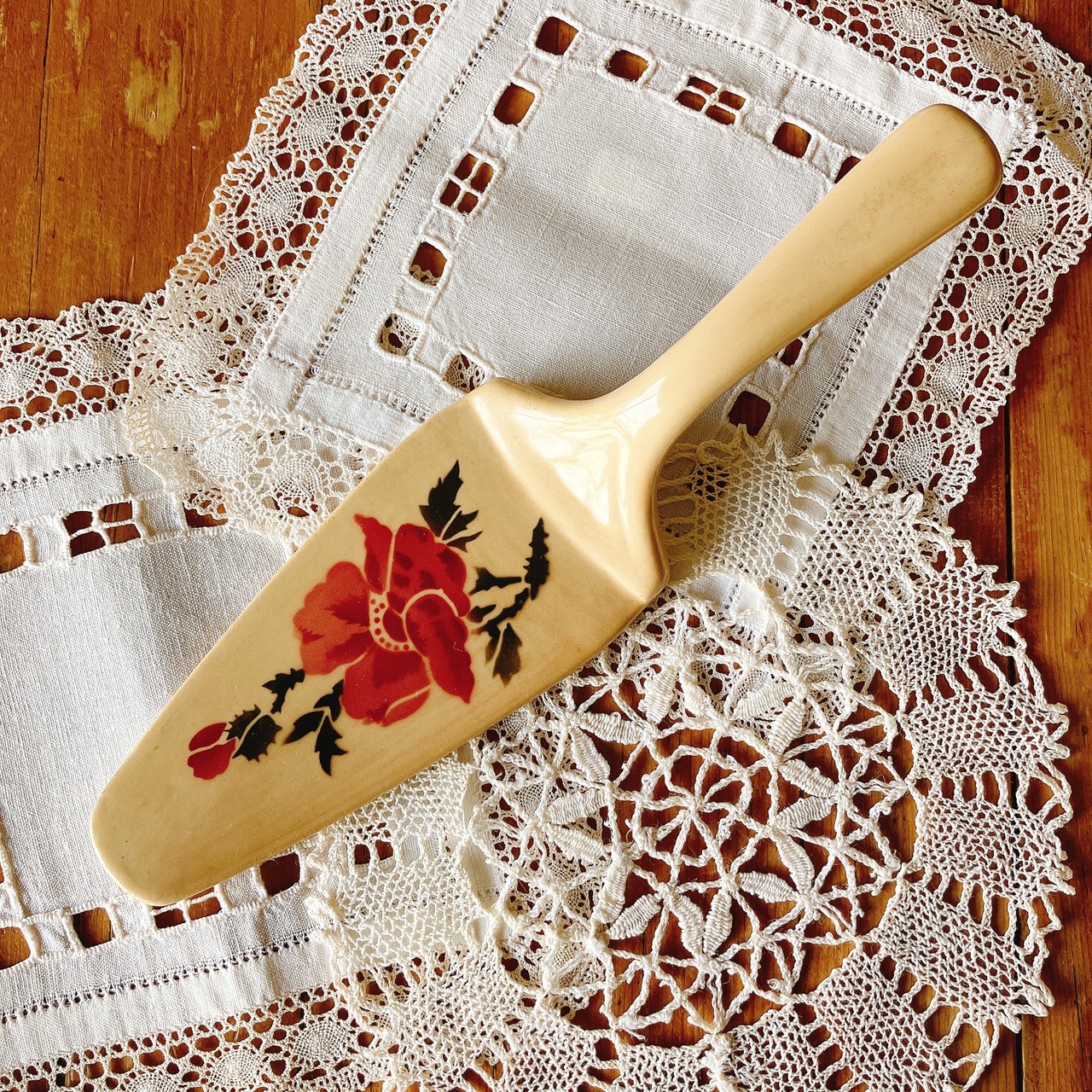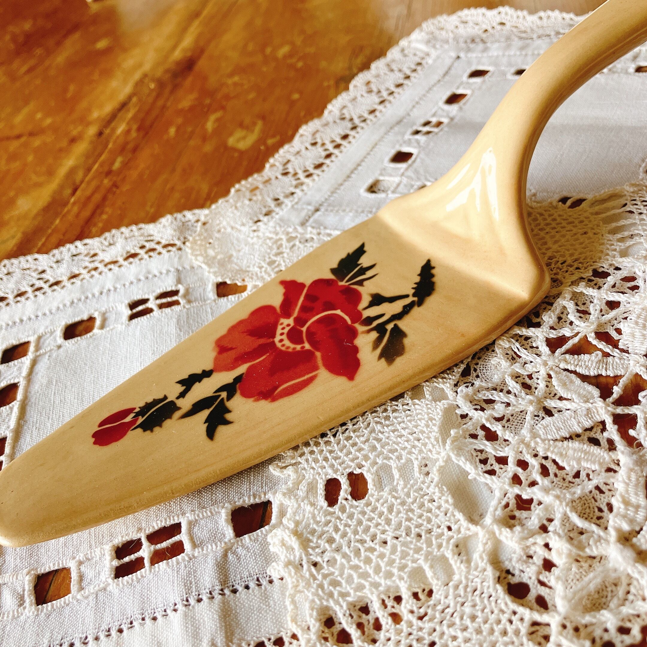 可愛い陶器製のローズ柄 ケーキサーバー。