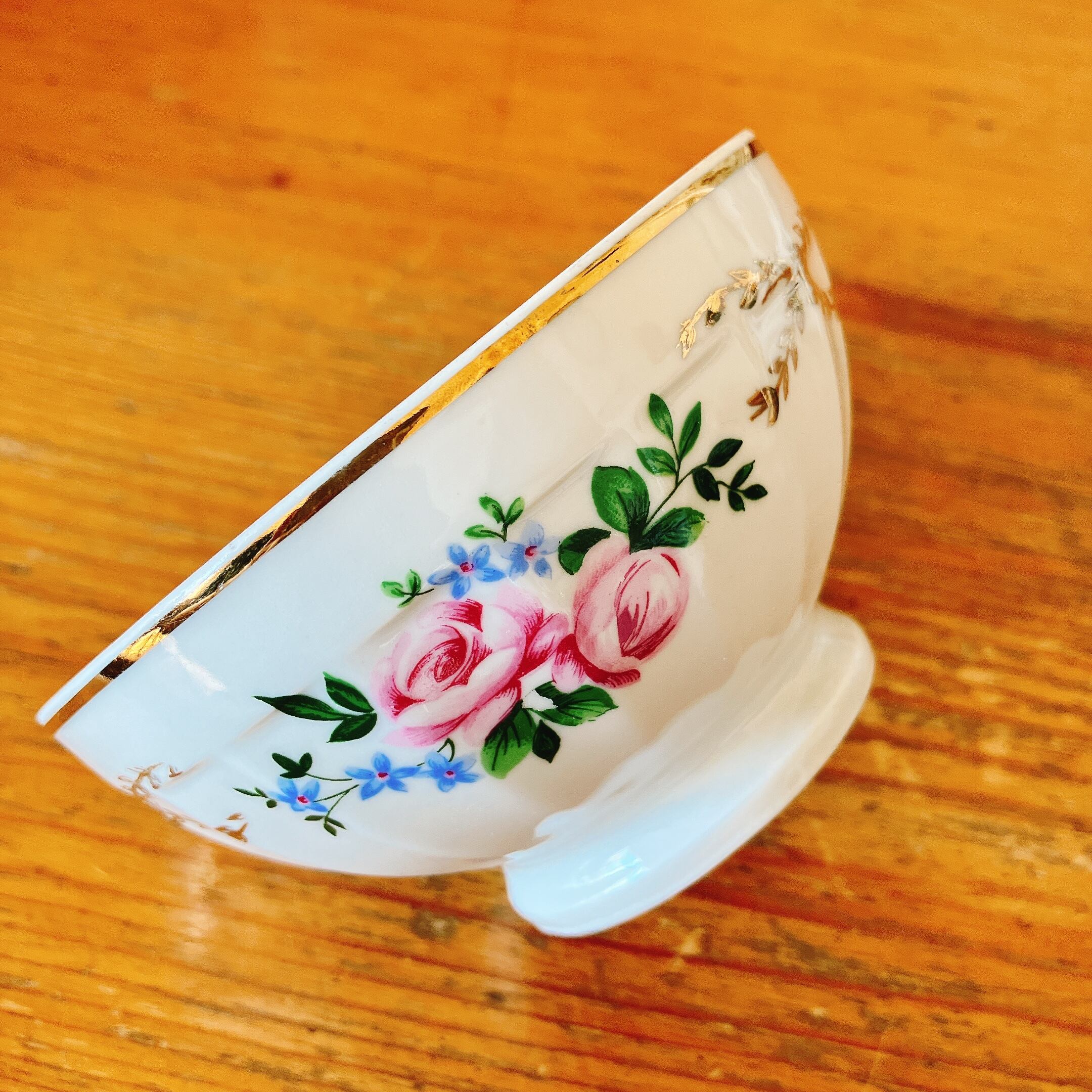 可愛いバラ柄の小さめカフェオレボウル。