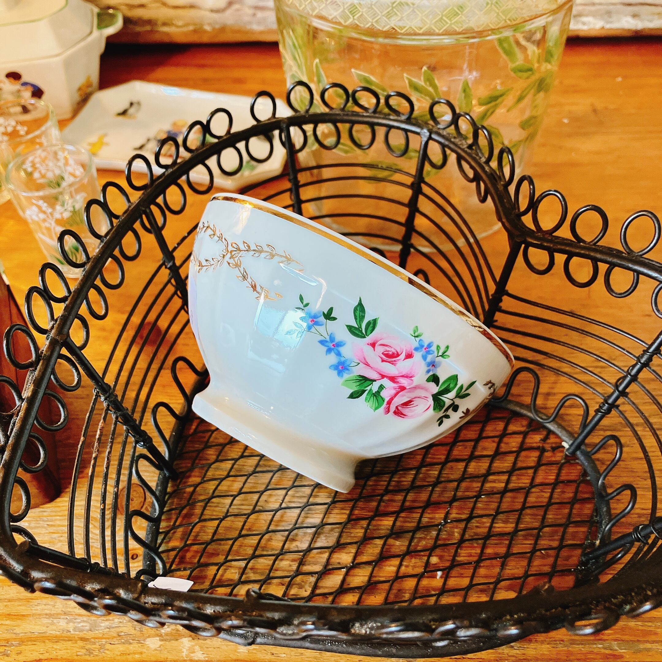 可愛いバラ柄カフェオレボウル フランスブロカント