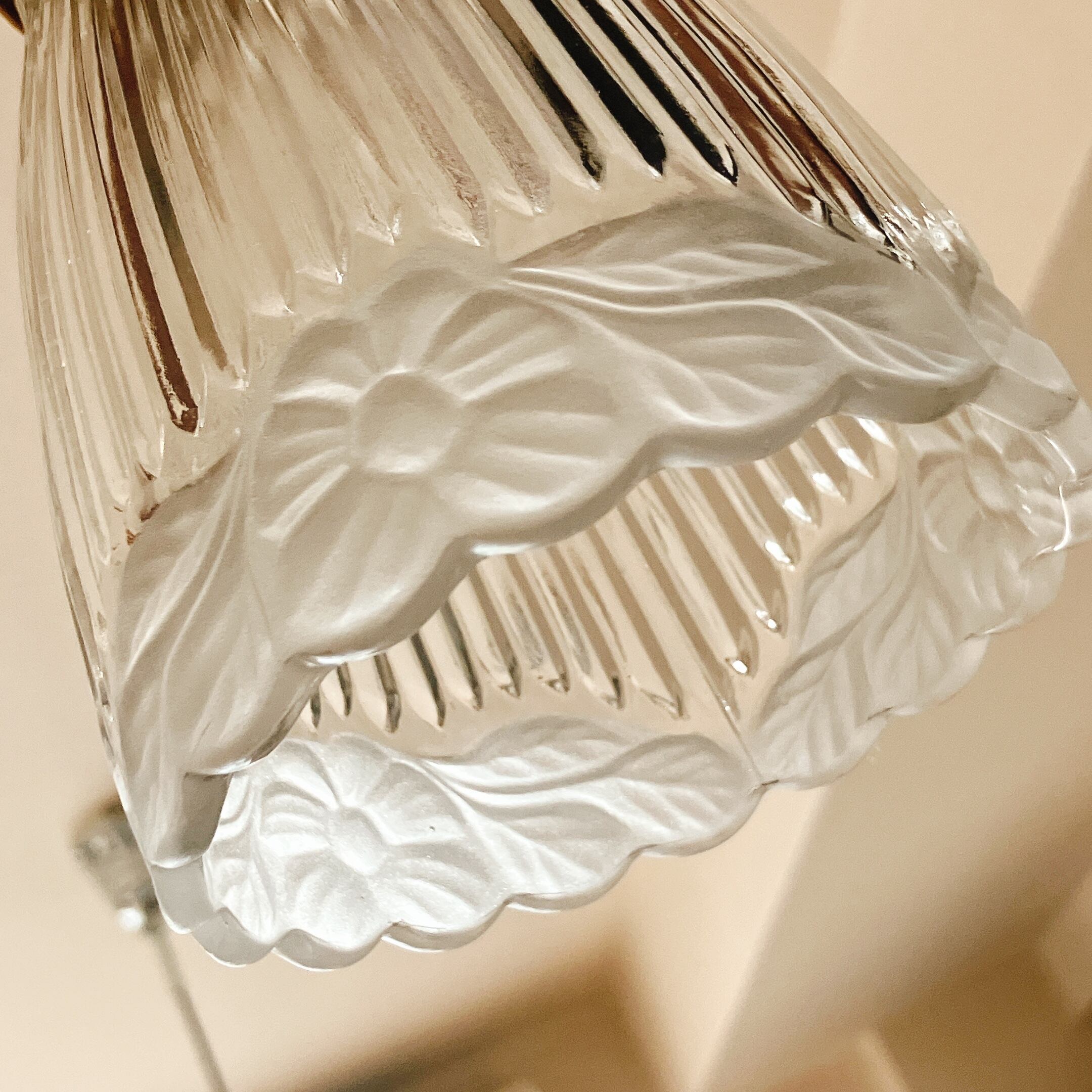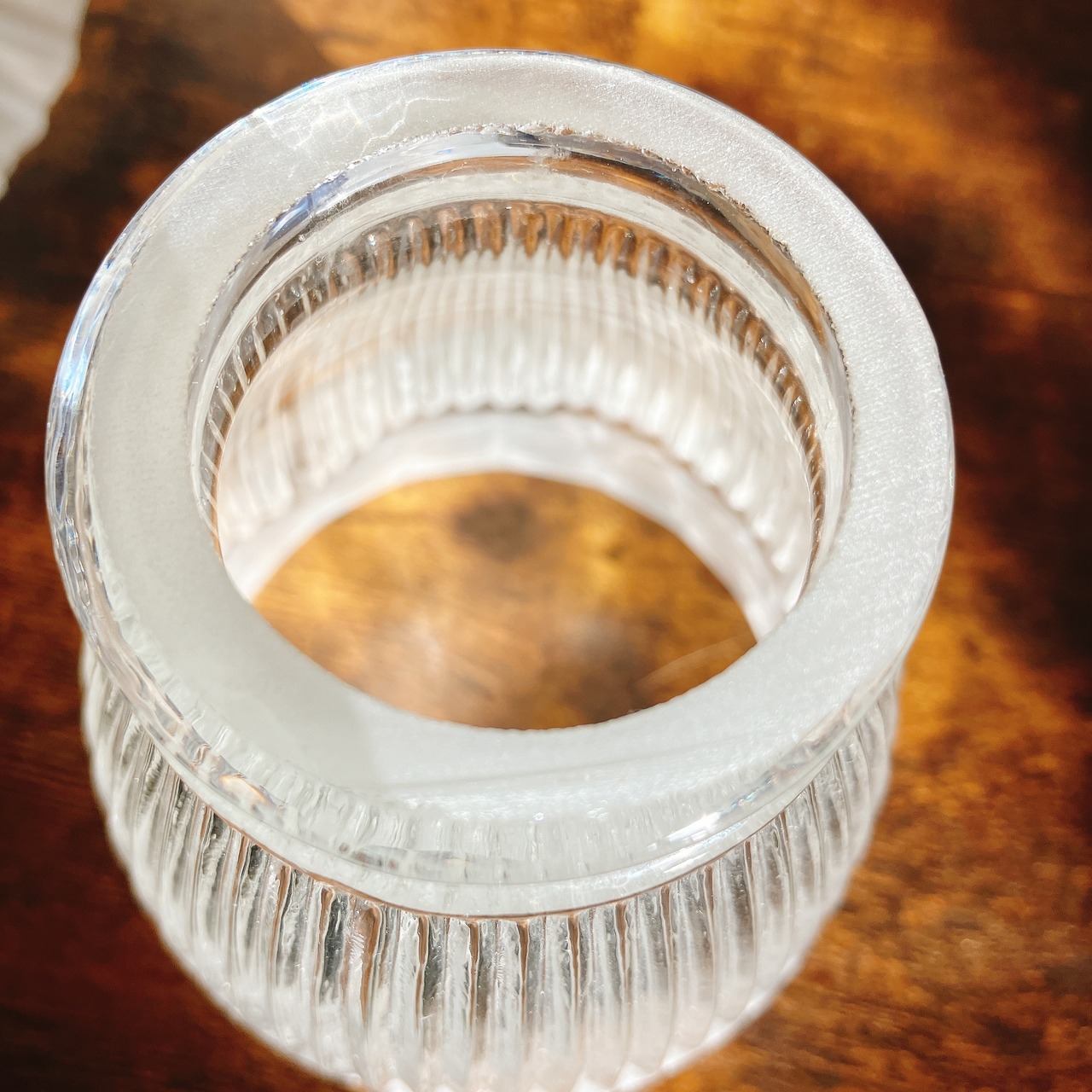 しっかりした厚みがあり、クリアな部分にはストライプの彫り、フチにはエッチング加工で入った花の模様がアクセントになっています。