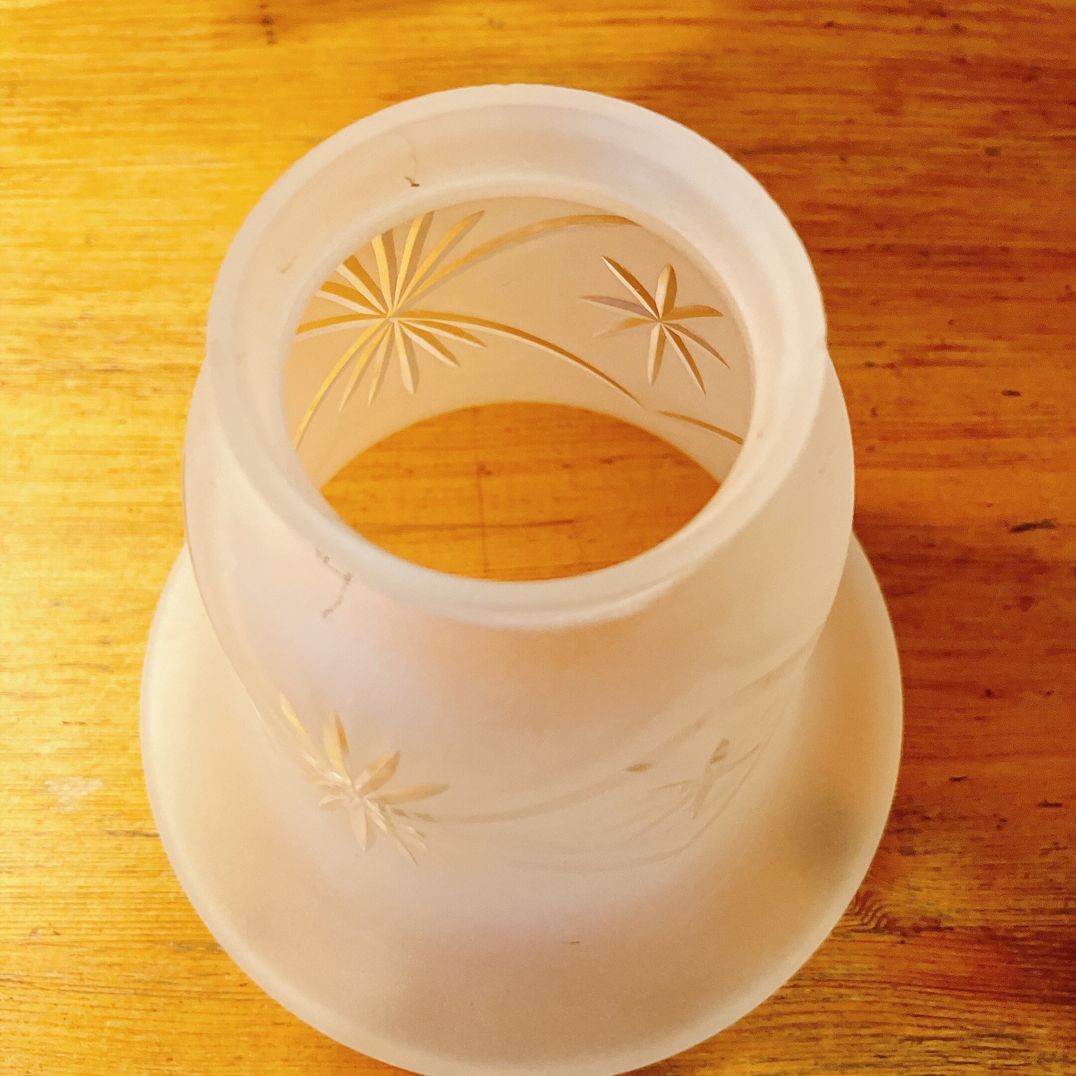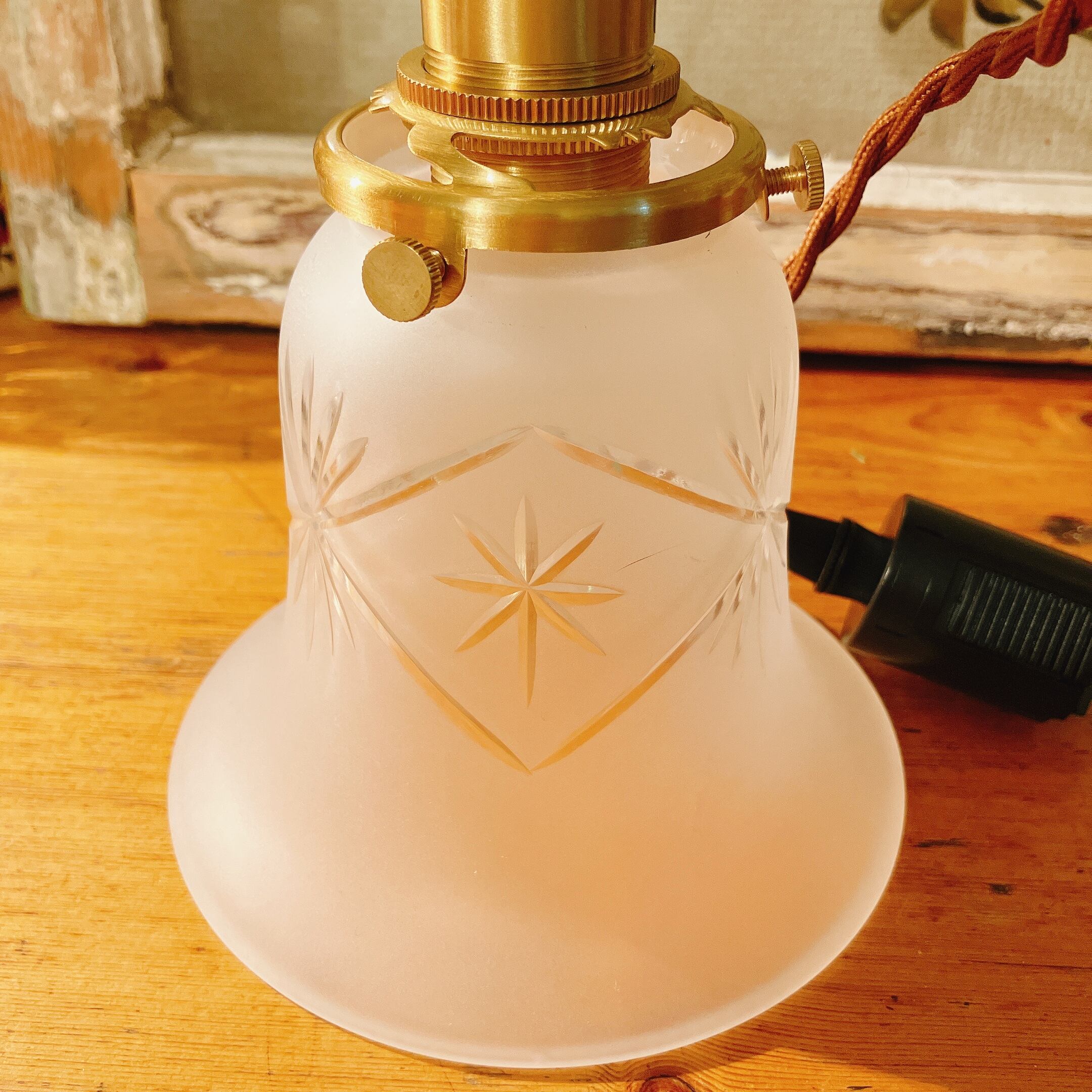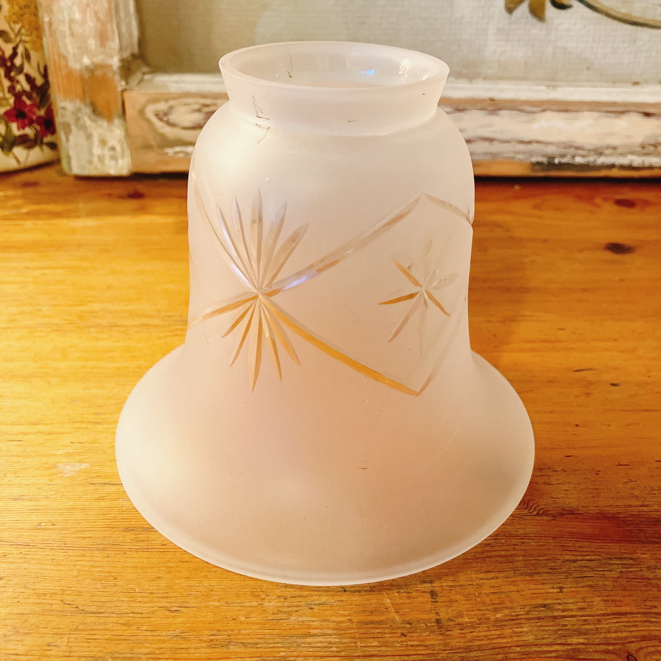 擦りガラスに美しいカットのランプシェード イギリスヴィンテージ